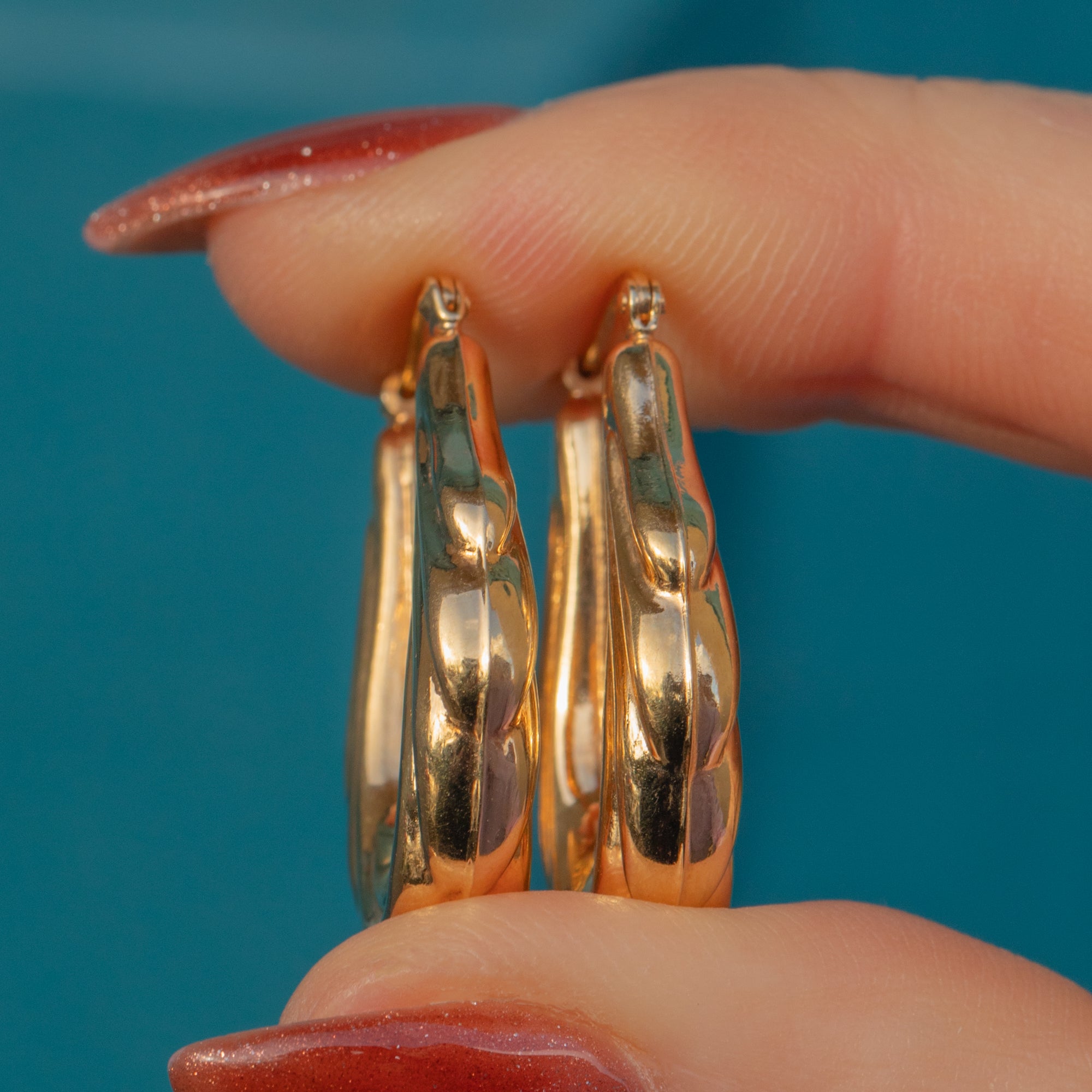 The oval shape of these vintage earrings gives a unique spin on a classic Gold hoop, giving this pair ample texture and character. Easily styled amongst your other Gold earrings, or as a solo set, you are bound to be reaching for these lovely ladies time and time again!