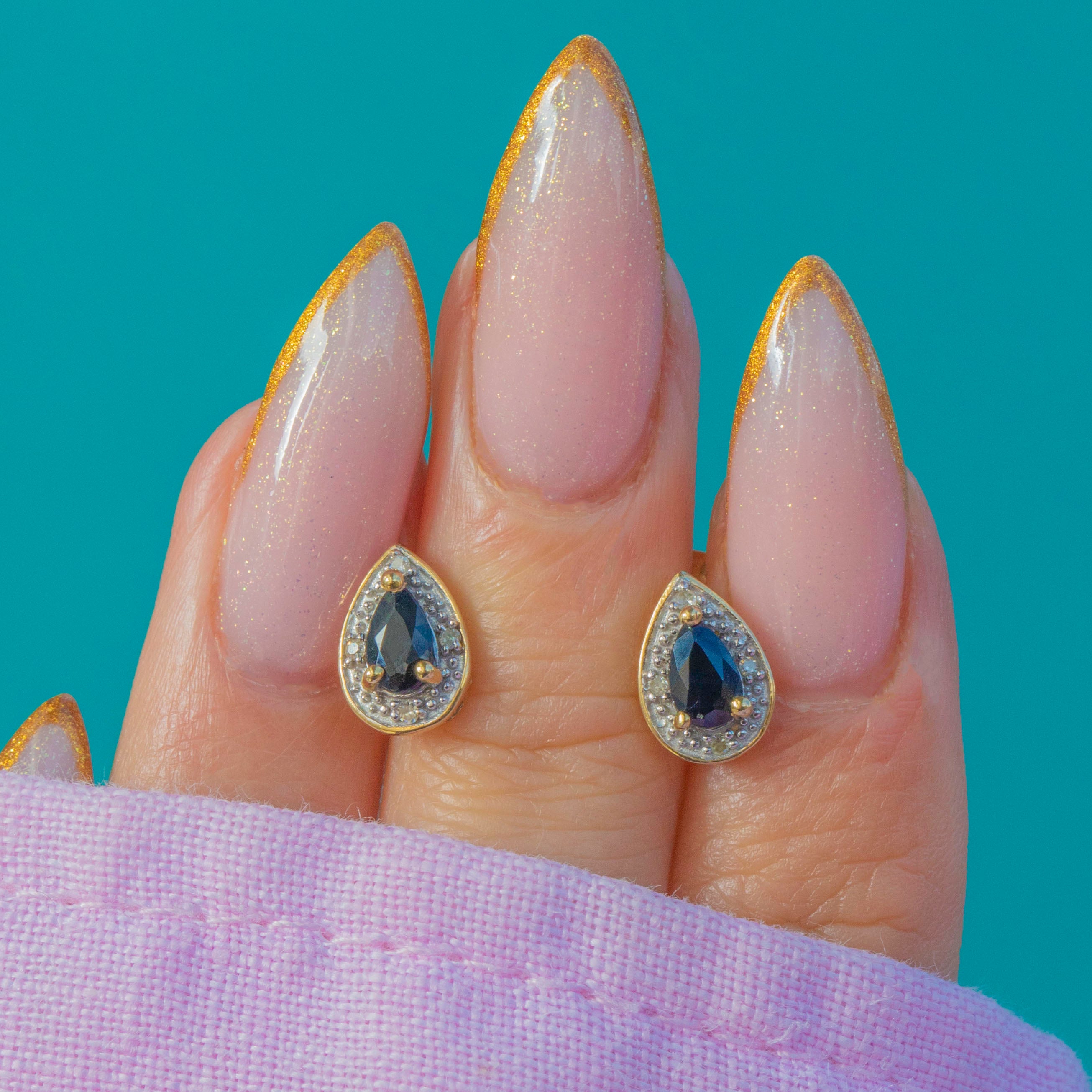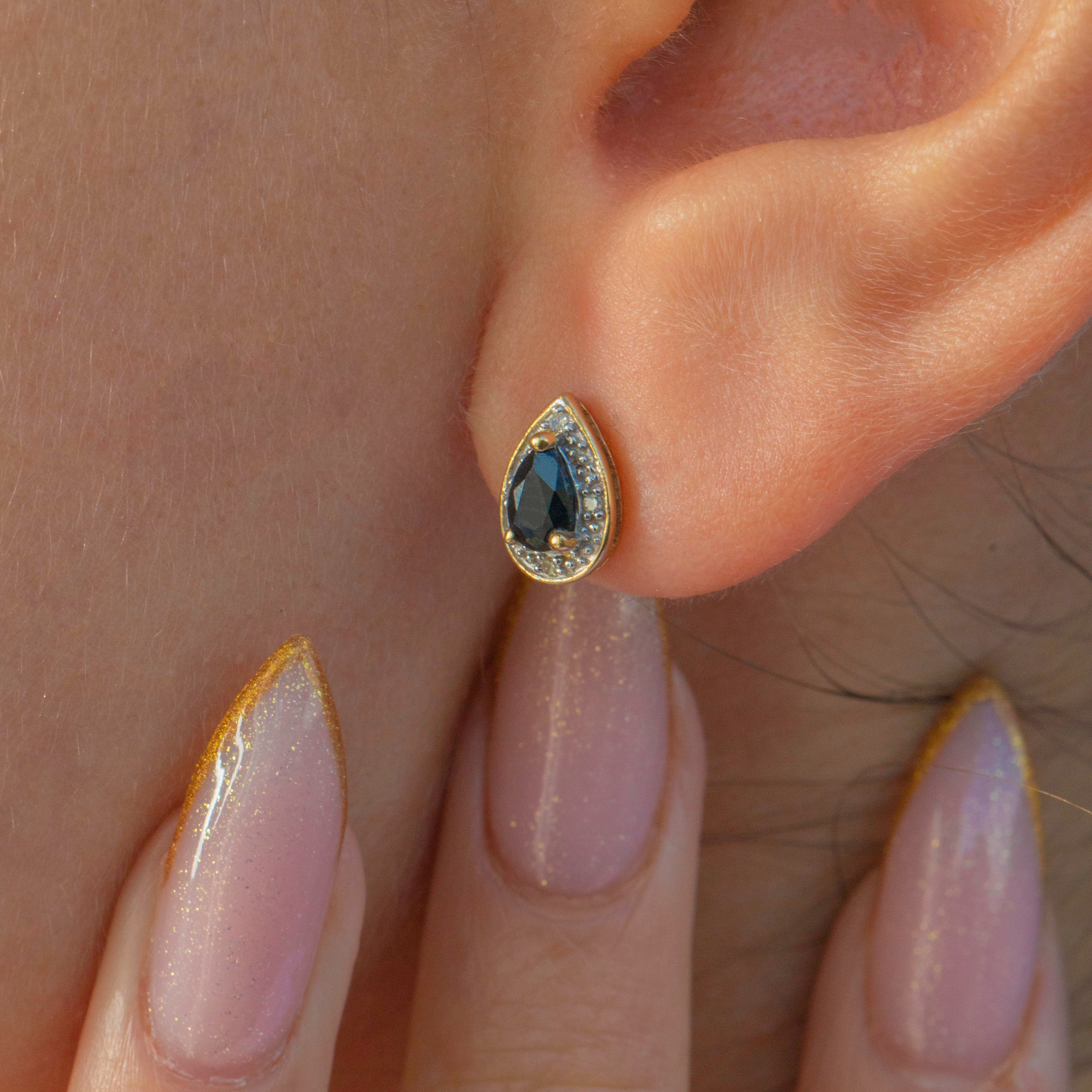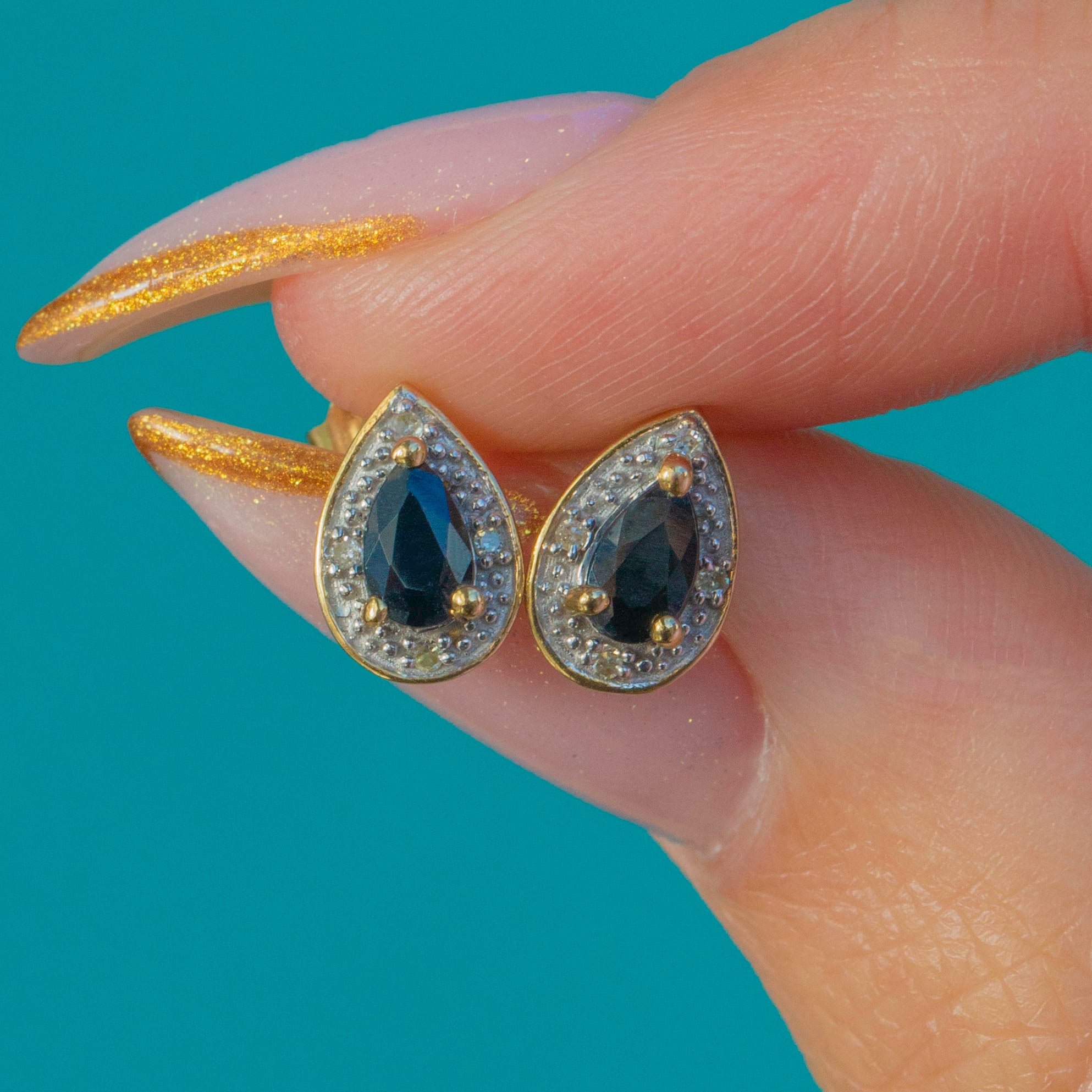 9ct Gold Pear-Shaped Sapphire Diamond Studs