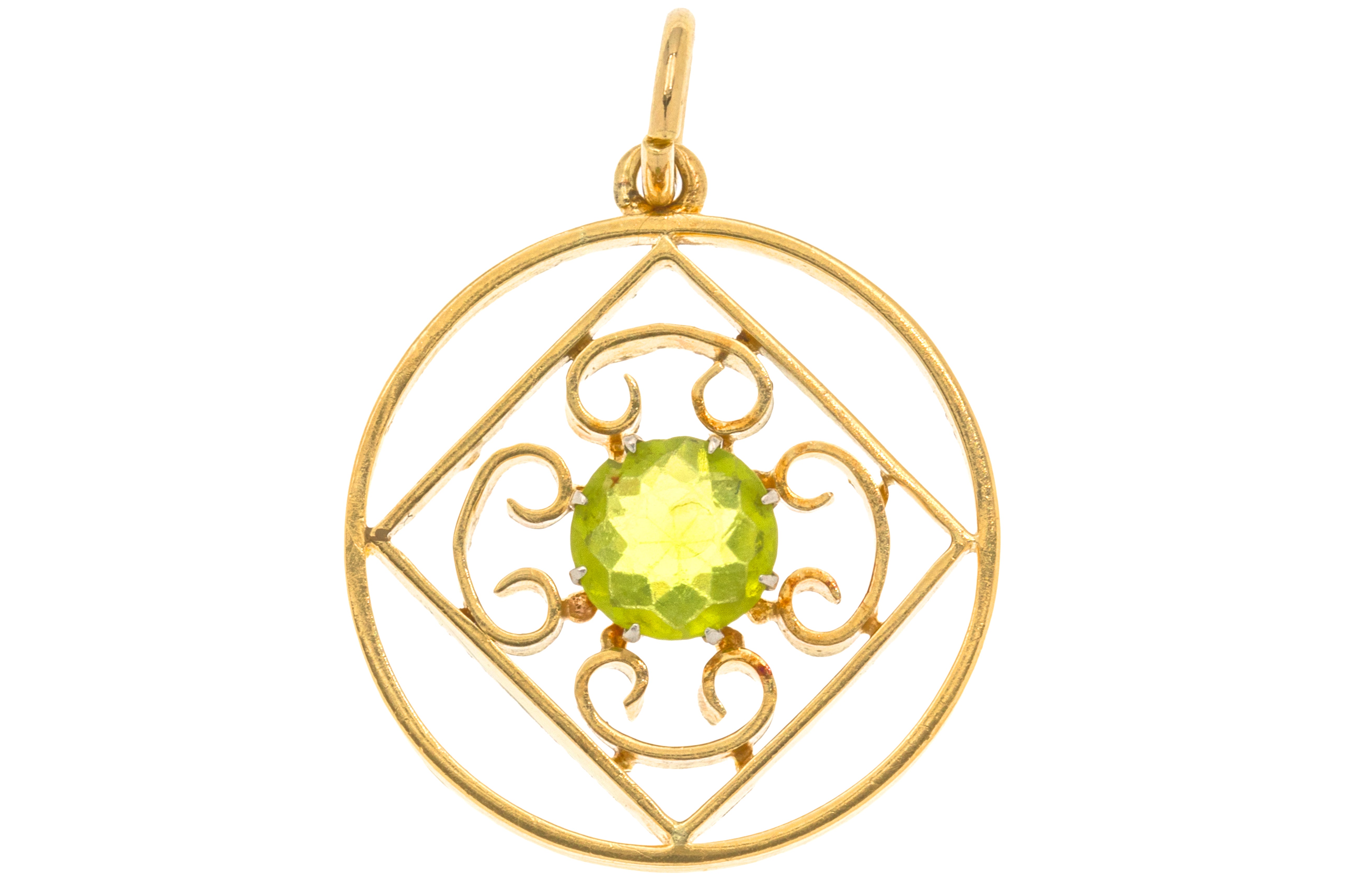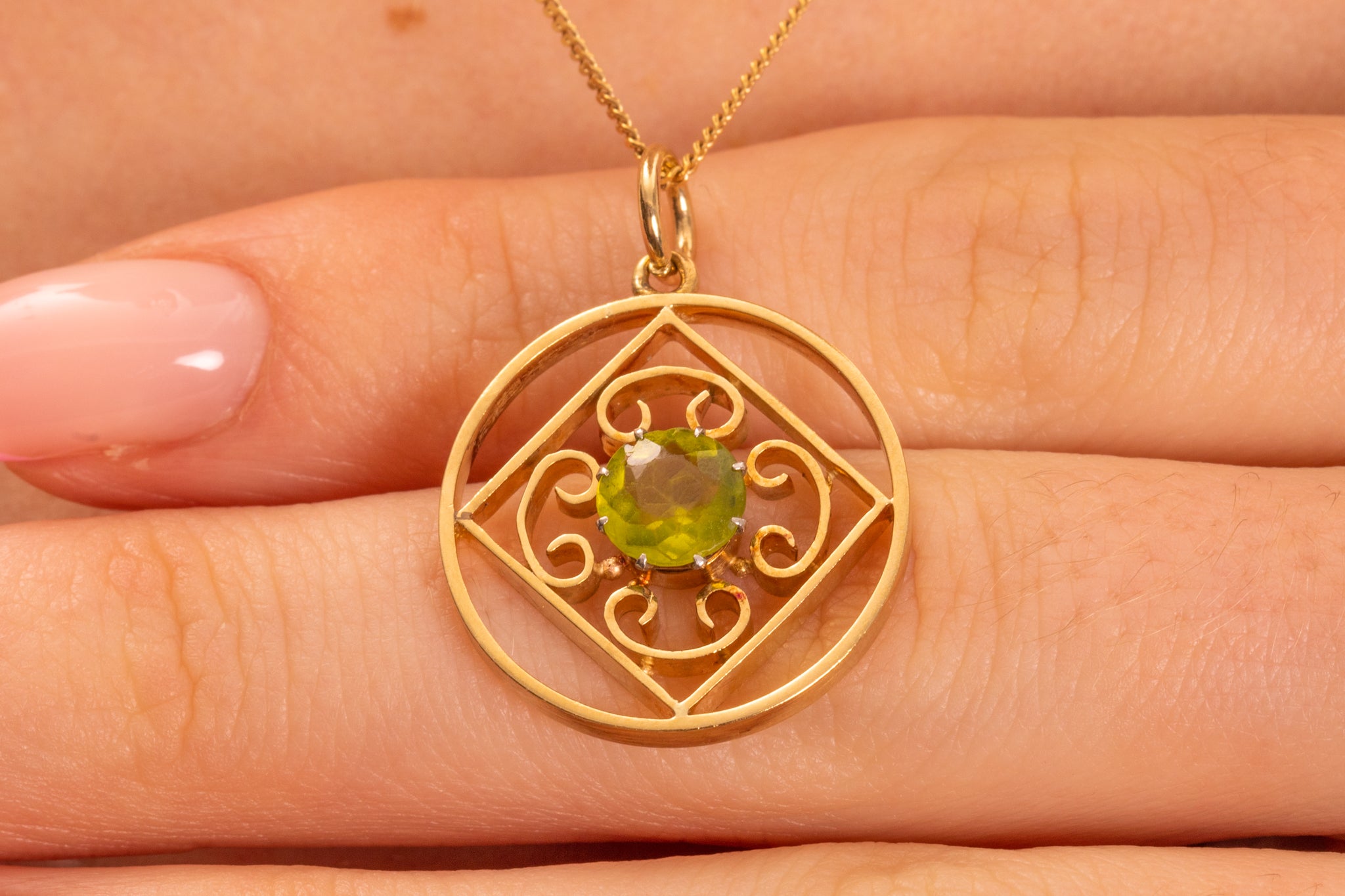 We adore this 9ct Gold Peridot pendant! This sweet piece is crafted from solid Gold and is inlaid with a zesty  Peridot that twinkles beautifully as this vintage pendant catches the light.