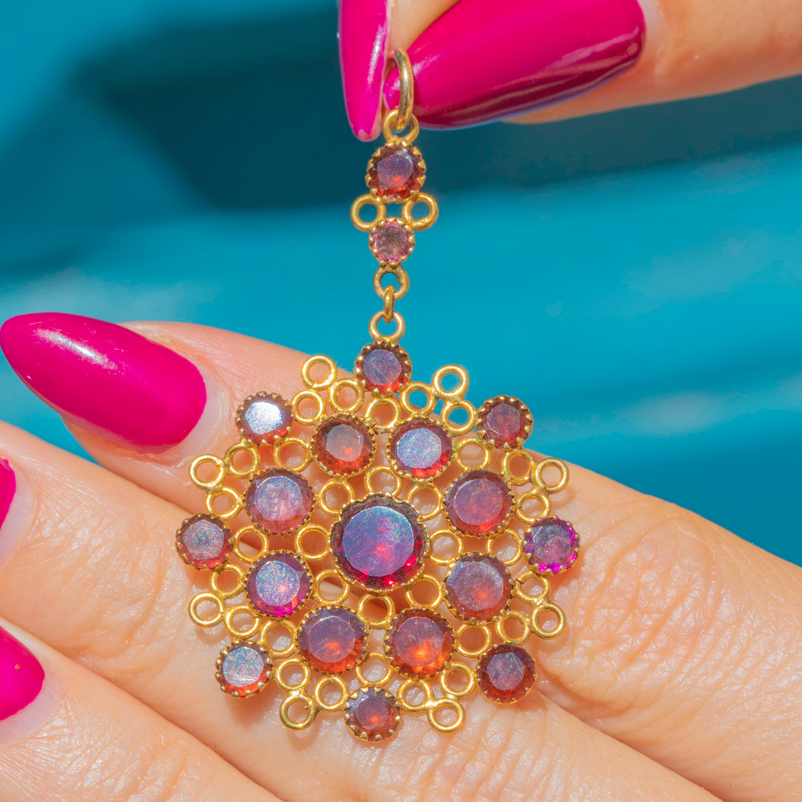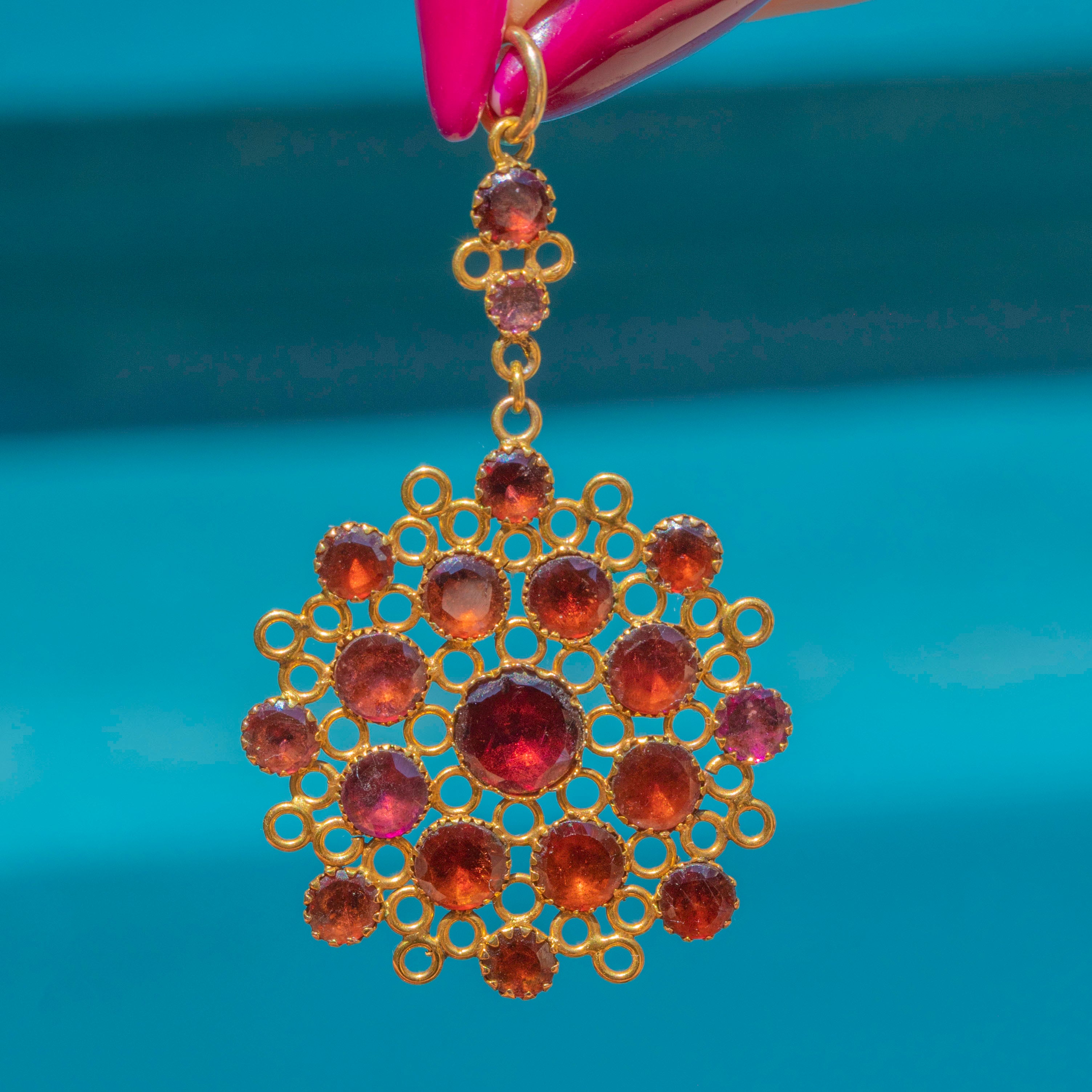 EXCELLENT: The Gold has a gorgeous saturation and each component is securely affixed. The Garnets are secure in their settings and free from any notable signs of wear. A beautiful antique piece, this Georgian Garnet pendant is a must-have!