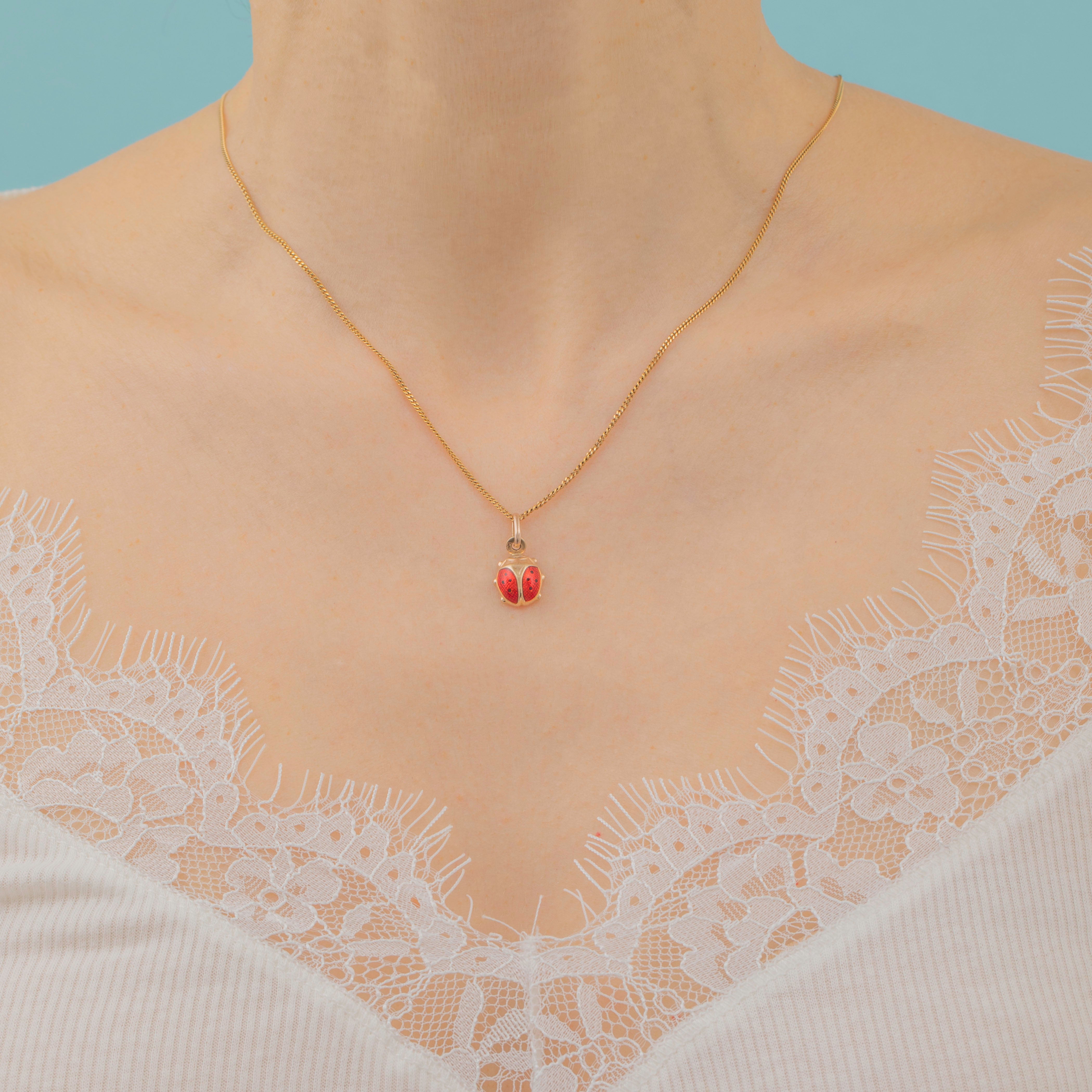 Crafted from buttery 9ct Gold, this little lady bird is saturated with vibrant red Enamel and complete with classic black spot detailing. Her Enamel is glossy and detailed, with a wonderful texture and shine which catches the light beautifully and is complimented effortlessly by the warmth of her Gold.