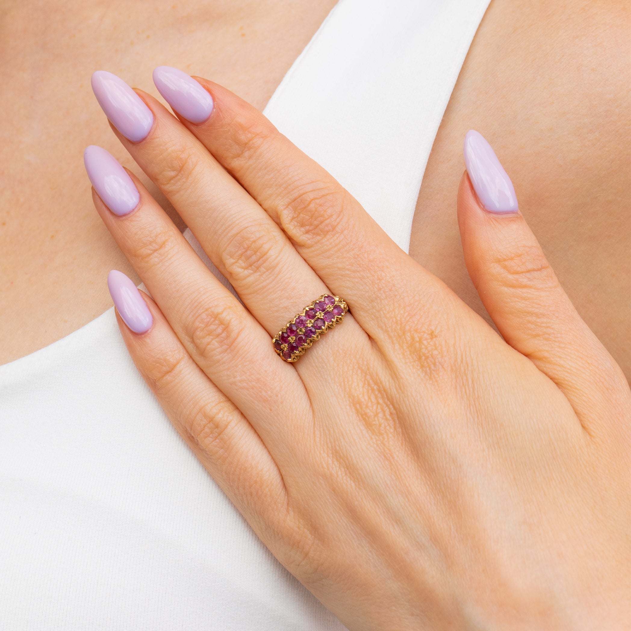 9ct Gold Ruby Double Row Ring, 0.84ct