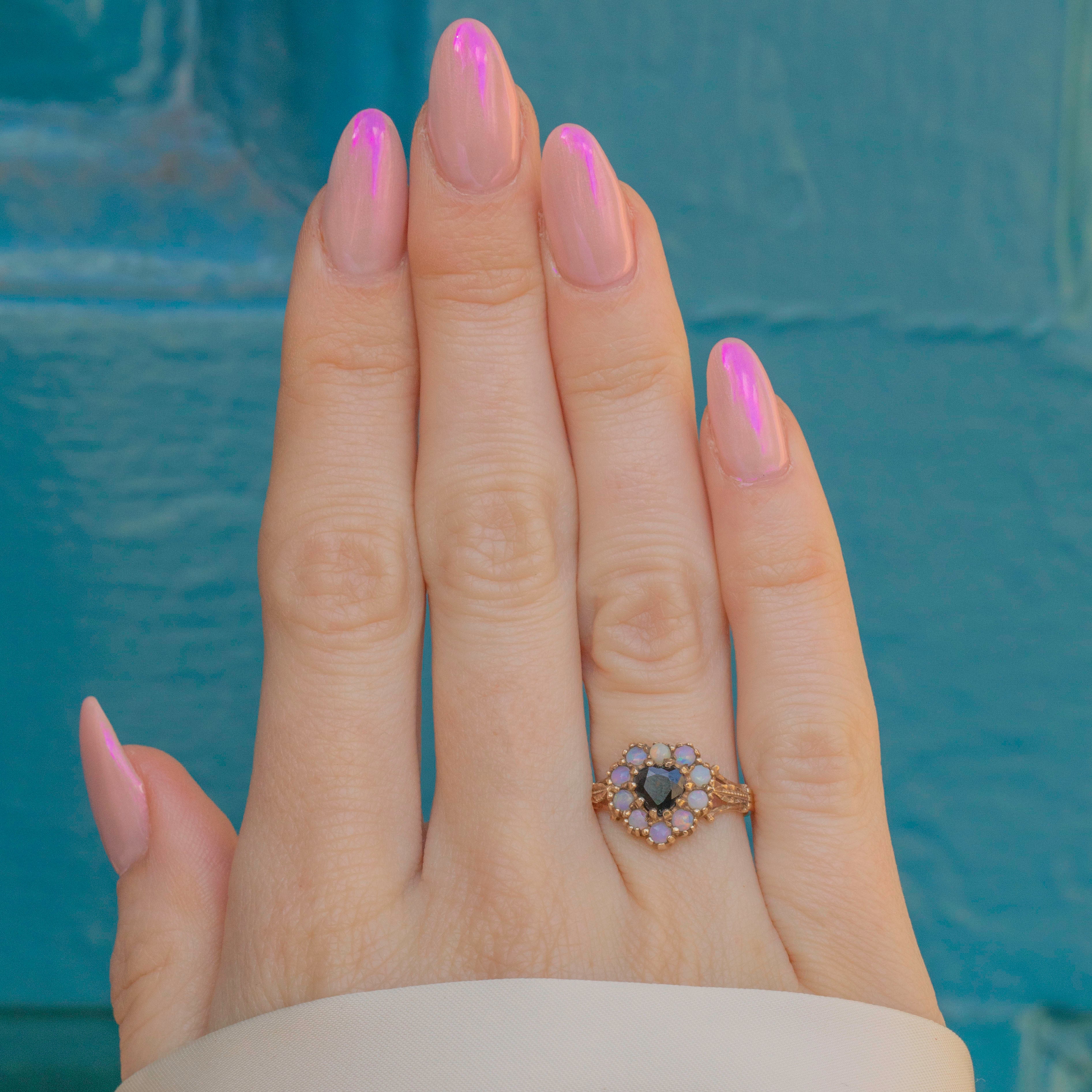We just adore this 9ct Gold Sapphire Opal heart cluster ring!