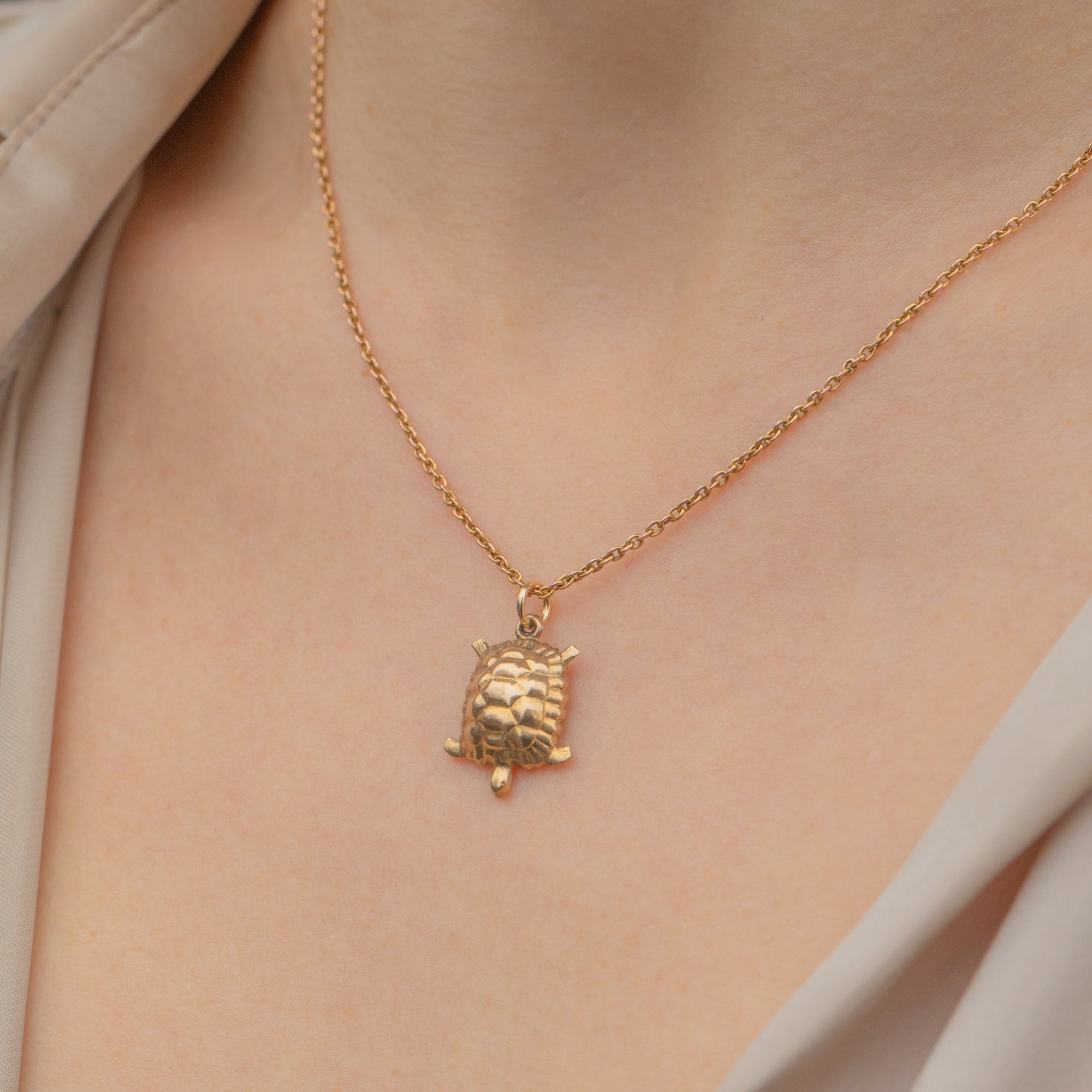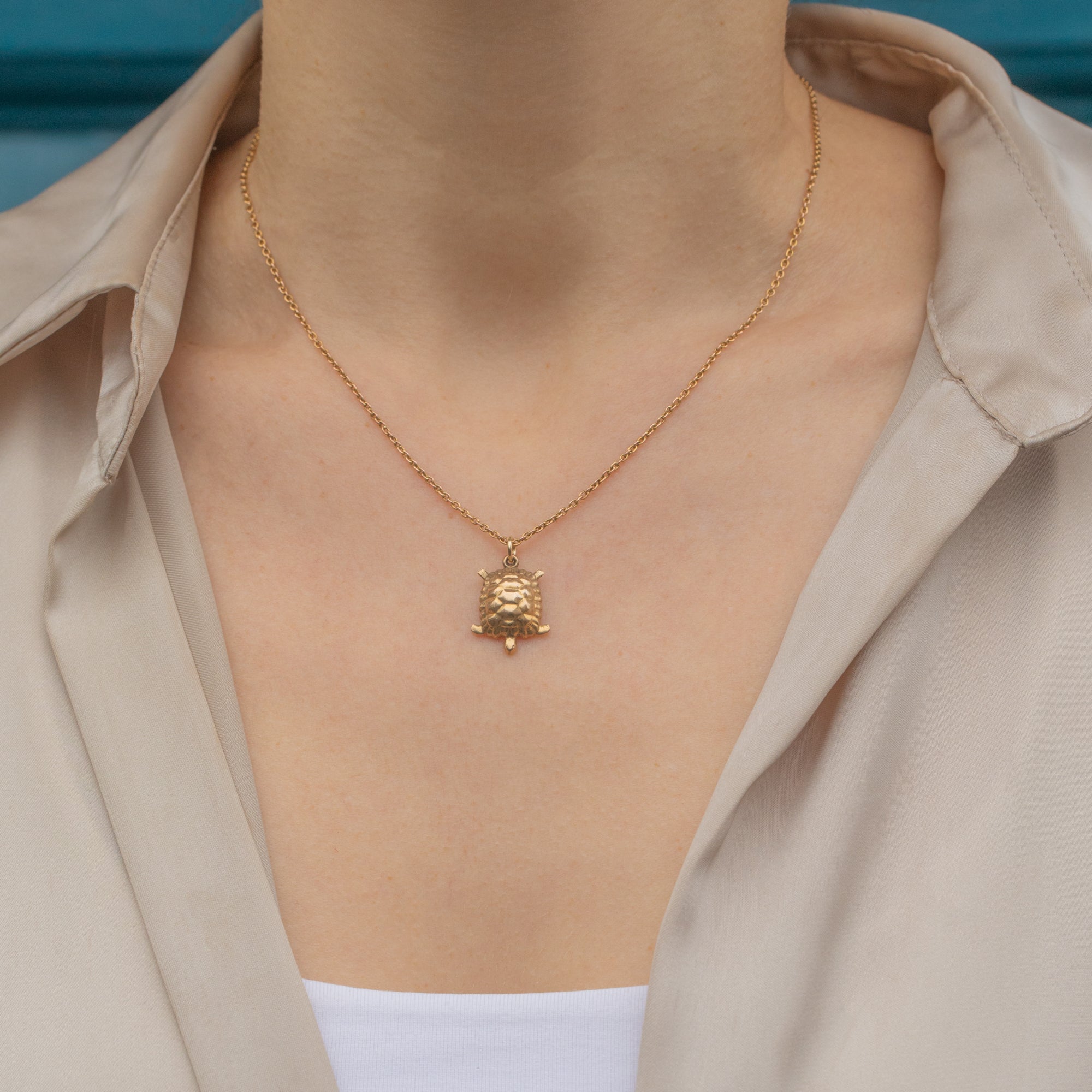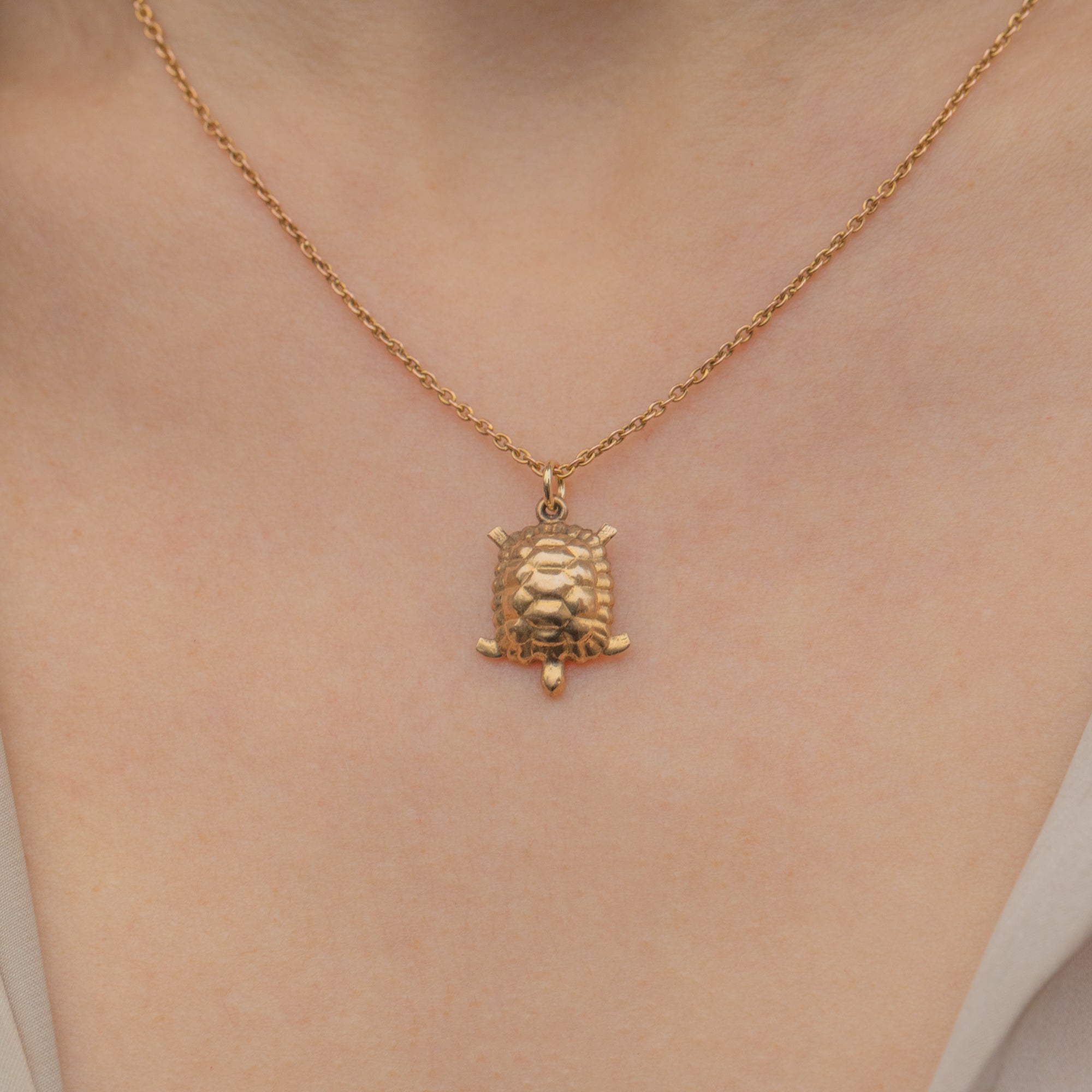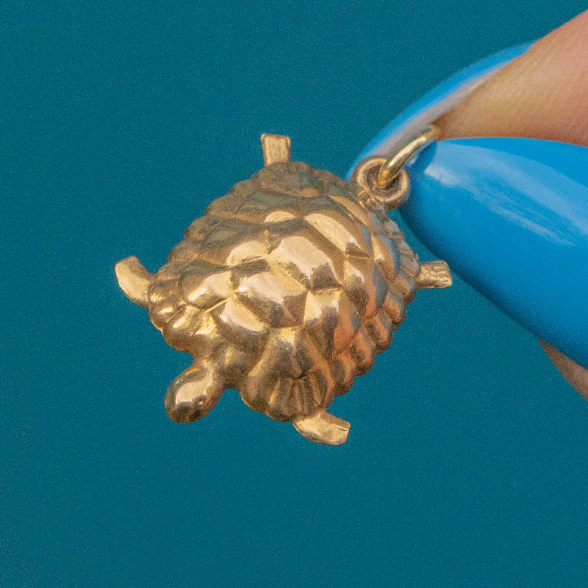 Crafted from saturated, buttery 9ct Gold, this vintage turtle charm features an intricately detailed shell and is the cutest little guy to add to your collection! Paired with other pendants on a bracelet, or suspended alone from a fine chain, he is the perfect versatile piece for everyday wear.