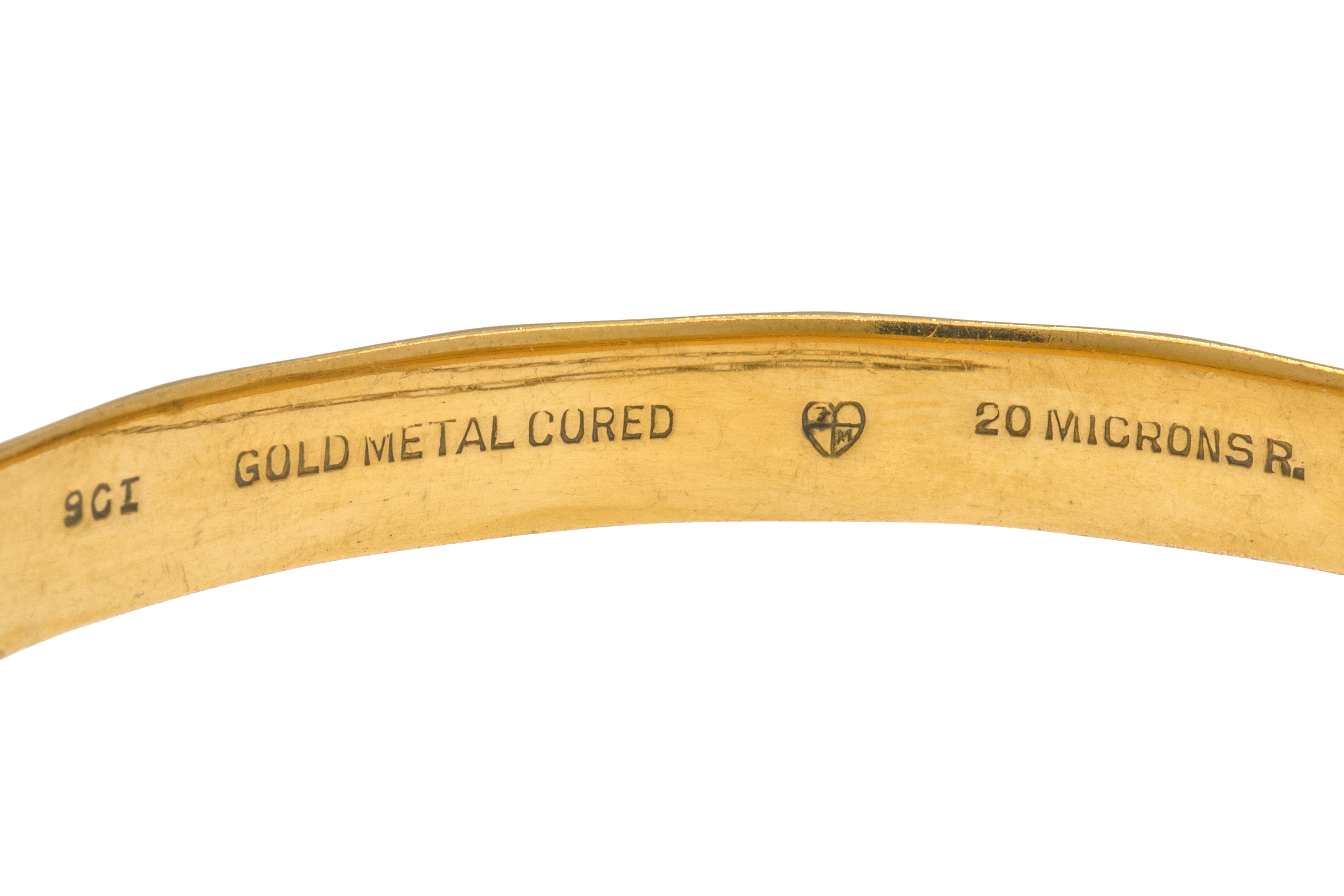 STAMPS: '9CT GOLD METAL CORED, 20 MICRONS R.' inside bangle.