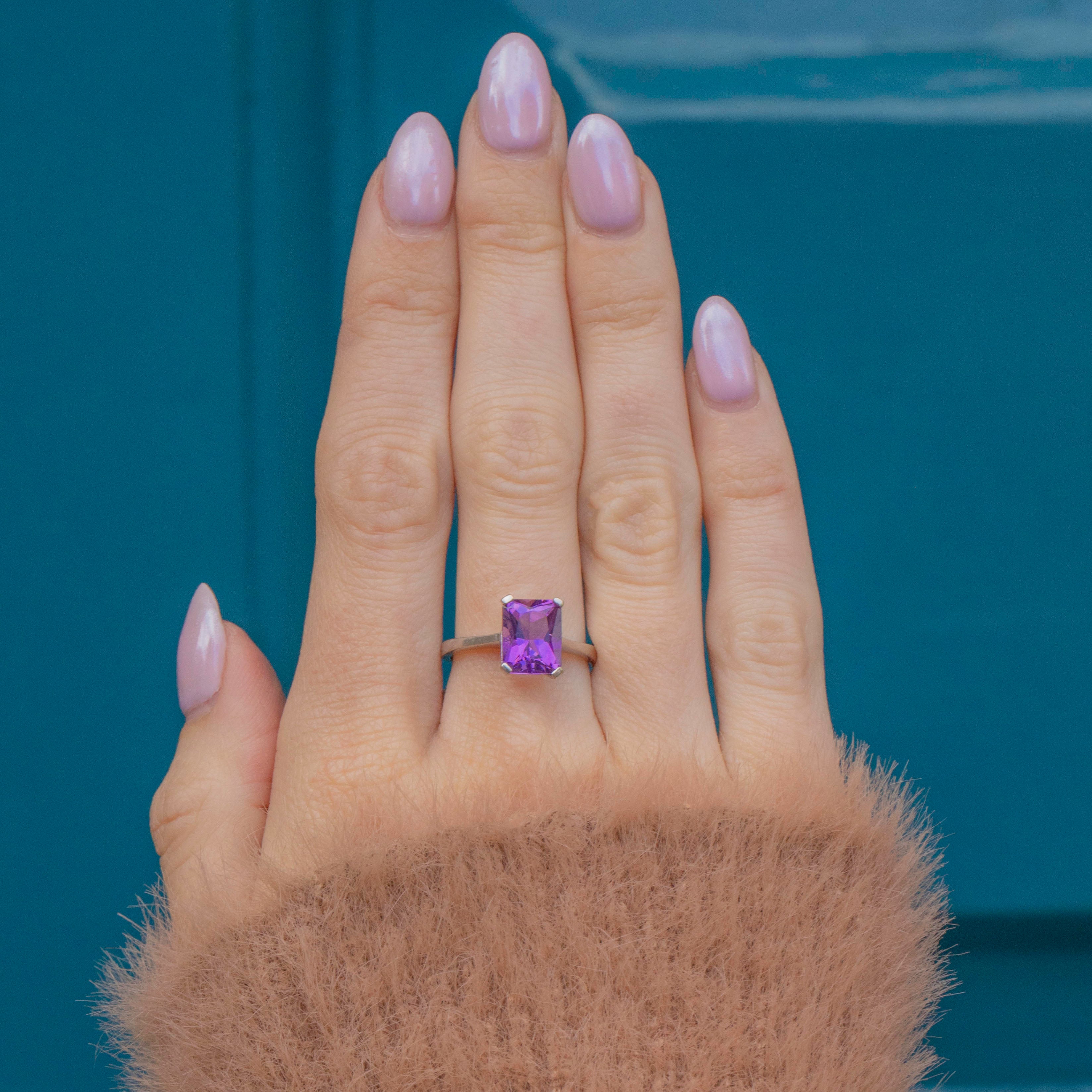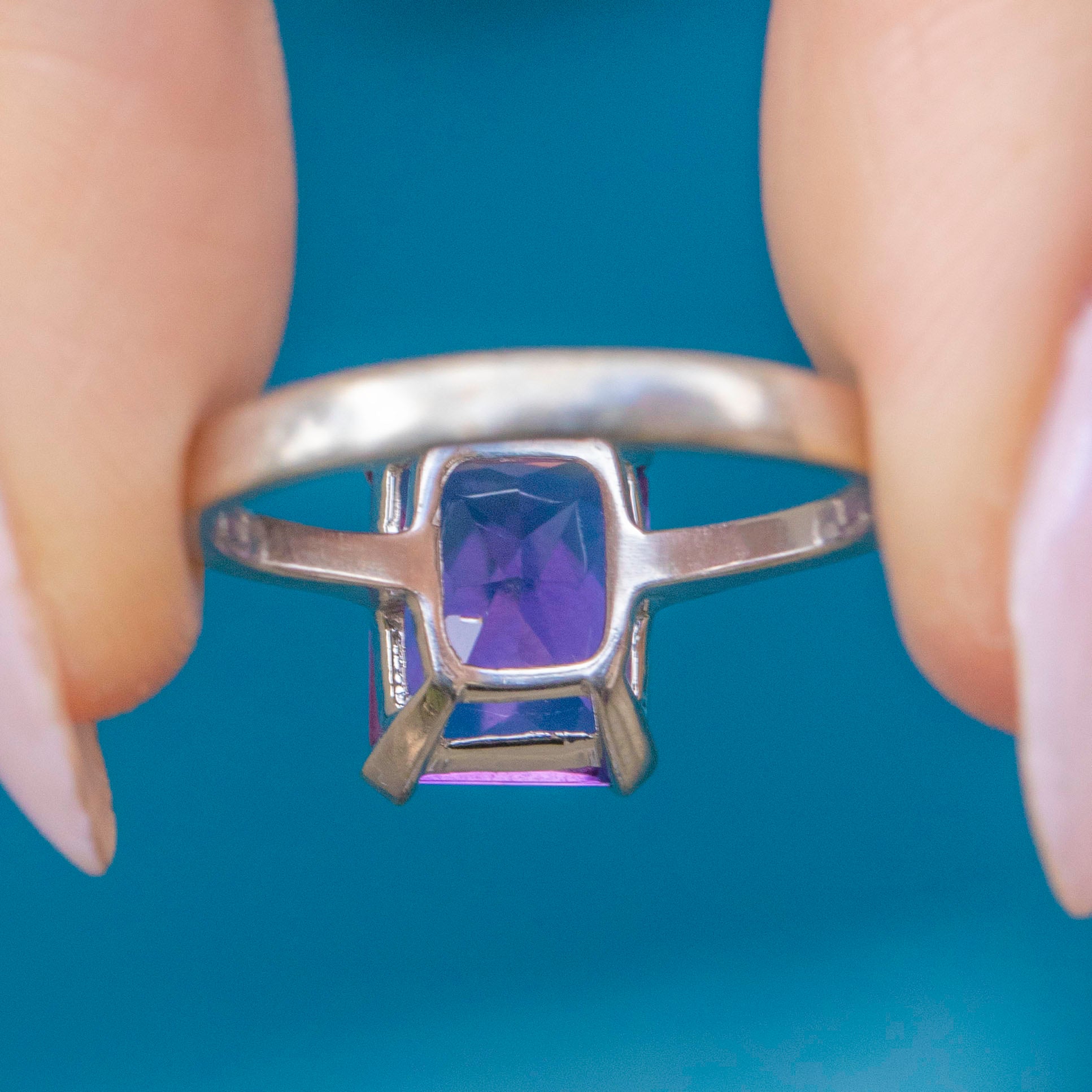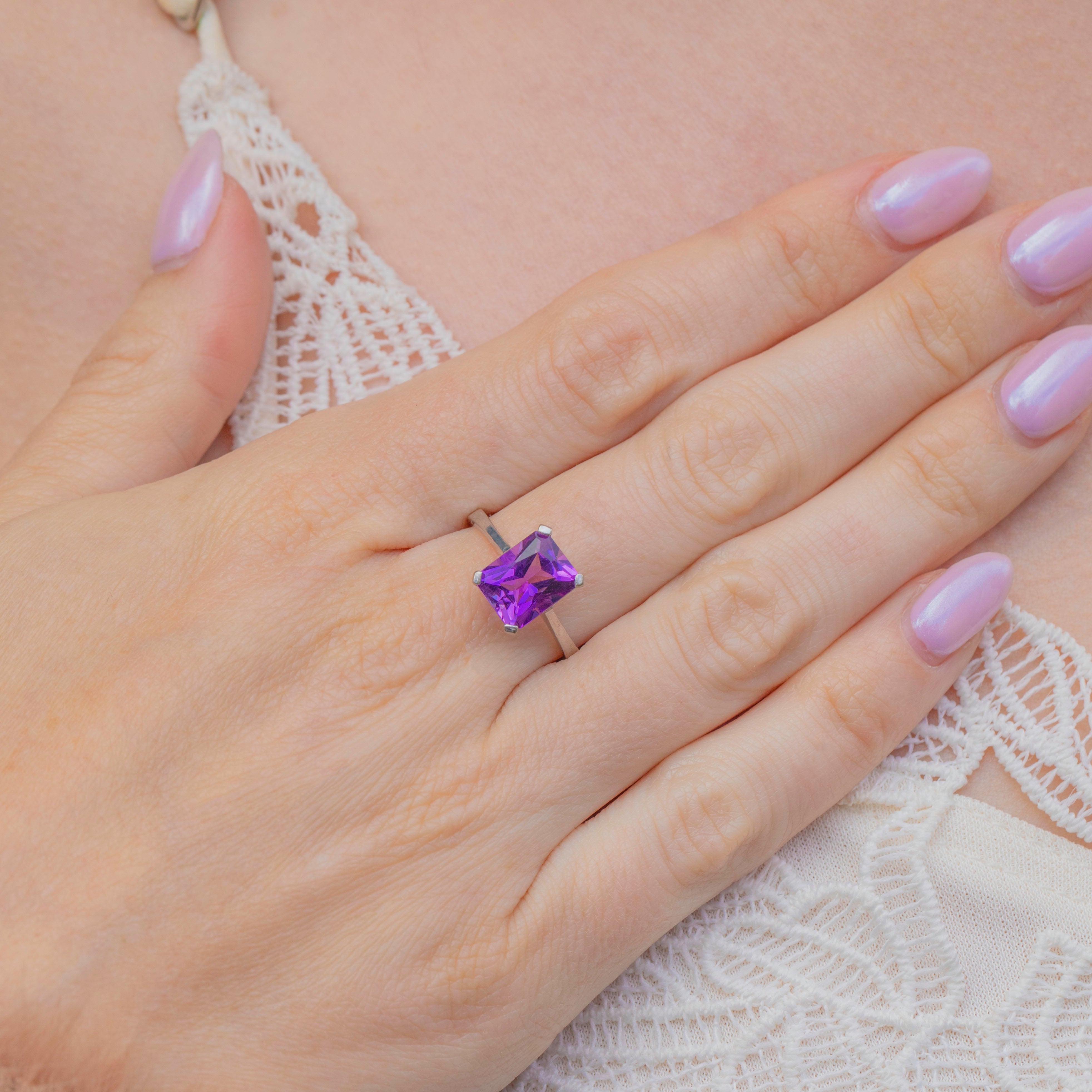 This 9ct White Gold Amethyst ring is fit for a princess! Her 2.45ct Amethyst boasts lilac purple hues from her expertly cut facets, adding a hint of luxury to any attire.