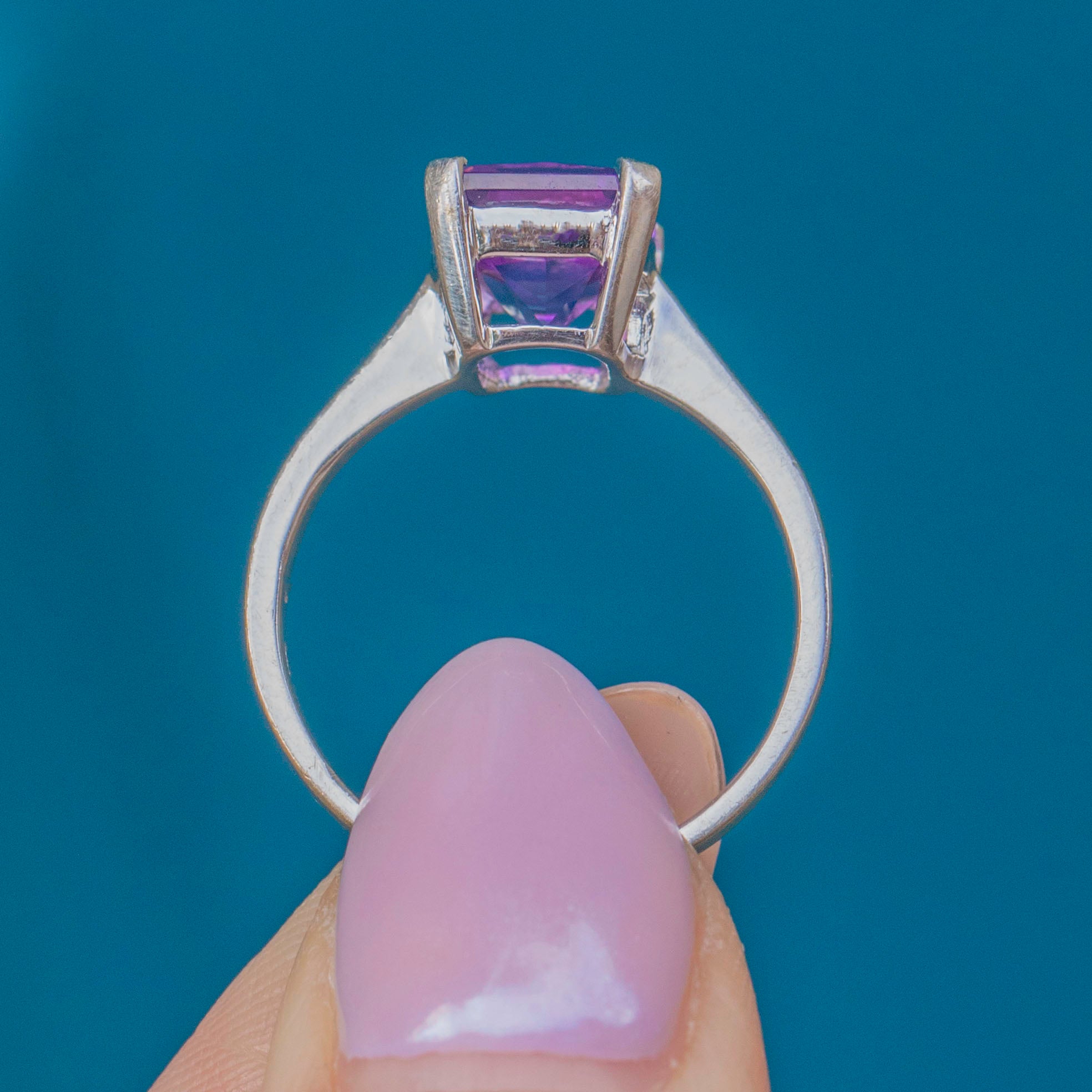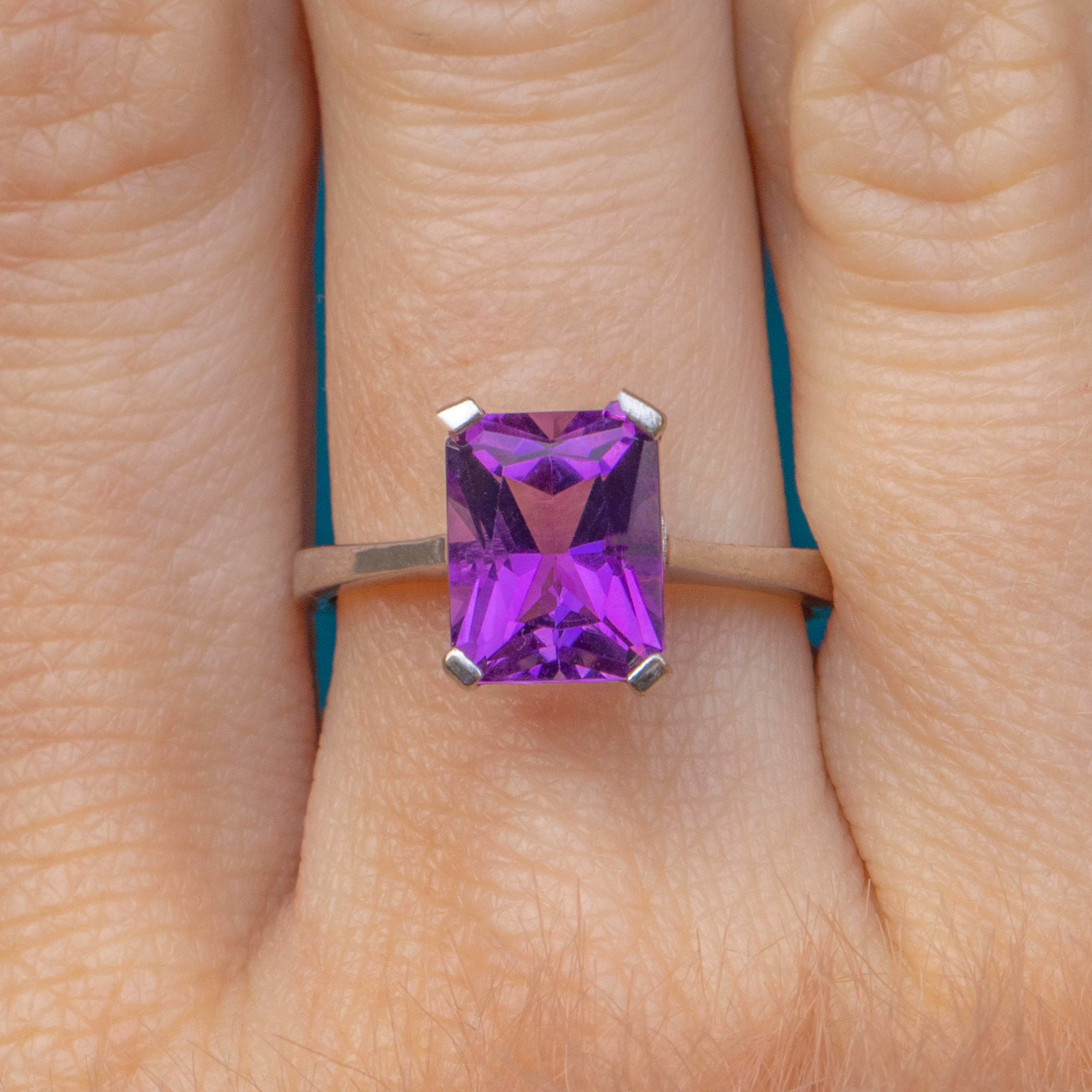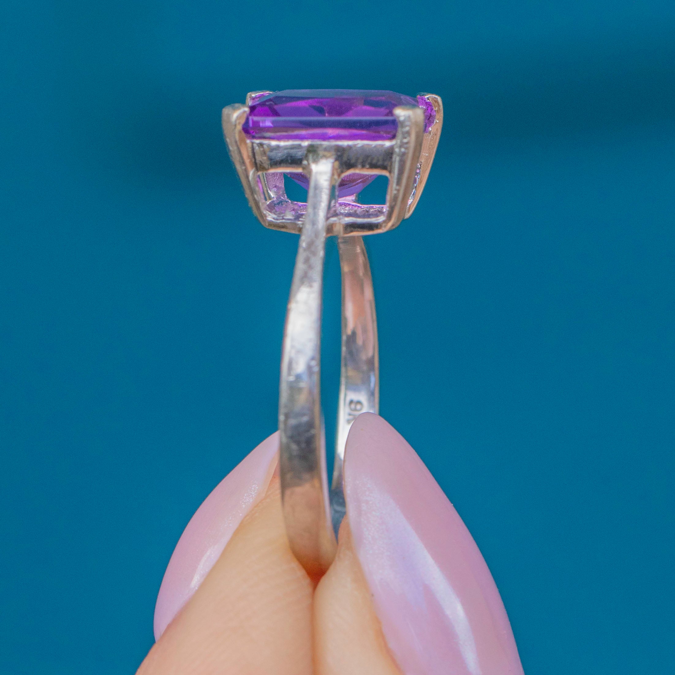 This 9ct White Gold Amethyst ring is fit for a princess! Her 2.45ct Amethyst boasts lilac purple hues from her expertly cut facets, adding a hint of luxury to any attire.