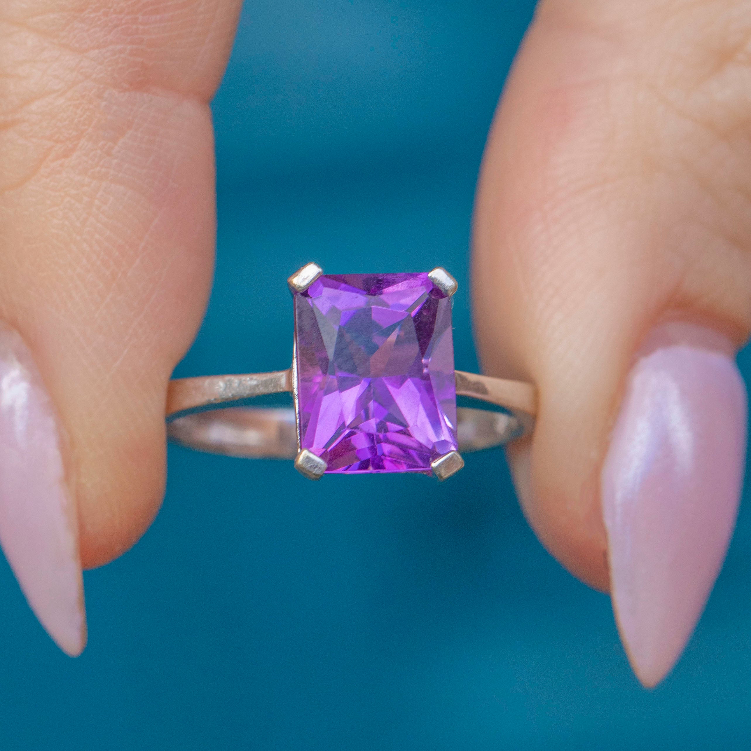 Striking and elegant, her shank is crafted from lustrous 9ct White Gold and the high profile allows the light to stream through the AMthyst from every angle. Whether worn alone or incorporated into a ring stack, this Amethyst ring is sure to make a bold statement!