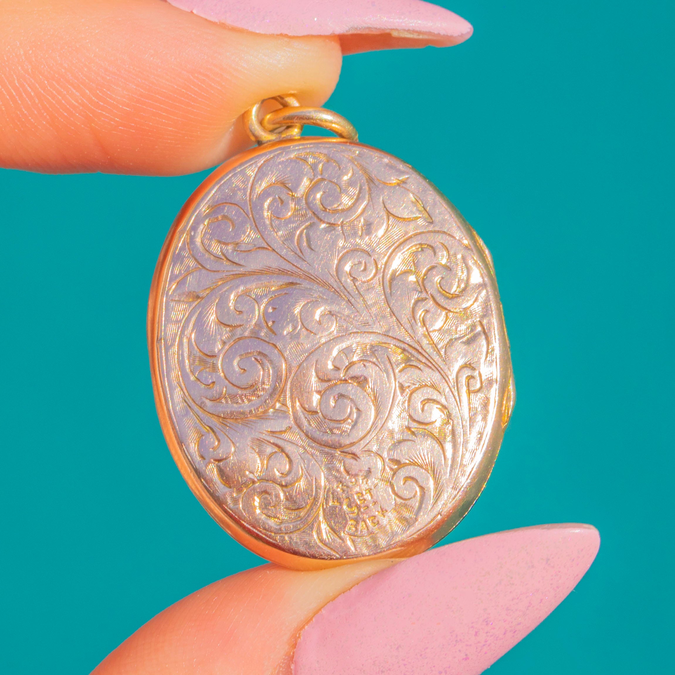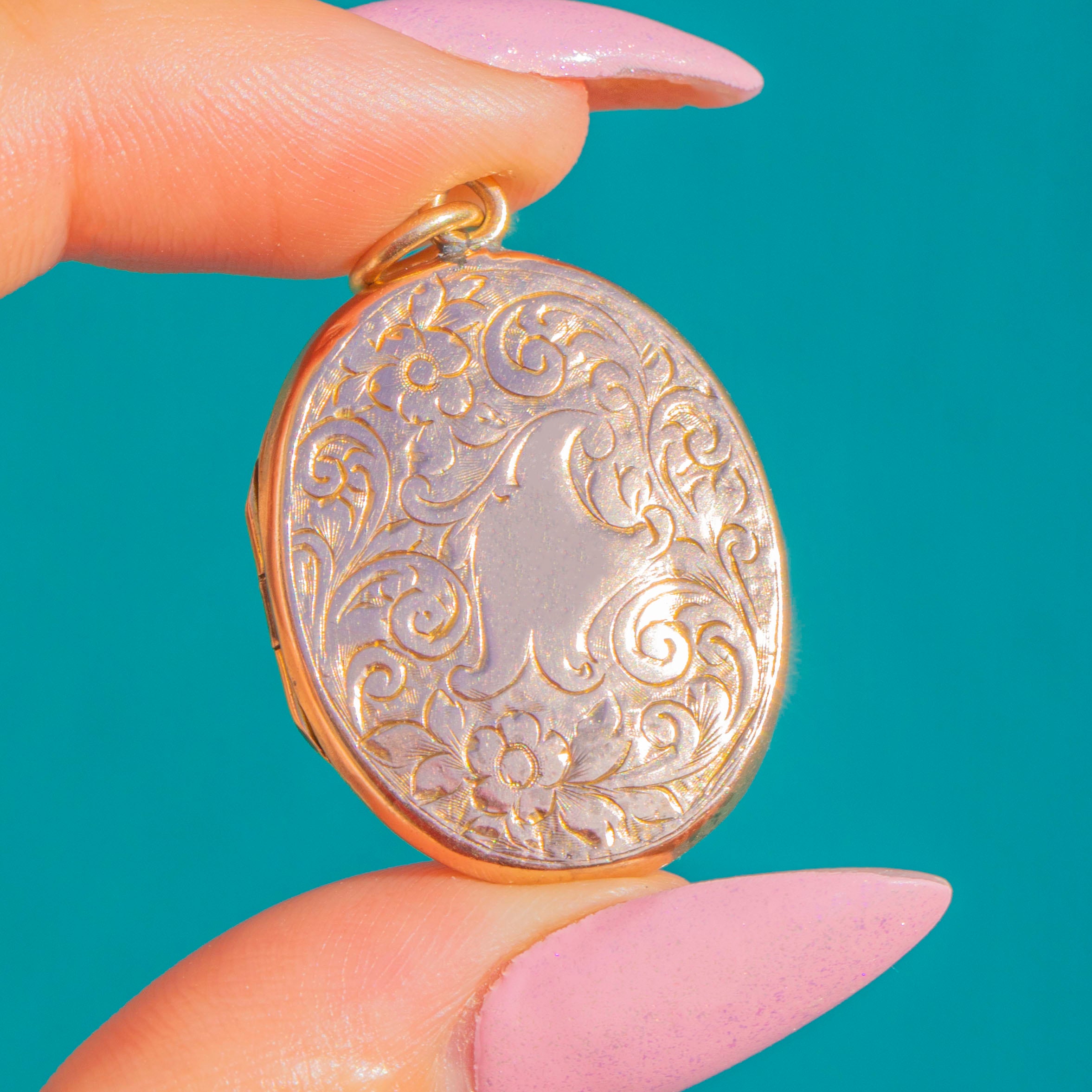 Aesthetic Antique 9ct Gold Engraved Oval Locket