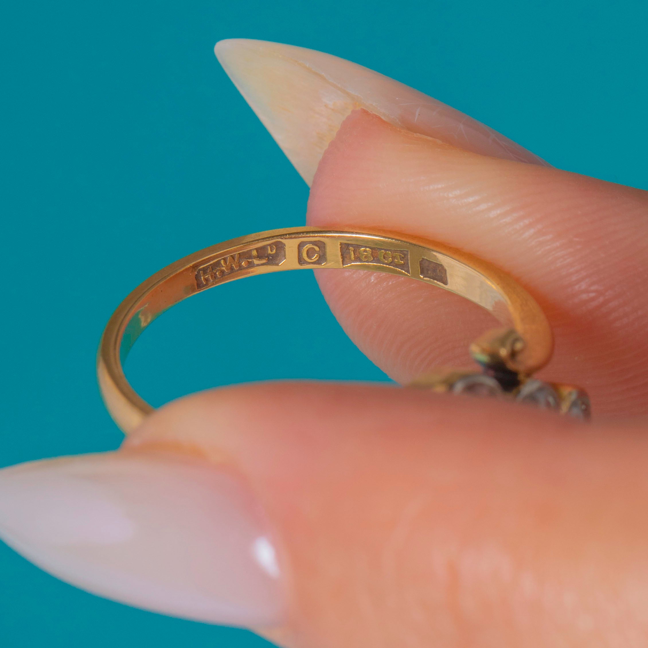 HALLMARKS: 18ct, date letter C, Maker's Mark HWLd, Assay Mark obscured.