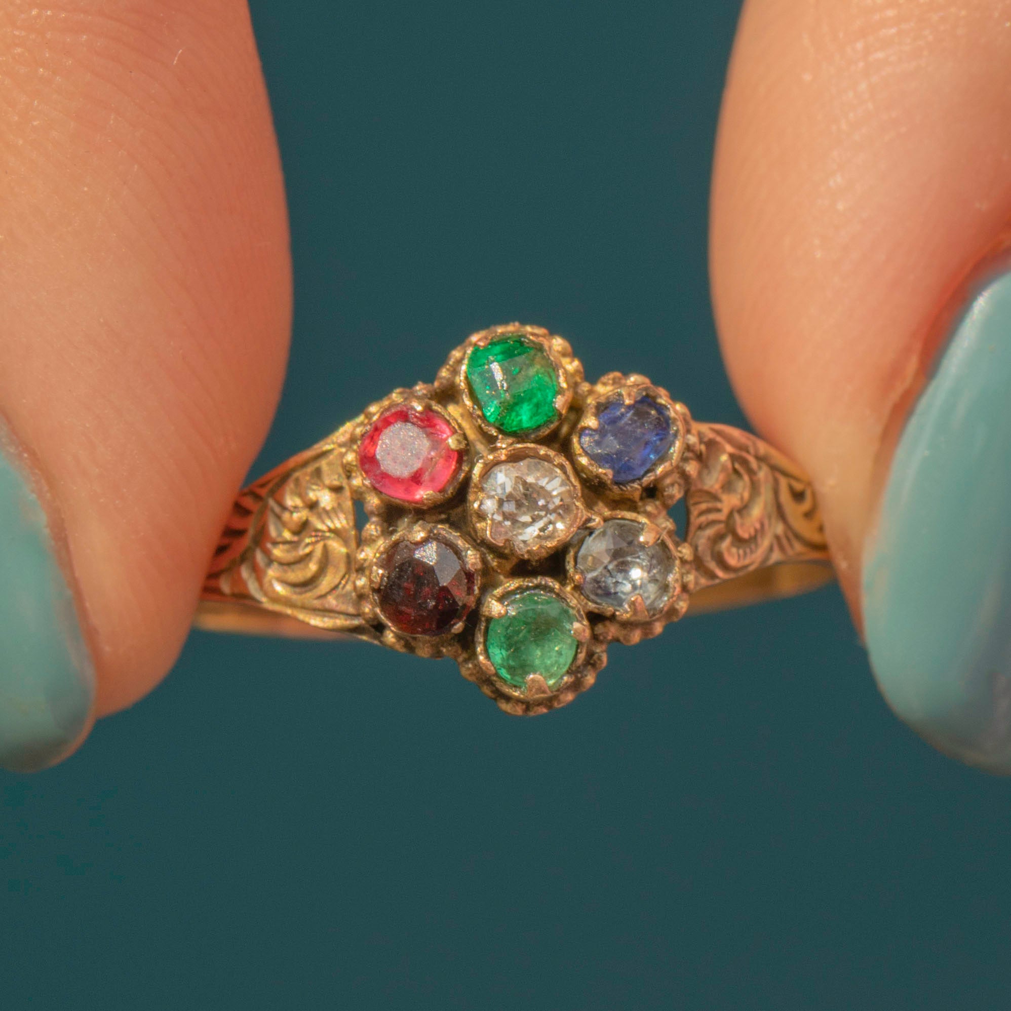 Antique 12ct Gold Dearest Acrostic Flower Ring, c.1865