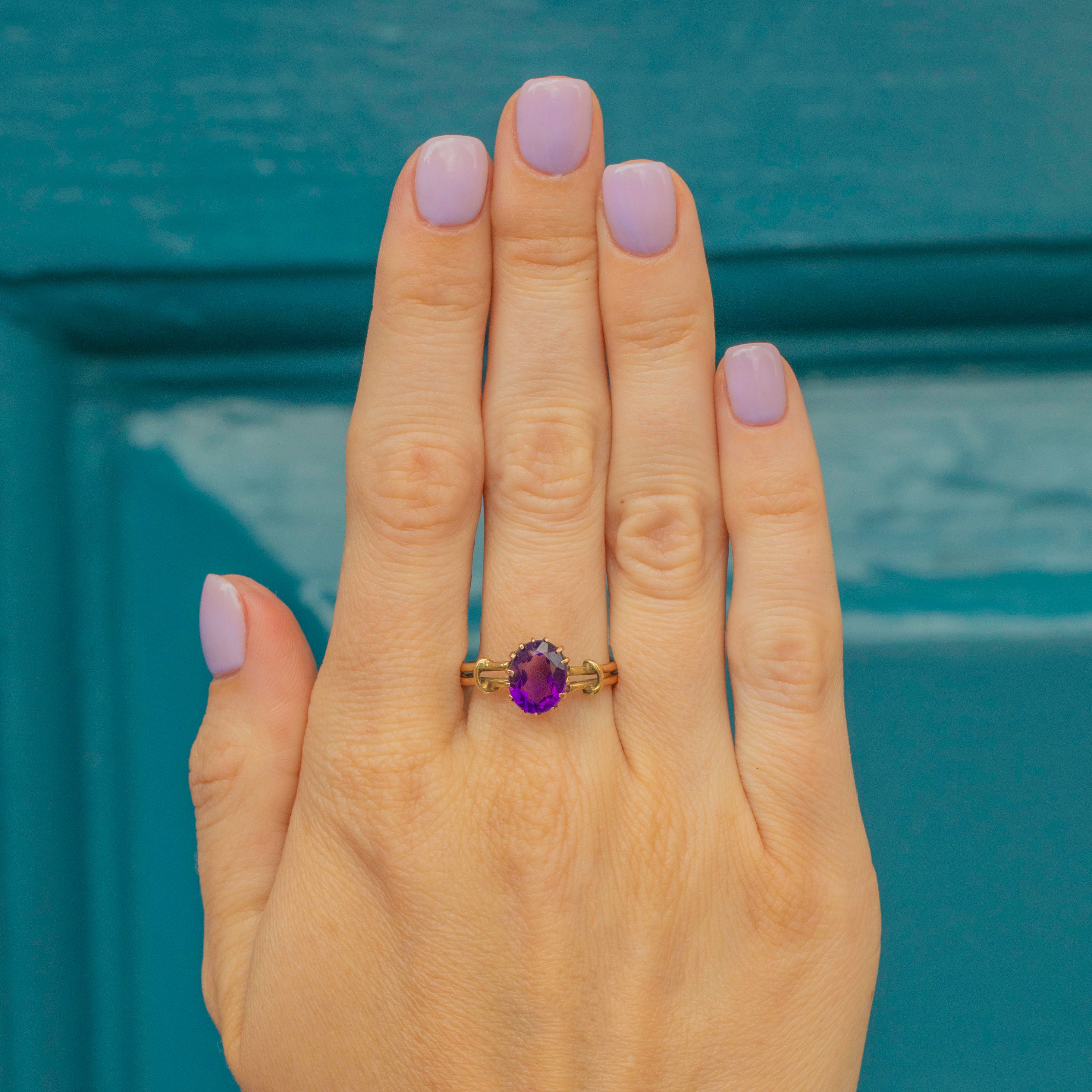 Antique 15ct Gold Amethyst Solitaire Ring, 1.25ct