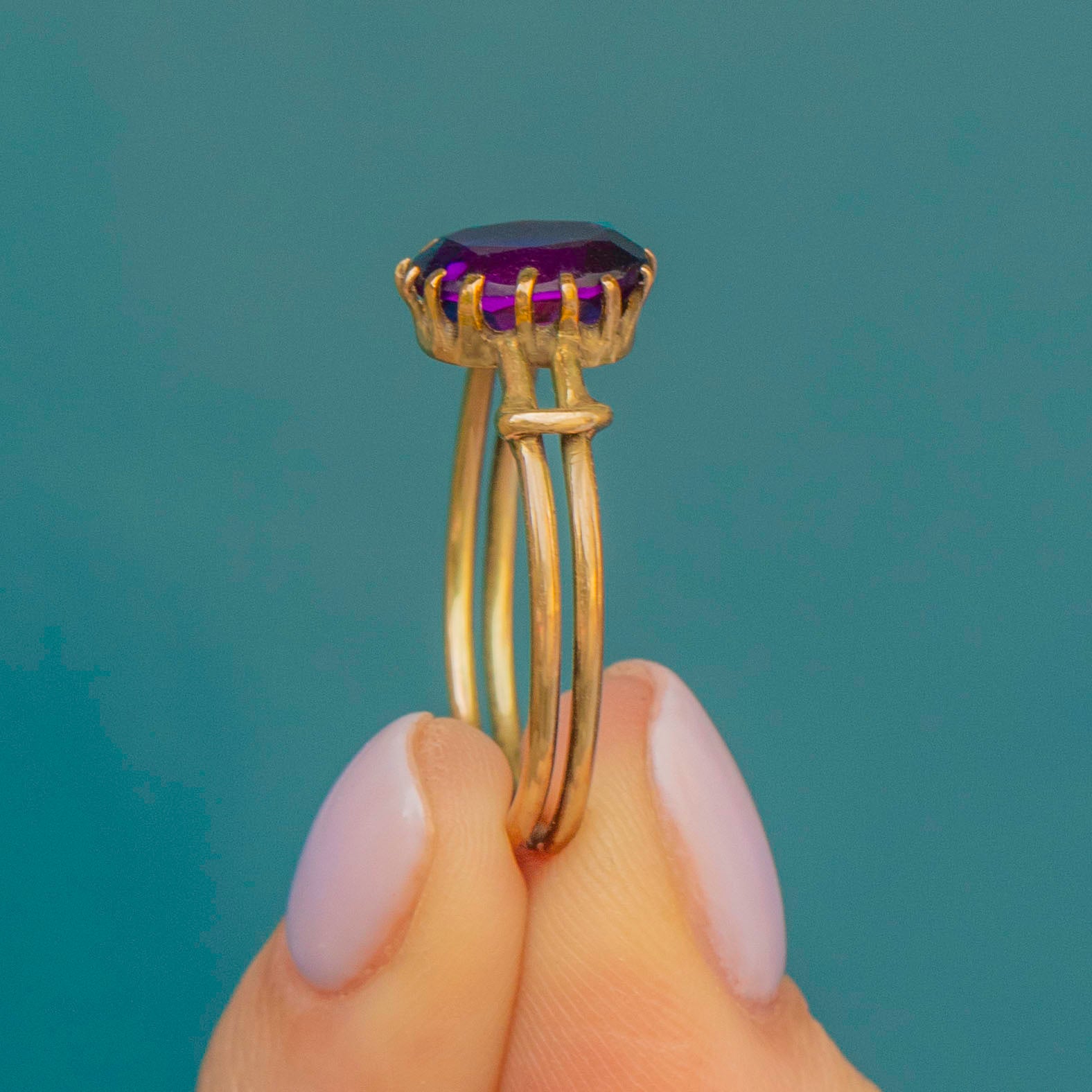 Bound together by buttery 15ct Gold, this Victorian ring is spilling with splendour. With two ring bands securing this antique Amethyst ring around your finger, she provides the perfect stacked look!