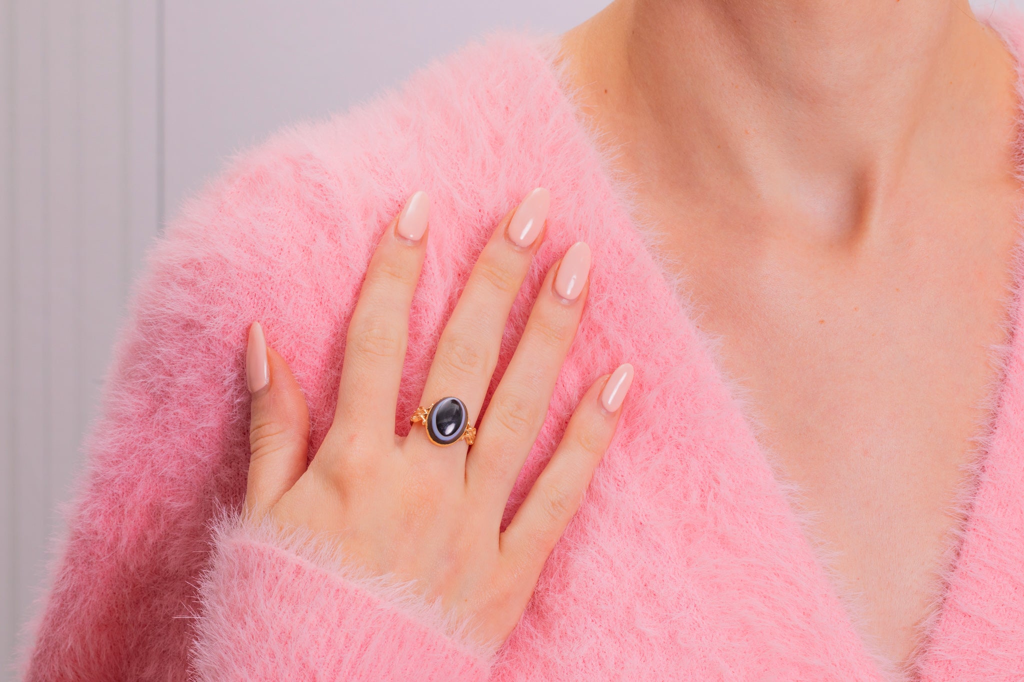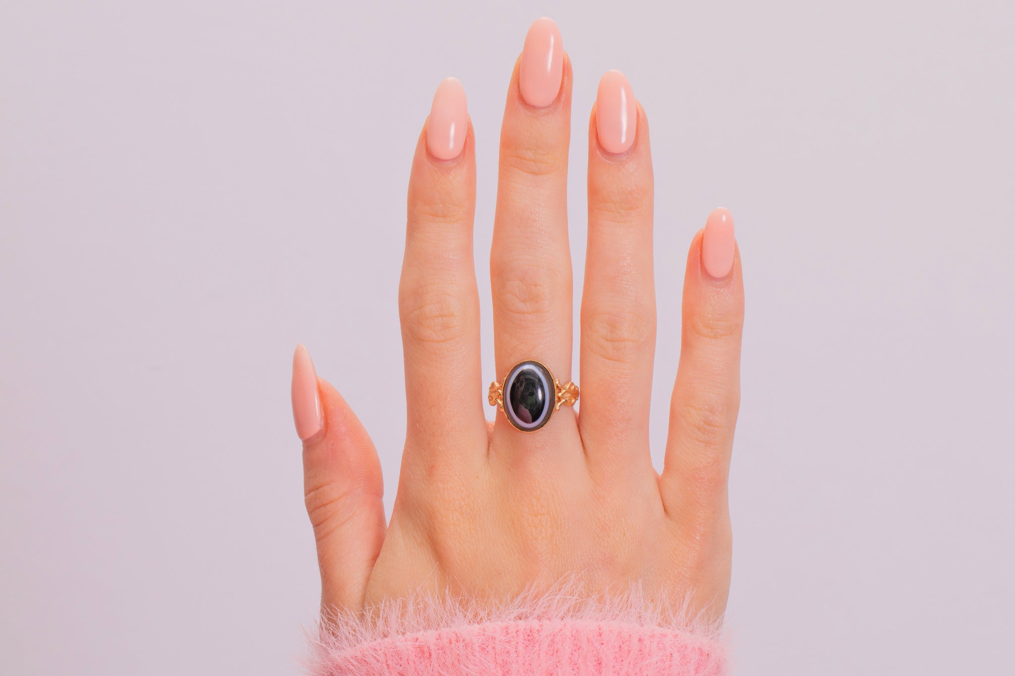 The Banded Agate has a distinctive target shape, commonly found in Victorian jewellery, and is elevated by the cabochon cut that allows you to see all of its different tones.