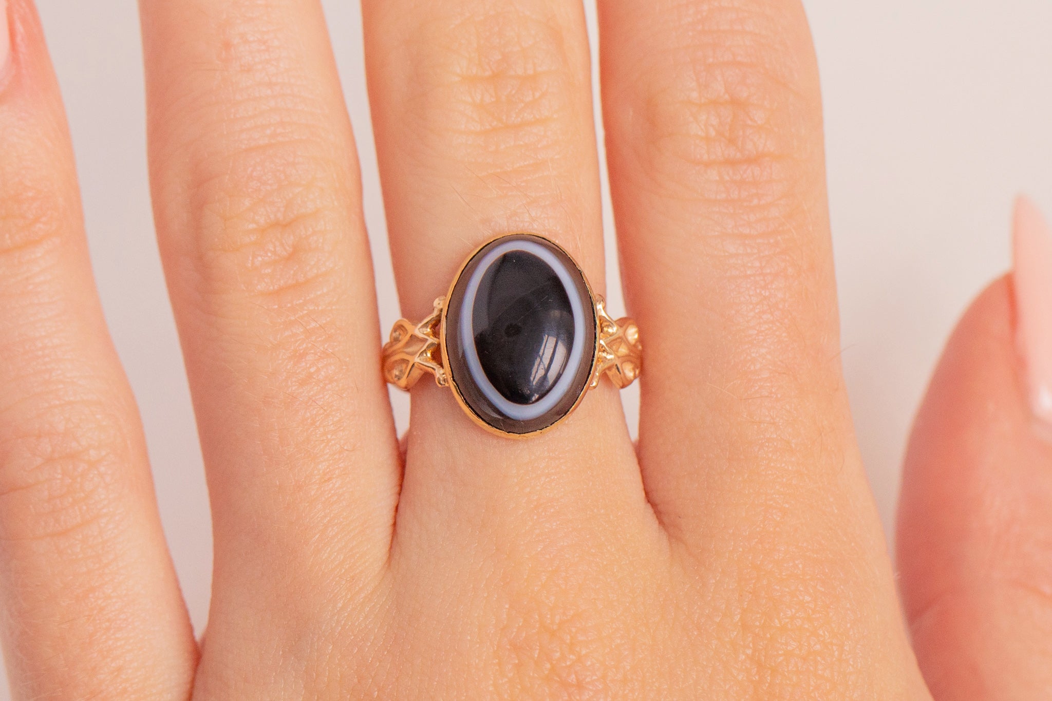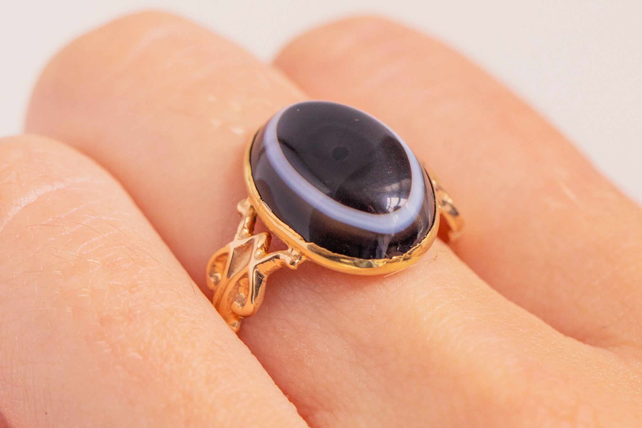Antique 15ct Gold Banded Agate Ring