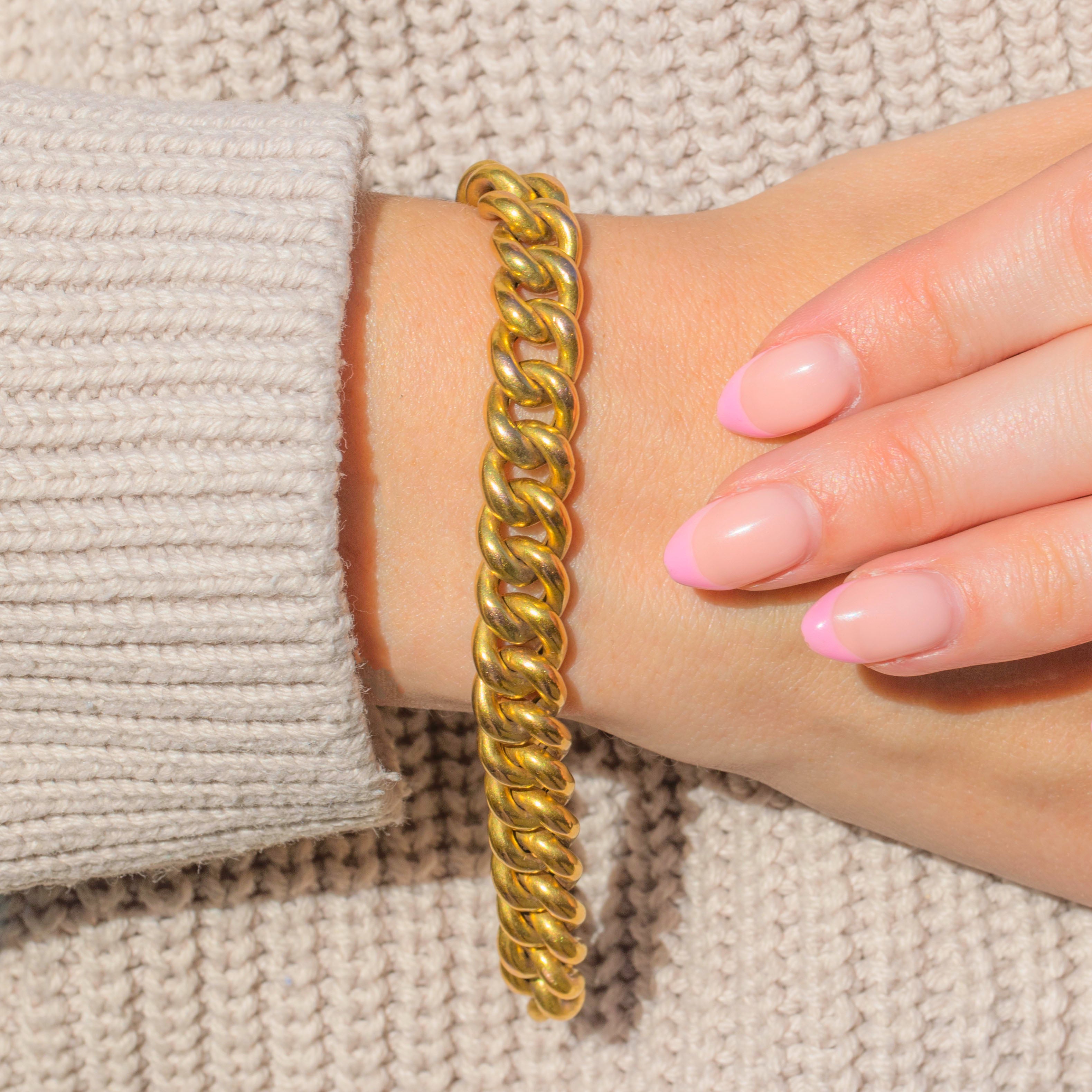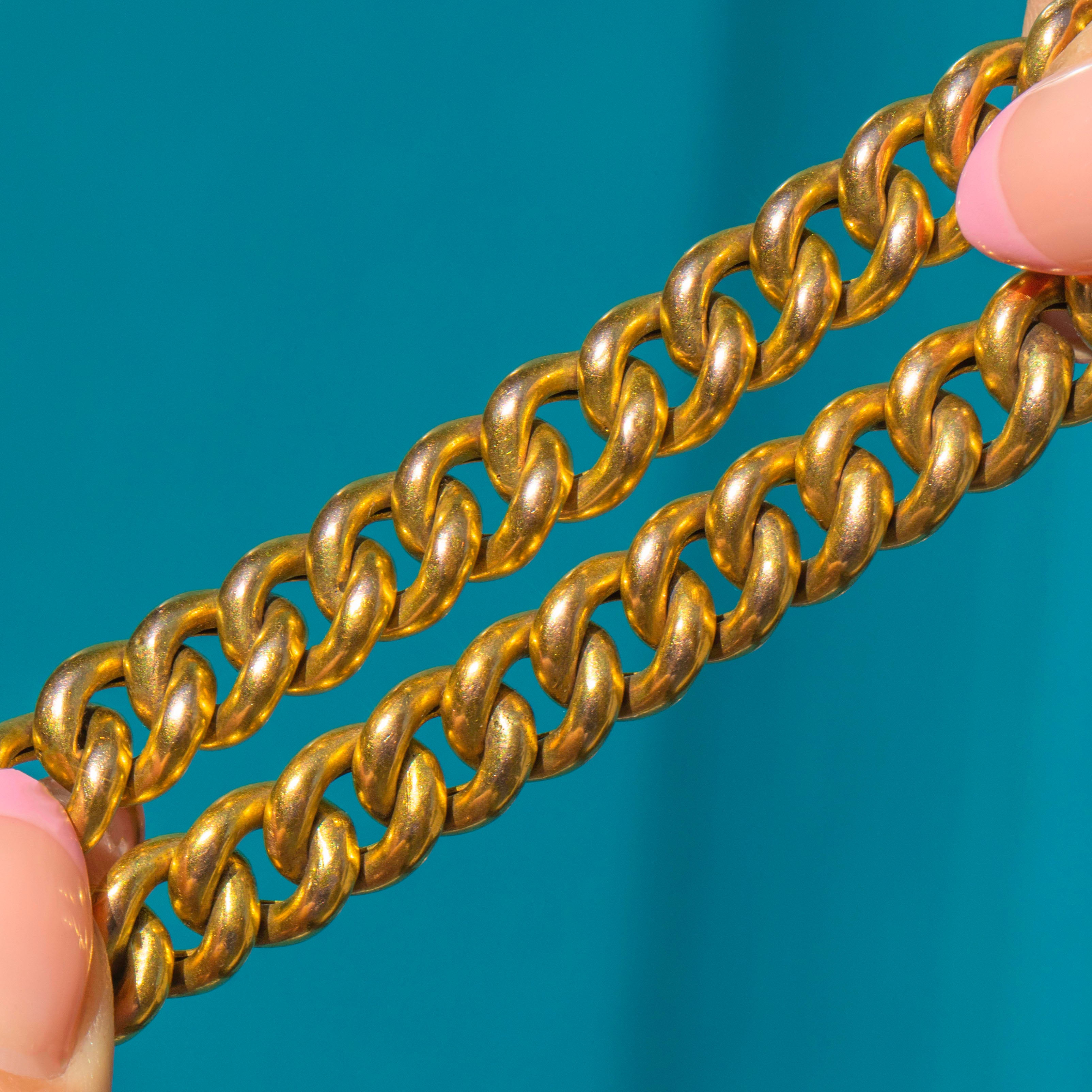 Not just a fun feature, this Victorian bracelet is formed of buttery 15ct Gold, making her exude grandeur from every angle and her chunky curb links create a statement as they adorn your wrist.