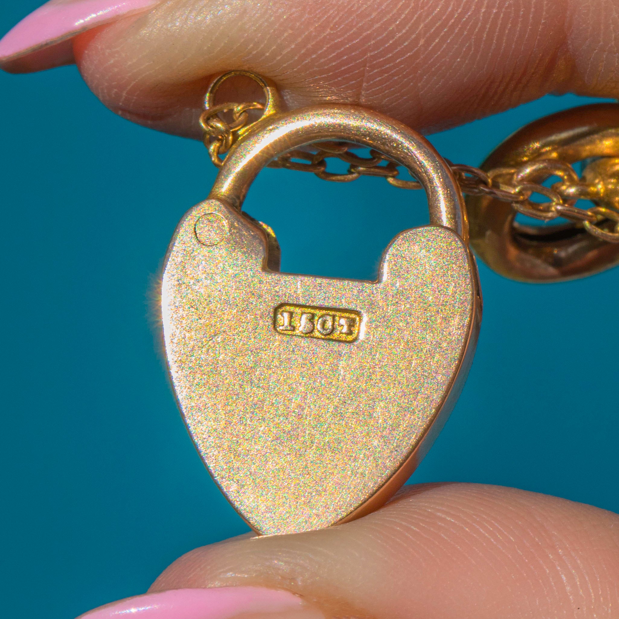 Antique 15ct Gold Curb Bracelet with Heart Padlock & Key