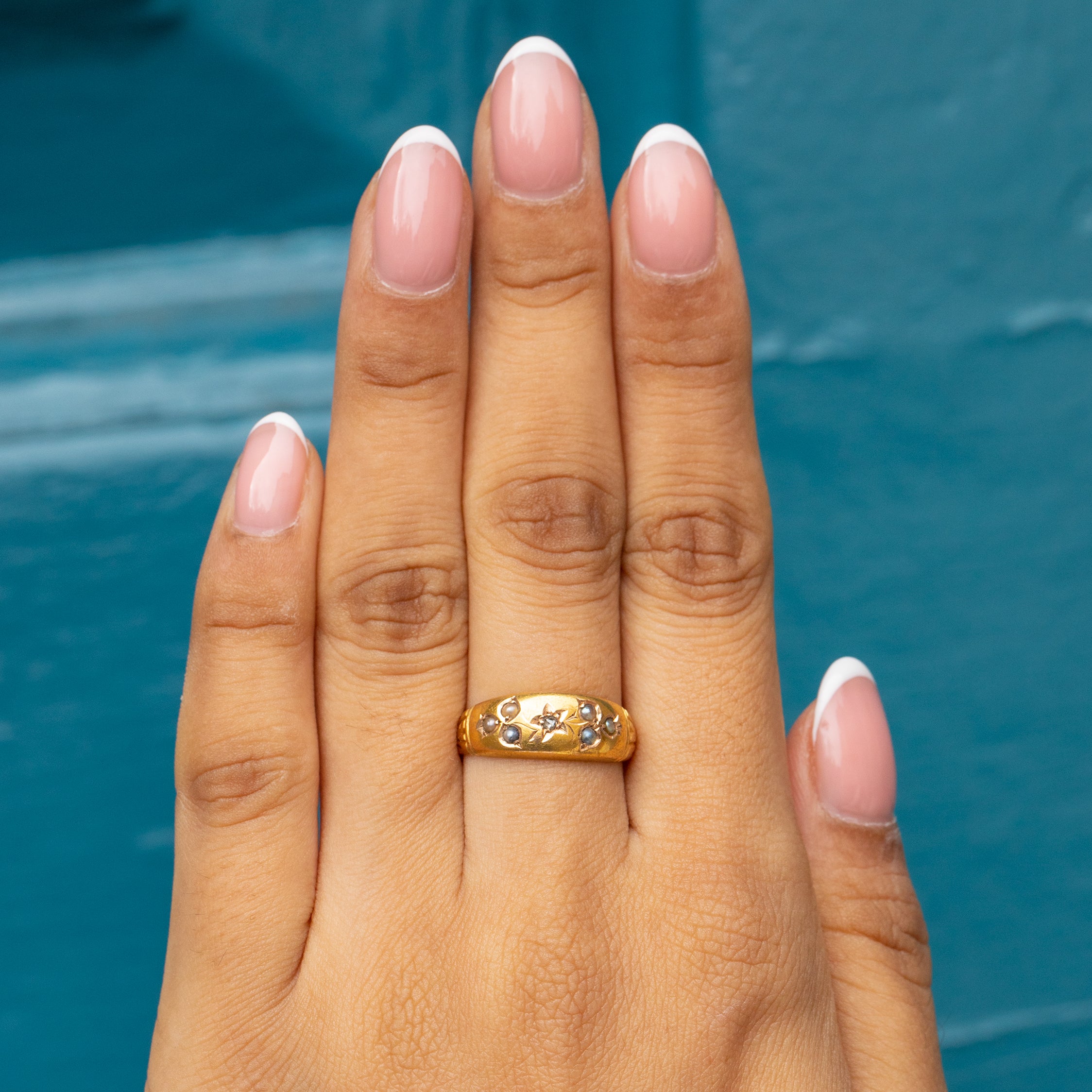 Undeniably sophisticated this Victorian gypsy ring has a smoothly domed profile, so not only will she look pronounced on her own, but she can also be stacked alongside your other favourite rings with ease. The best part, this solid 18ct Gold ring is fully hallmarked to 1896, making her a highly collectible piece of Victorian jewellery!