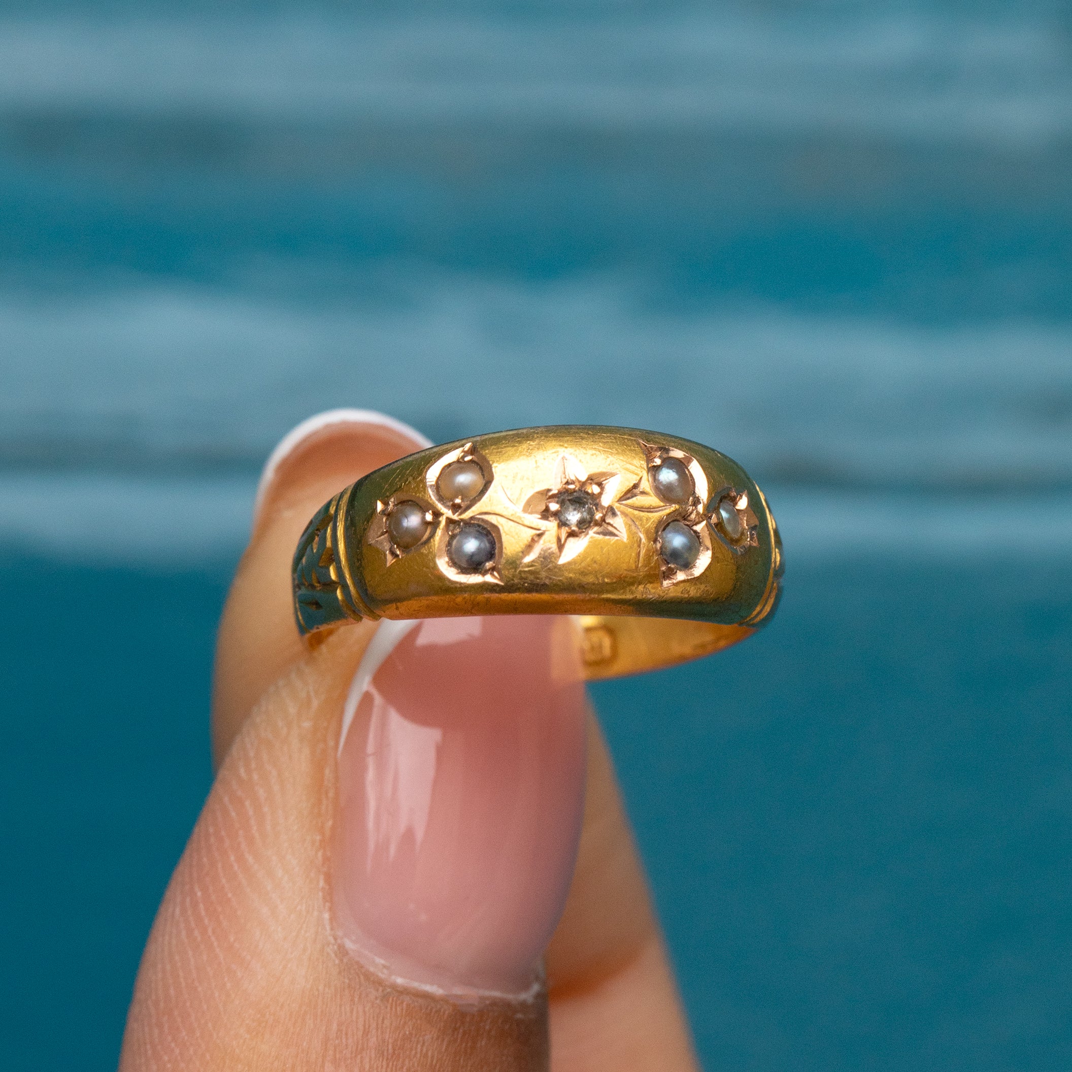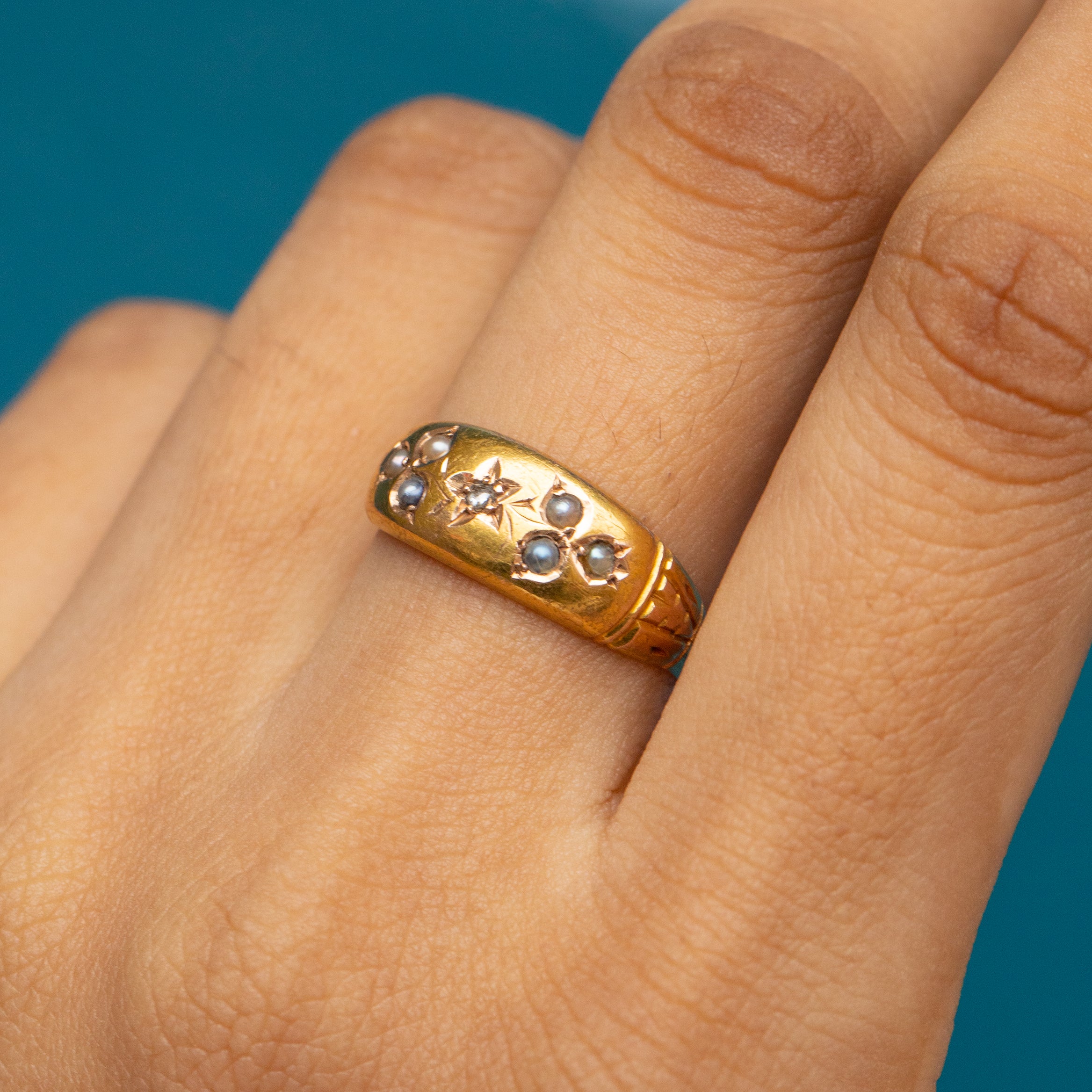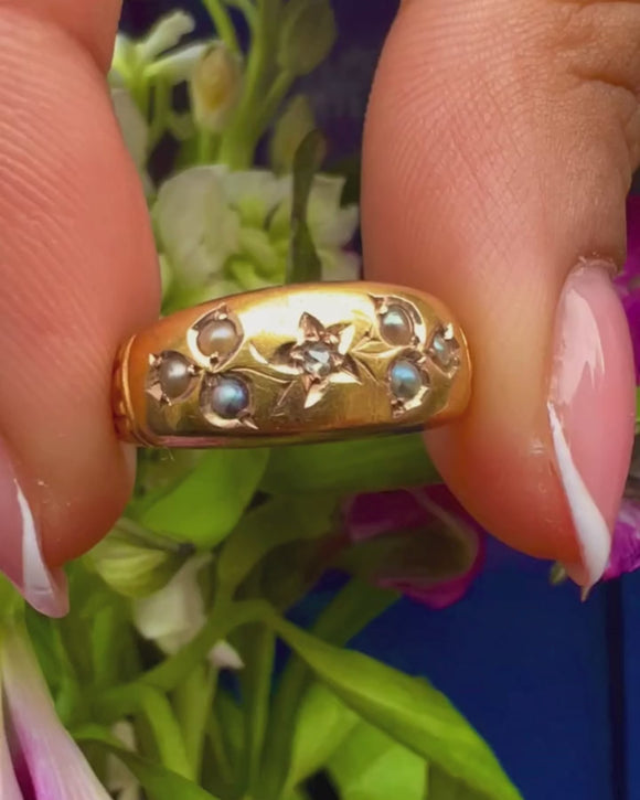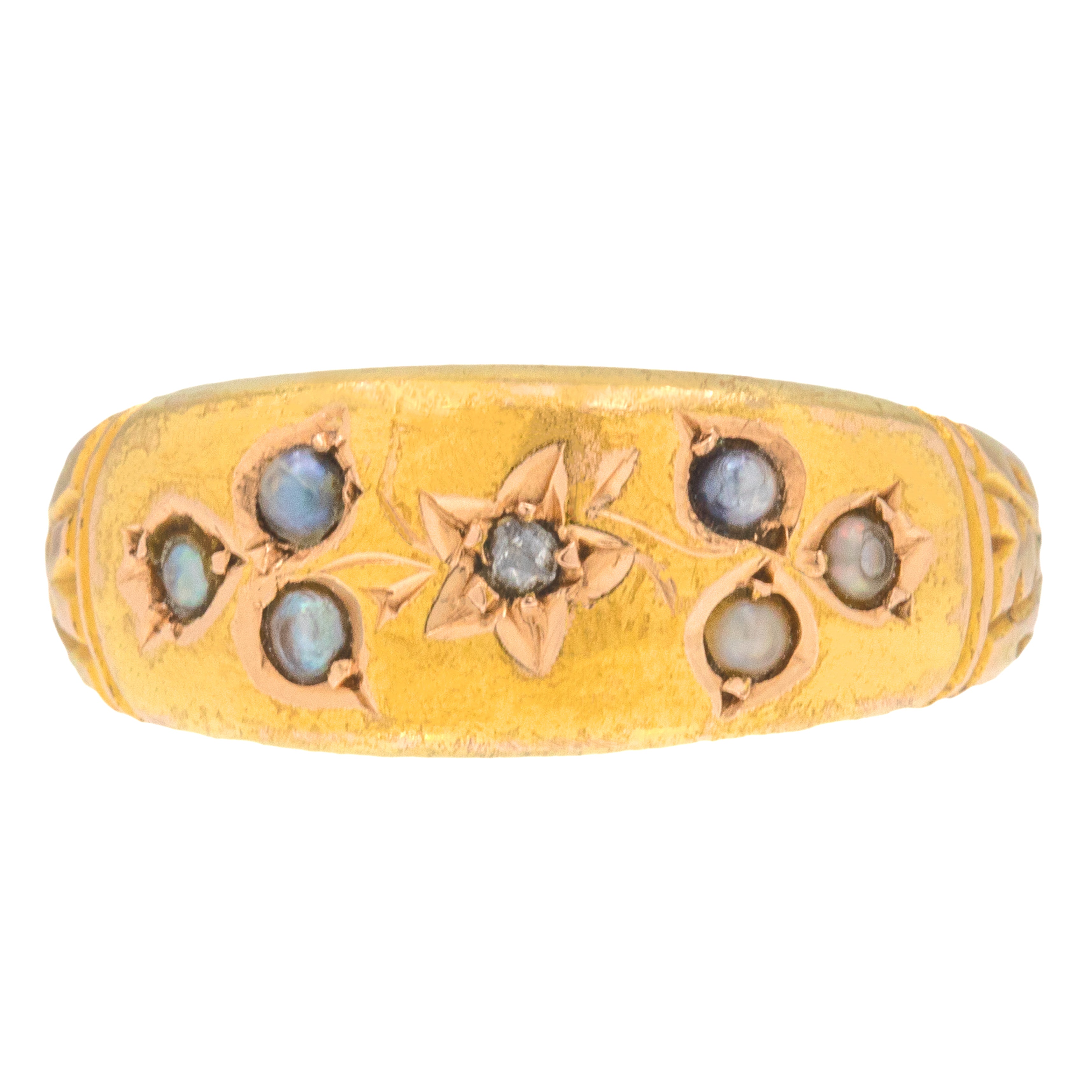 Antique 15ct Gold Diamond Pearl Gypsy Ring