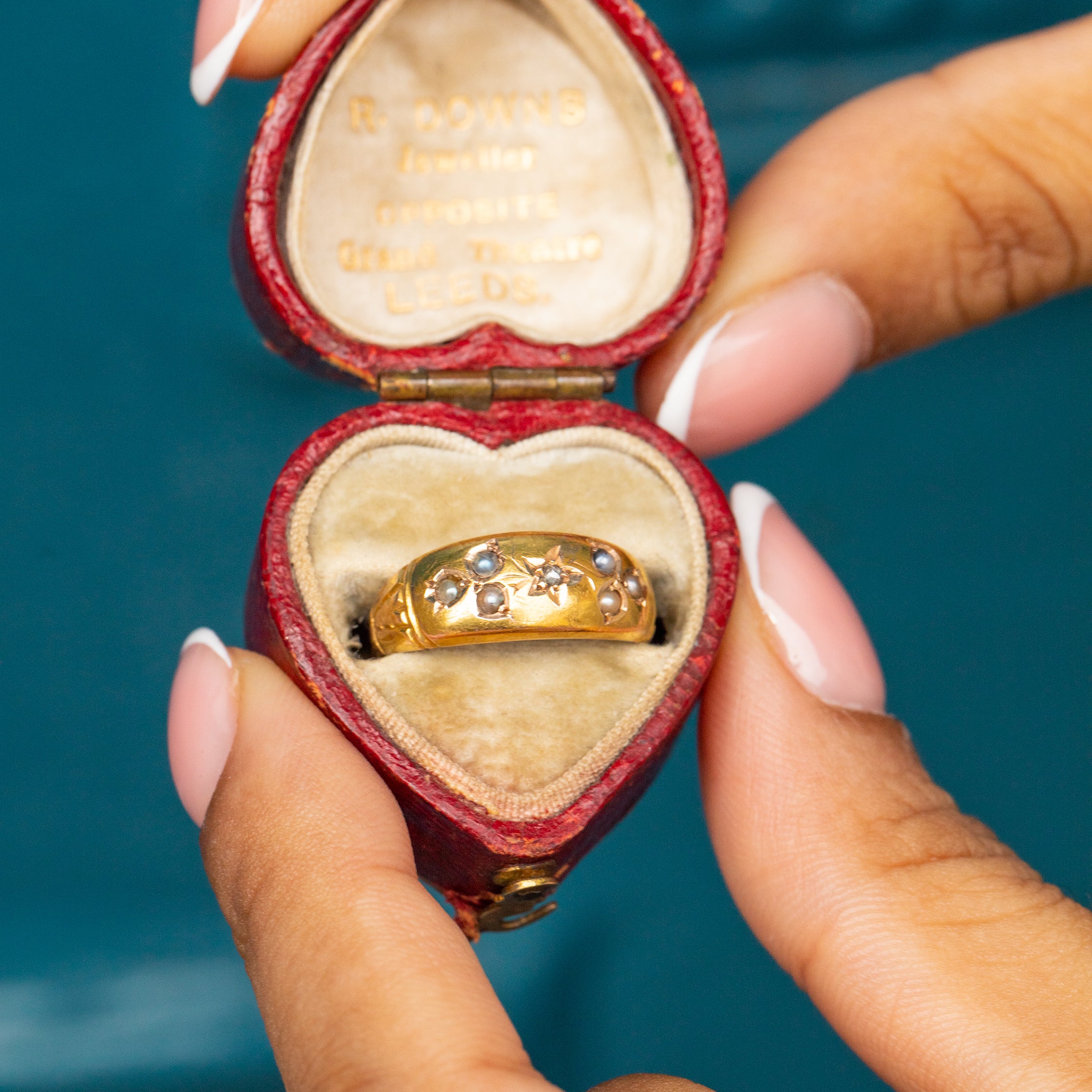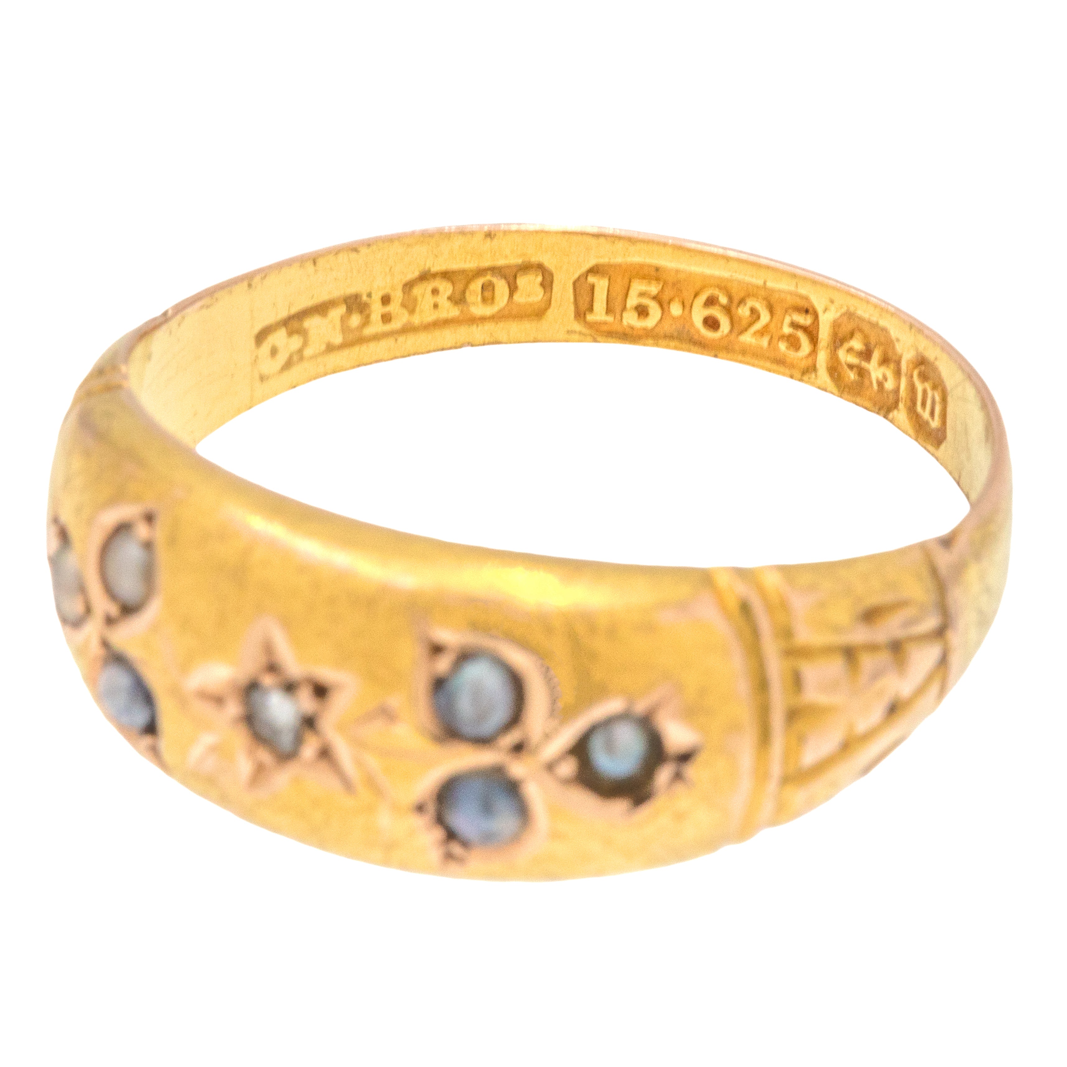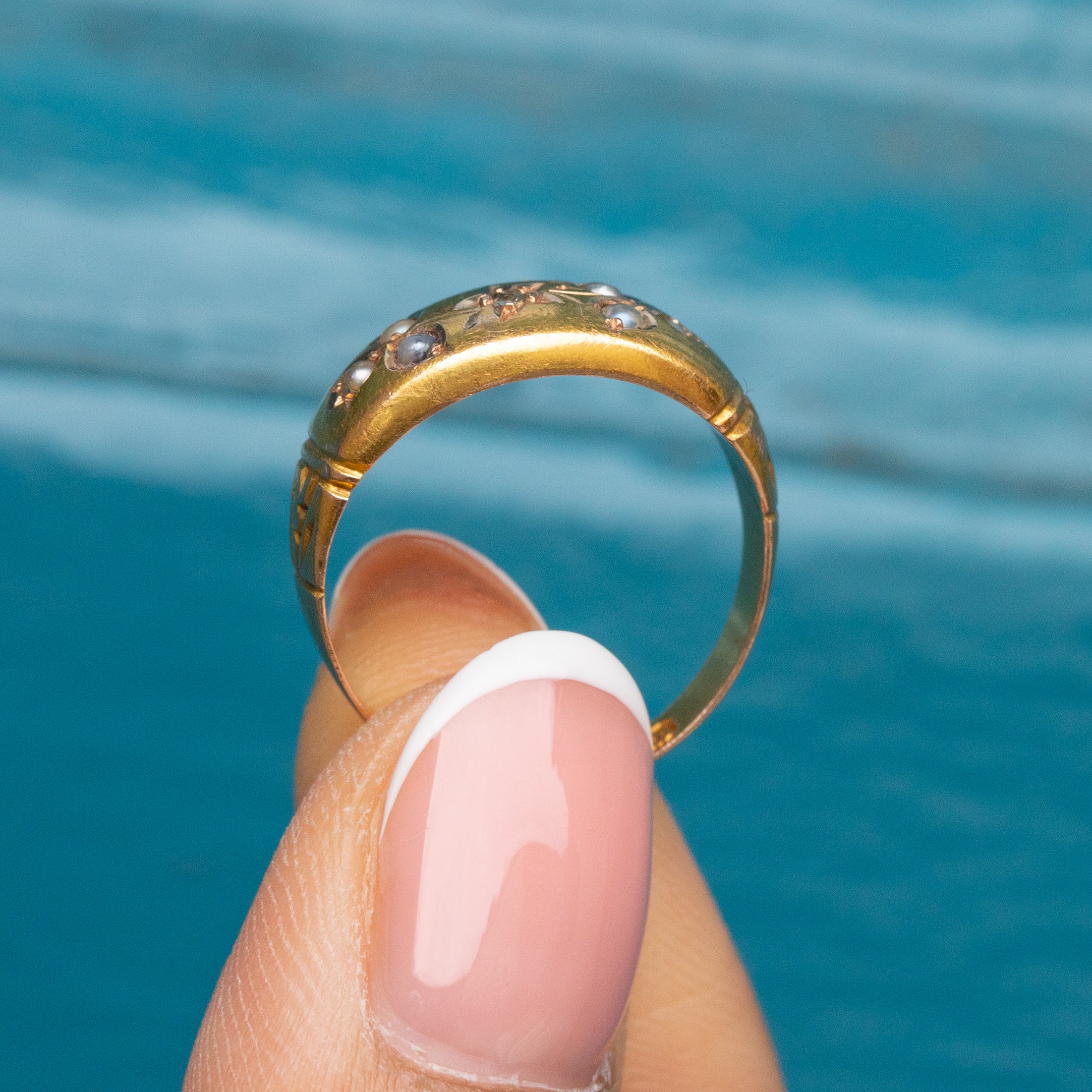 Antique 15ct Gold Diamond Pearl Gypsy Ring
