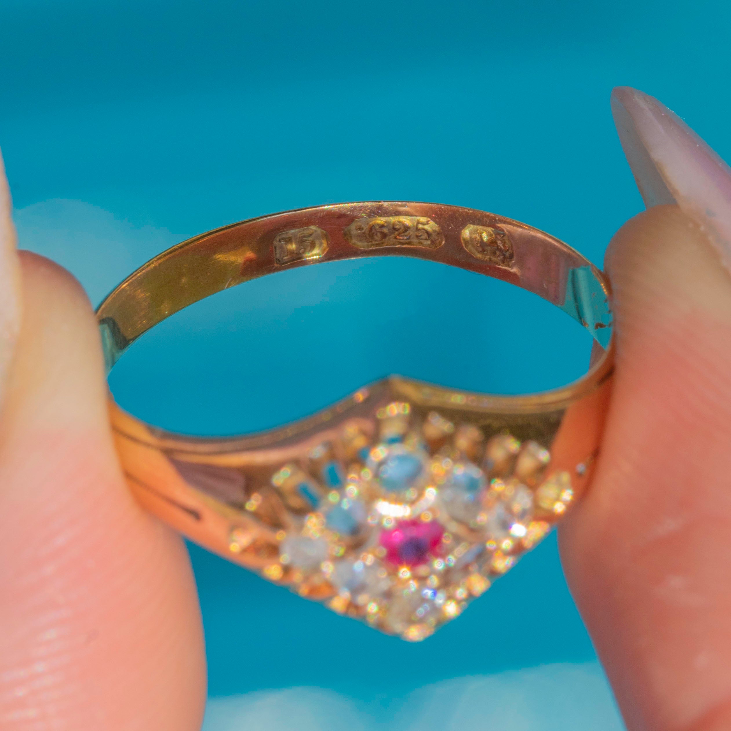 Antique 15ct Gold Diamond Ruby Cluster Ring, Star Motif