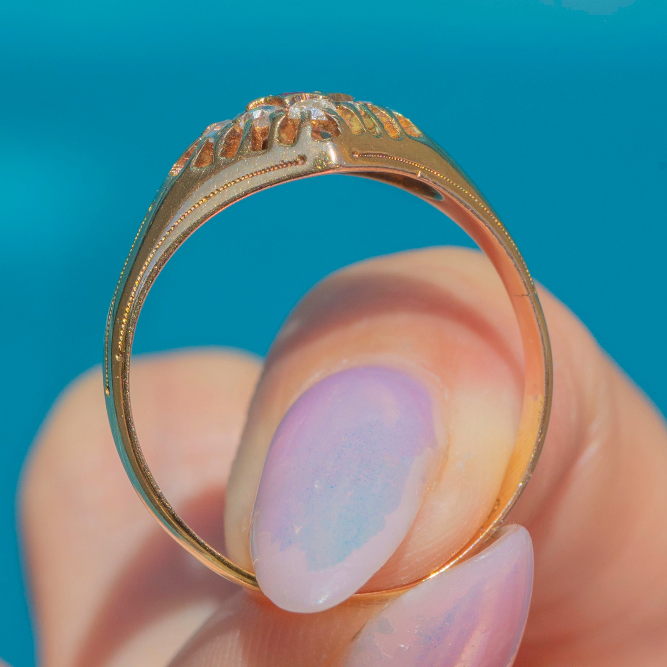 This Victorian Gold ring oozes splendour from every crevice, and can easily be worn every day, whether as a unique engagement ring or to add a touch of antique luxury to your outfit!