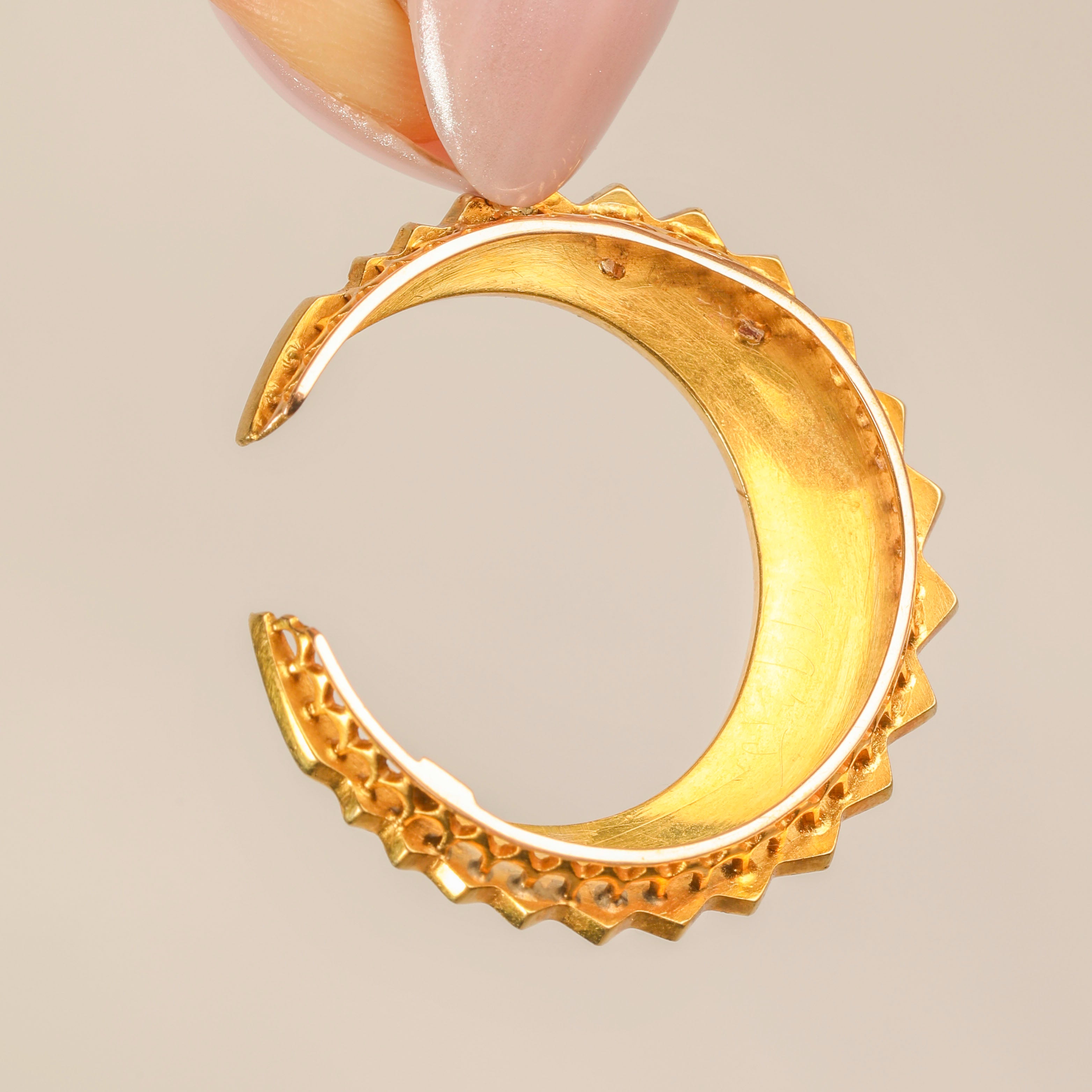 This antique 15ct Gold double row Pearl crescent moon pendant will make all your celestial dreams come true! Emanating Victorian charm, her glorious 15ct Gold is rich in tone and is embellished with a generous helping of shimmering Pearls.