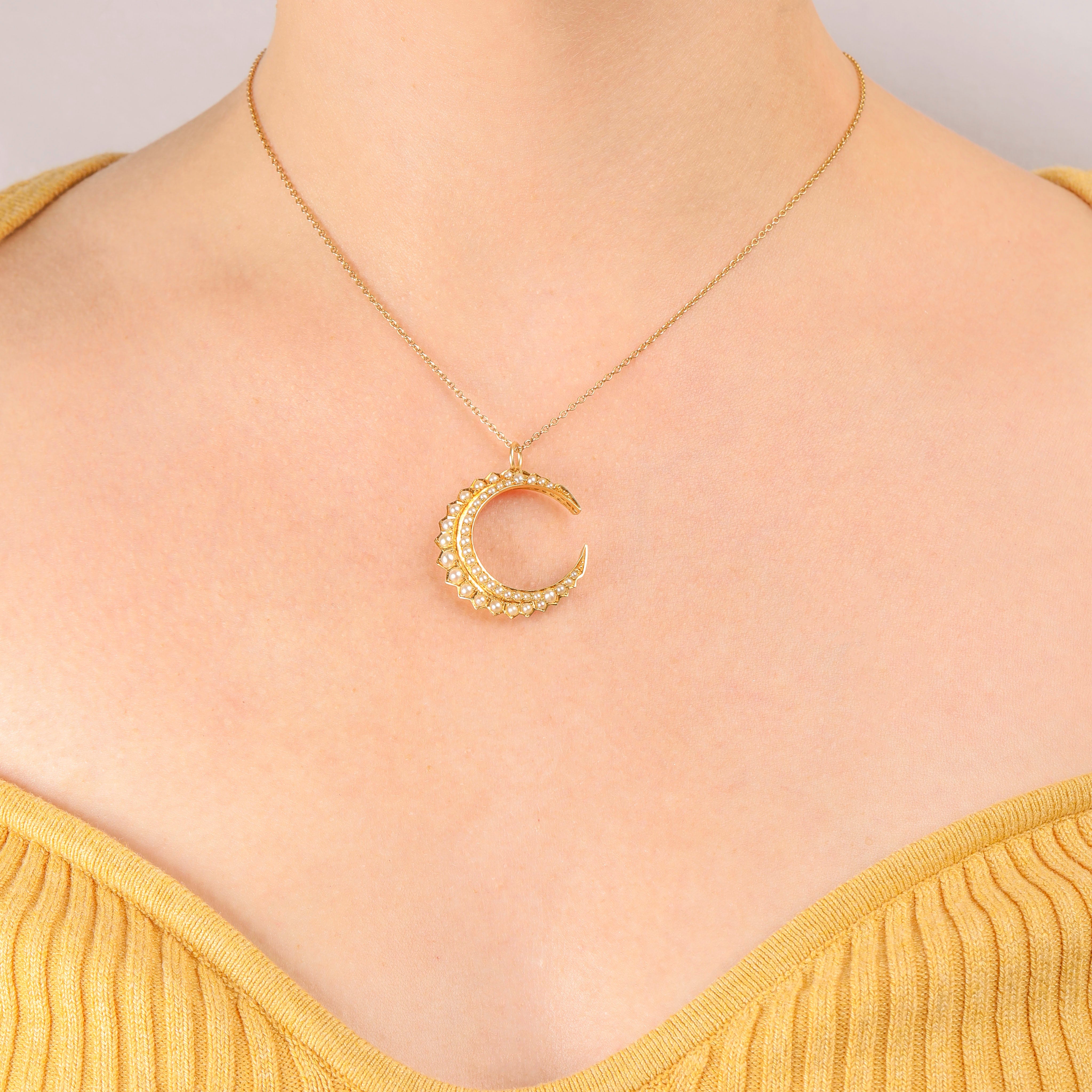 Antique 15ct Gold Double Row Pearl Crescent Moon Pendant