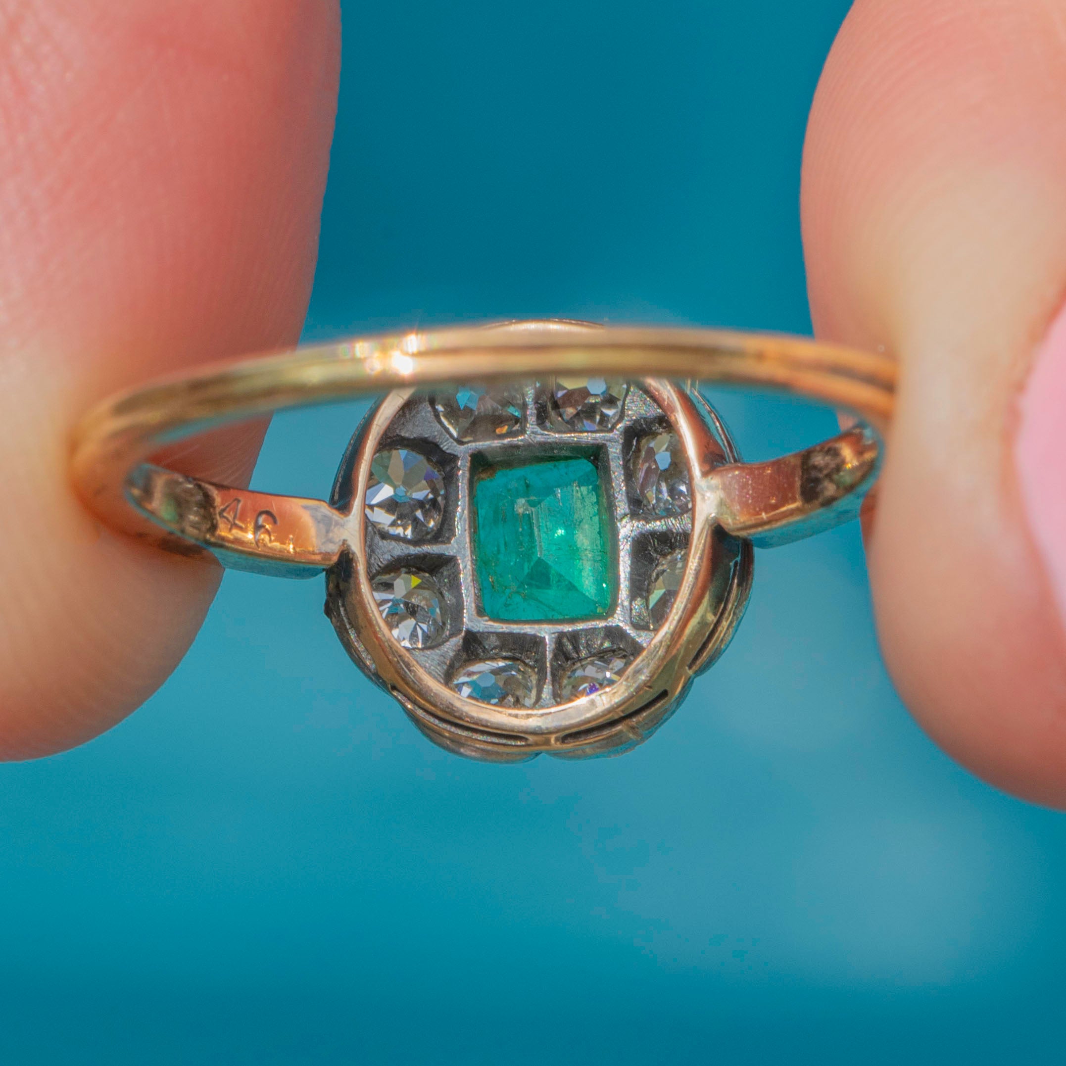 Antique 15ct Gold Emerald Diamond Cluster Ring, 0.65ct Emerald