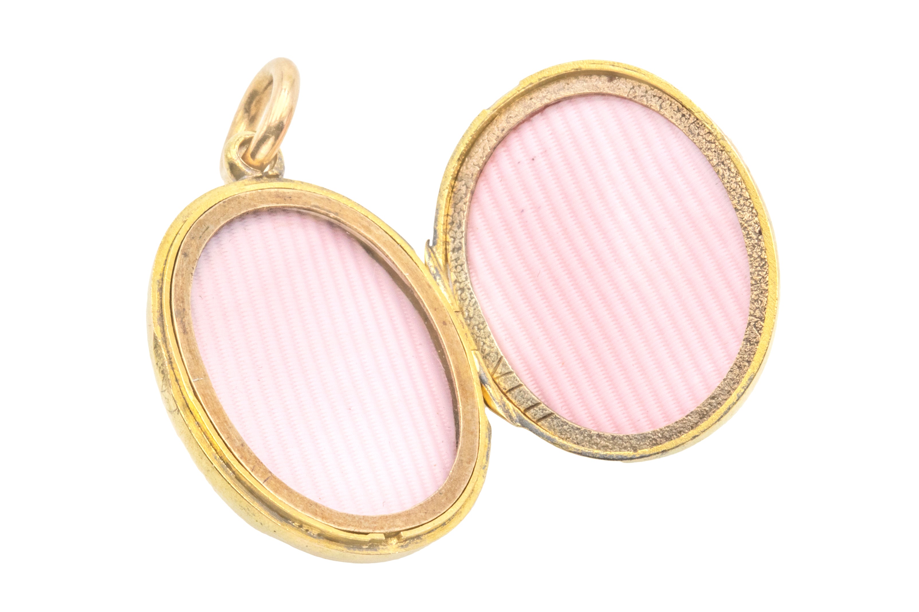 VERY GOOD: This antique 15ct Gold engraved buckle locket is in very good condition throughout. The Gold has retained its gorgeous buttery hue and the engraved details are crisp and clear. There are some minor dings and surface wear to the body, but these are barely noticeable. She opens and closes with a "click" ensuring your photographs will be kept safe, secure and preserved for years to come. A gorgeous gift for someone special!