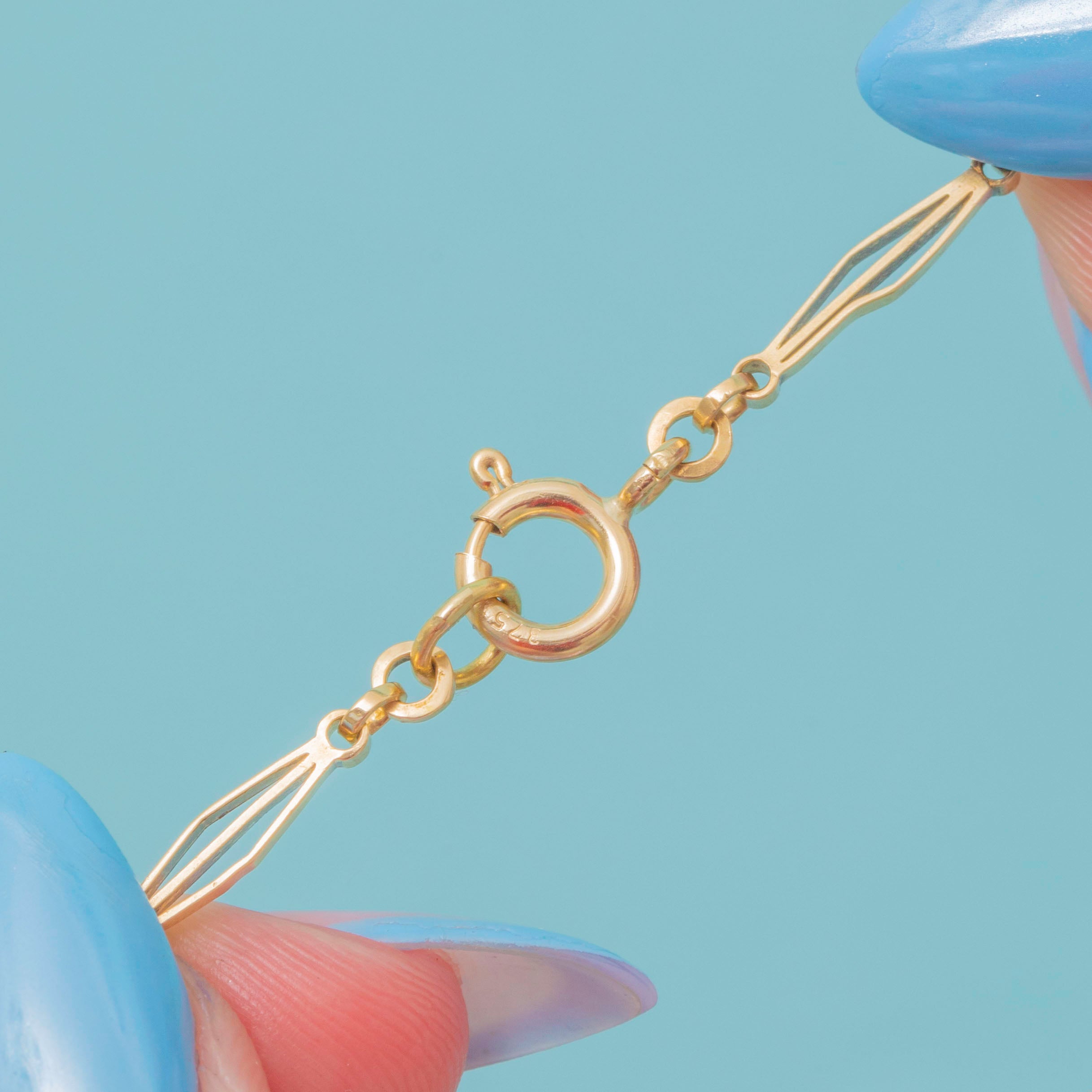 VERY GOOD-EXCELLENT: The Gold has an even buttery hue throughout, and each link is robust and securely connected. There is a small dent on one of the lozenge links, though this won't be noticeable when the bracelet is worn. The bolt ring is in perfect working order, allowing you to wear this Victorian Gold bracelet with absolute confidence!