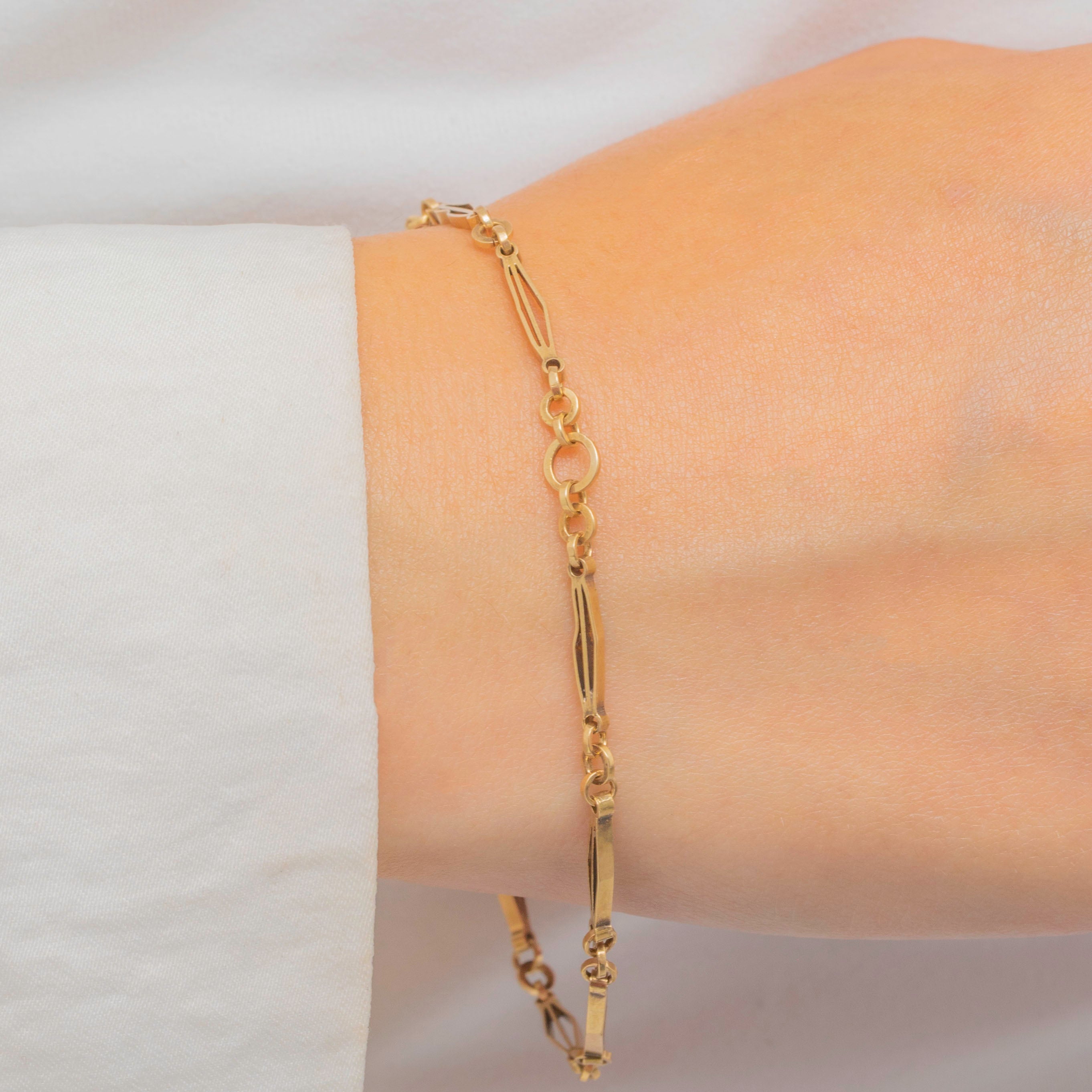 The perfect accessory for everyday wear, this antique Gold bracelet has a slender form that lends well to dressing up or down; it will instantly add a touch of antique luxury to your outfit!