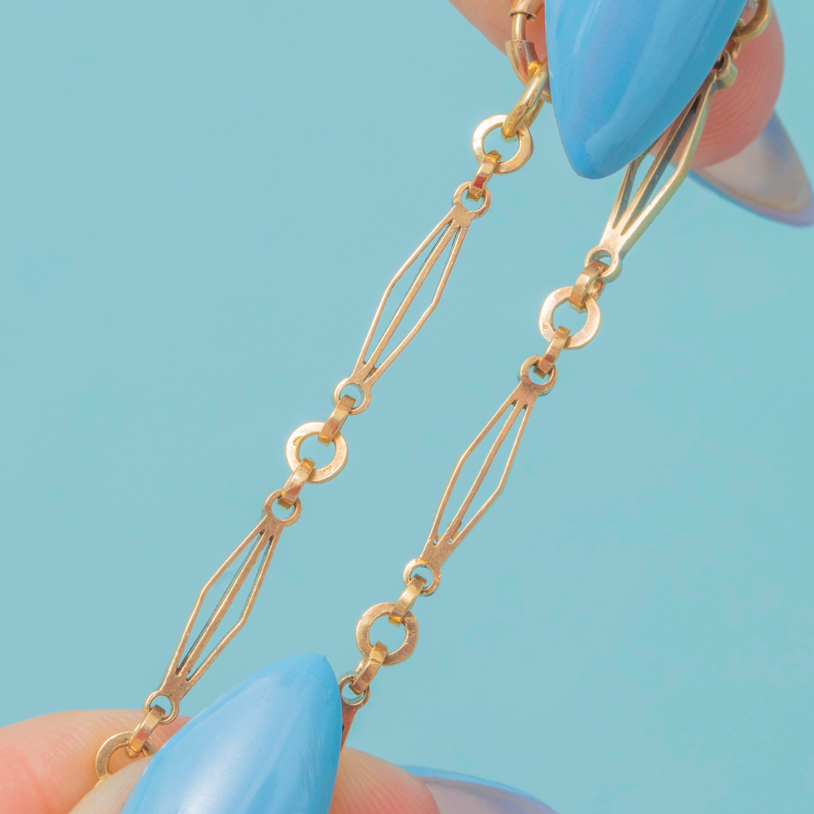 This elegant Victorian bracelet is made up of striking geometric lozenge links, crafted entirely from solid 15ct Gold and radiating a gorgeous buttery hue.