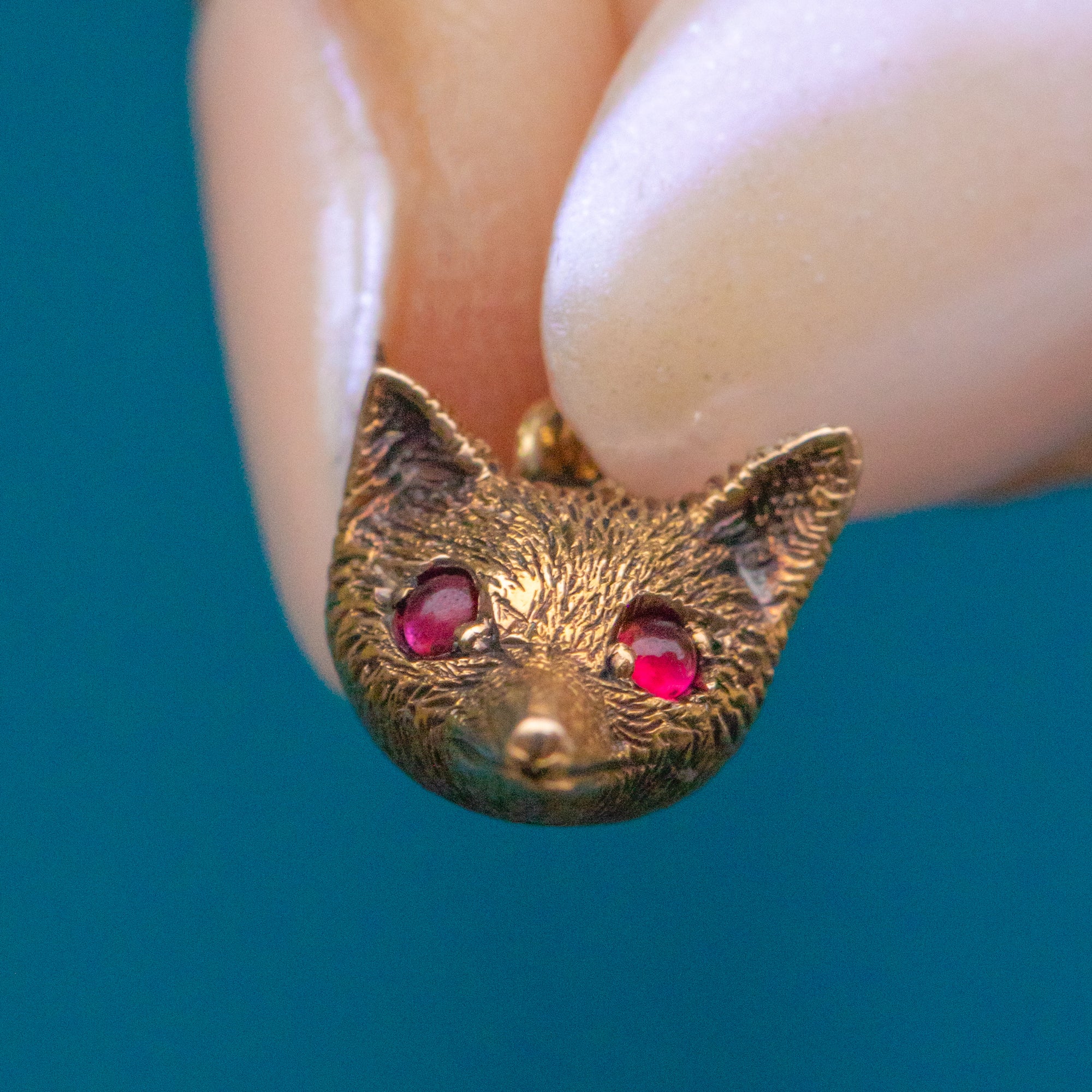 EXCELLENT. This antique 15ct Gold fox charm is in excellent condition. The Gold is saturated and the details have all remained defined, with the Paste securely set. With a securely soldered jump ring, you can enjoy this characterful Victorian Gold charm confidently suspended from a chain!