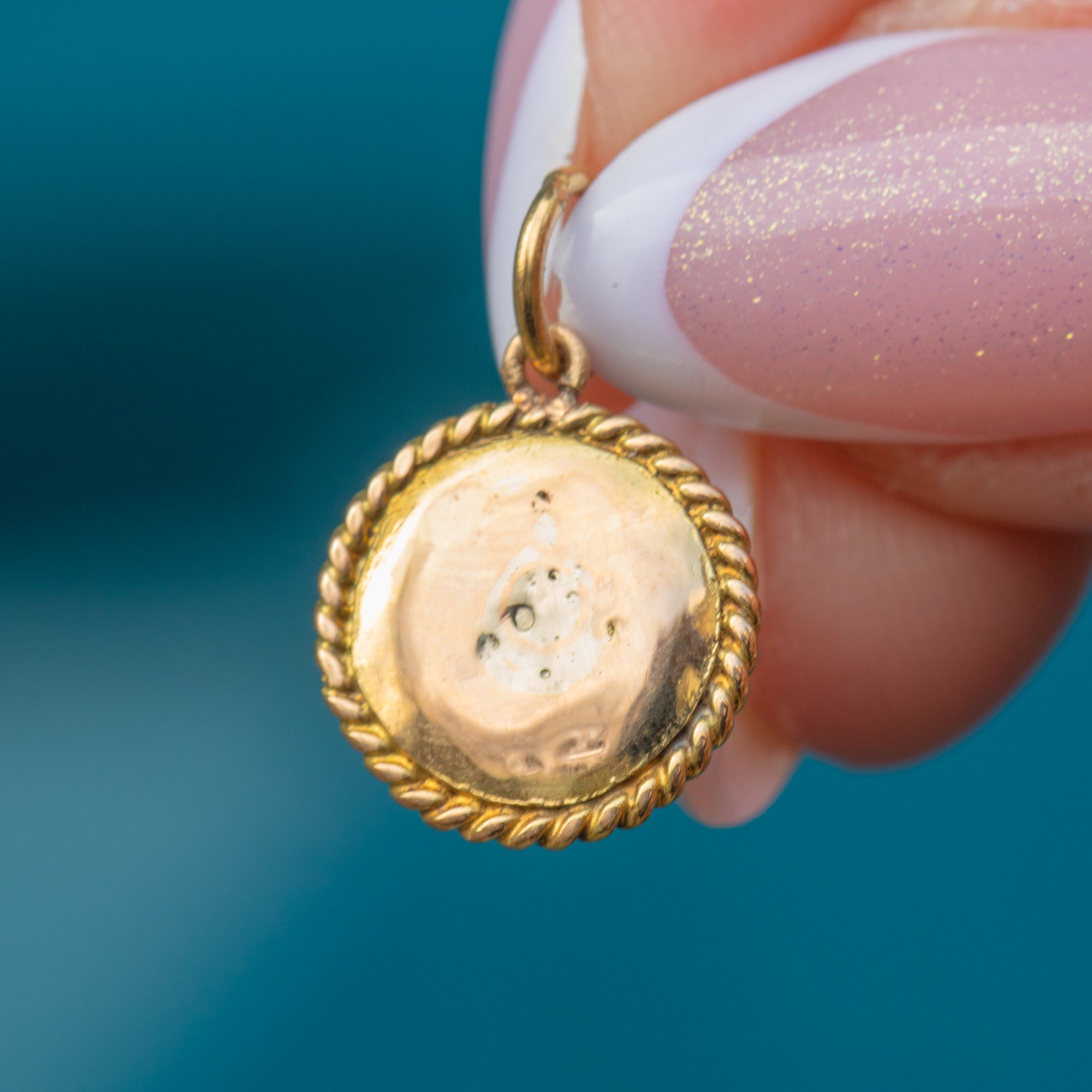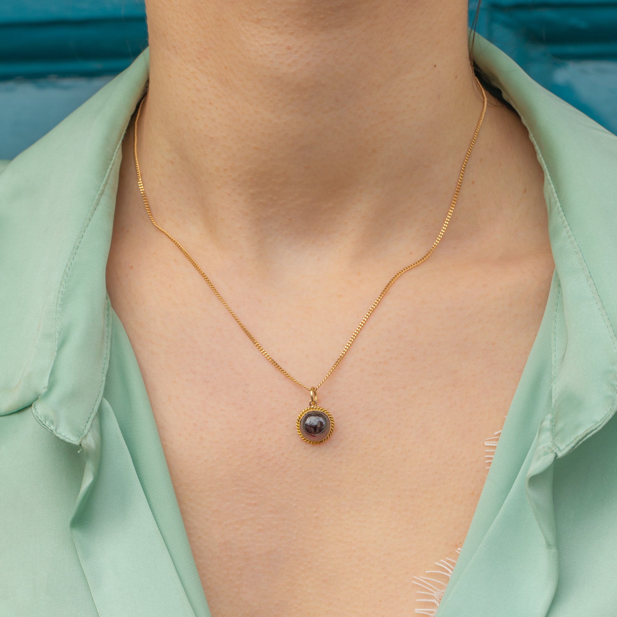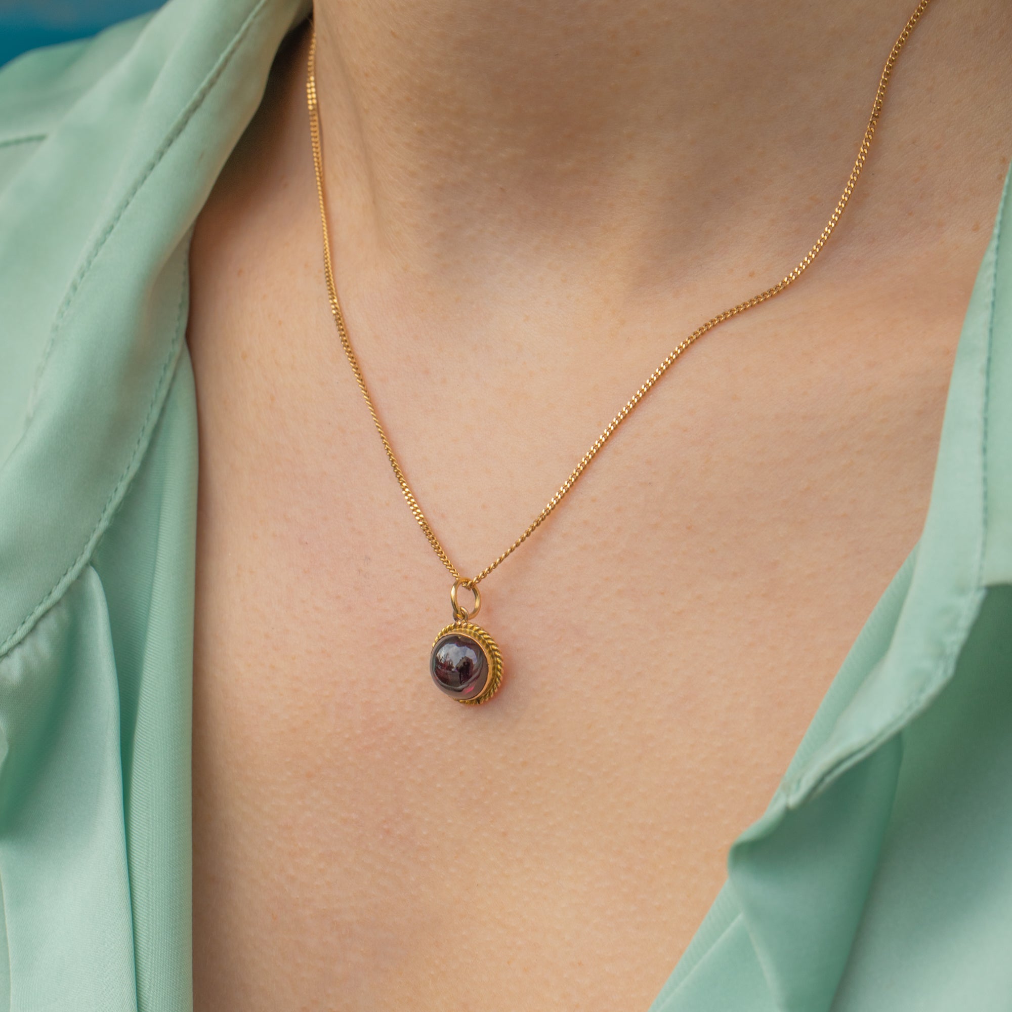 As well as securely holding her Garnet in place, her buttery Gold rope bezel setting offers a lovely warmth and depth. Complete with a secure jump ring, this Victorian Garnet charm will provide a lovely touch of antique allure to any attire!