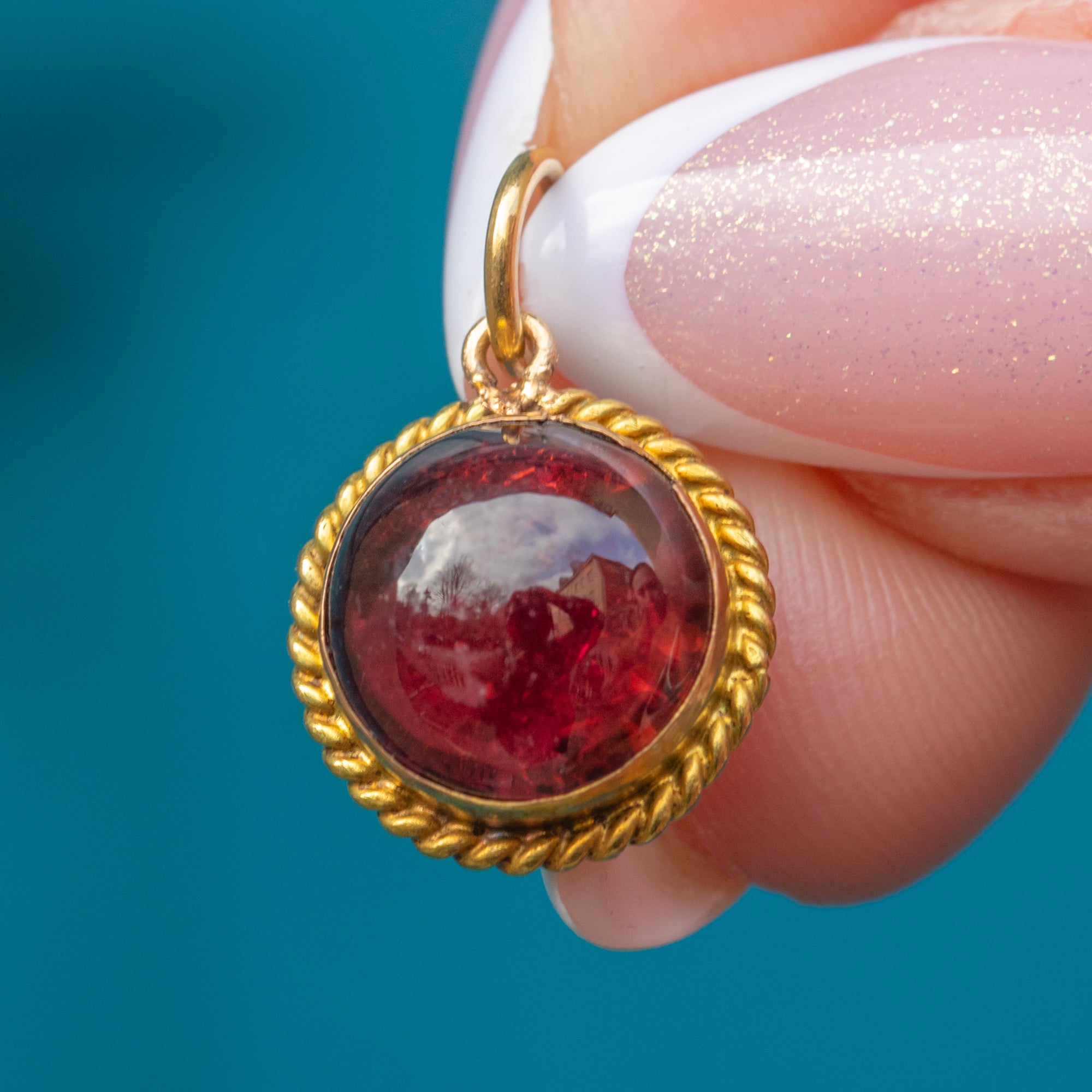 Antique 15ct Gold Garnet Cabochon Charm, 2.15ct