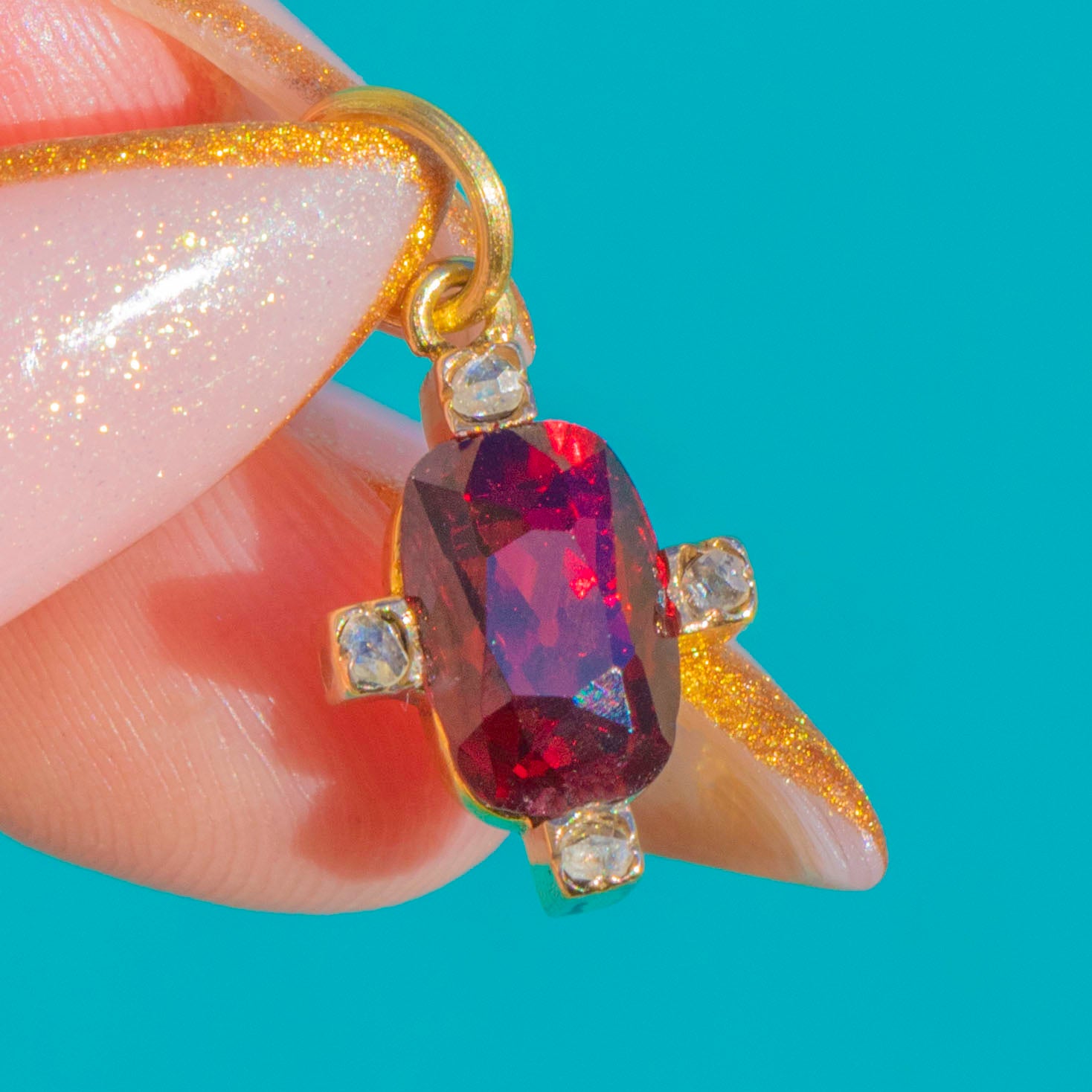 The claret-red Garnet and bright Diamonds give it that unmistakable Victorian elegance in miniature form.