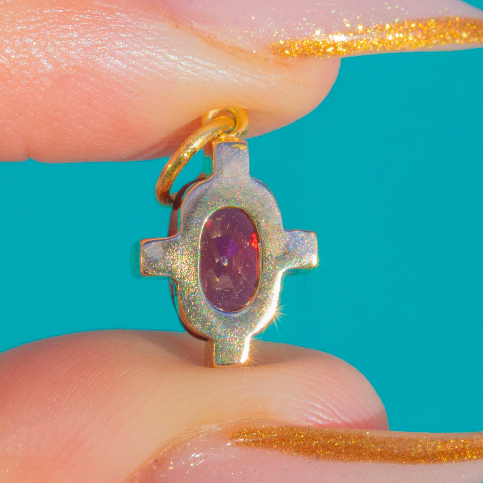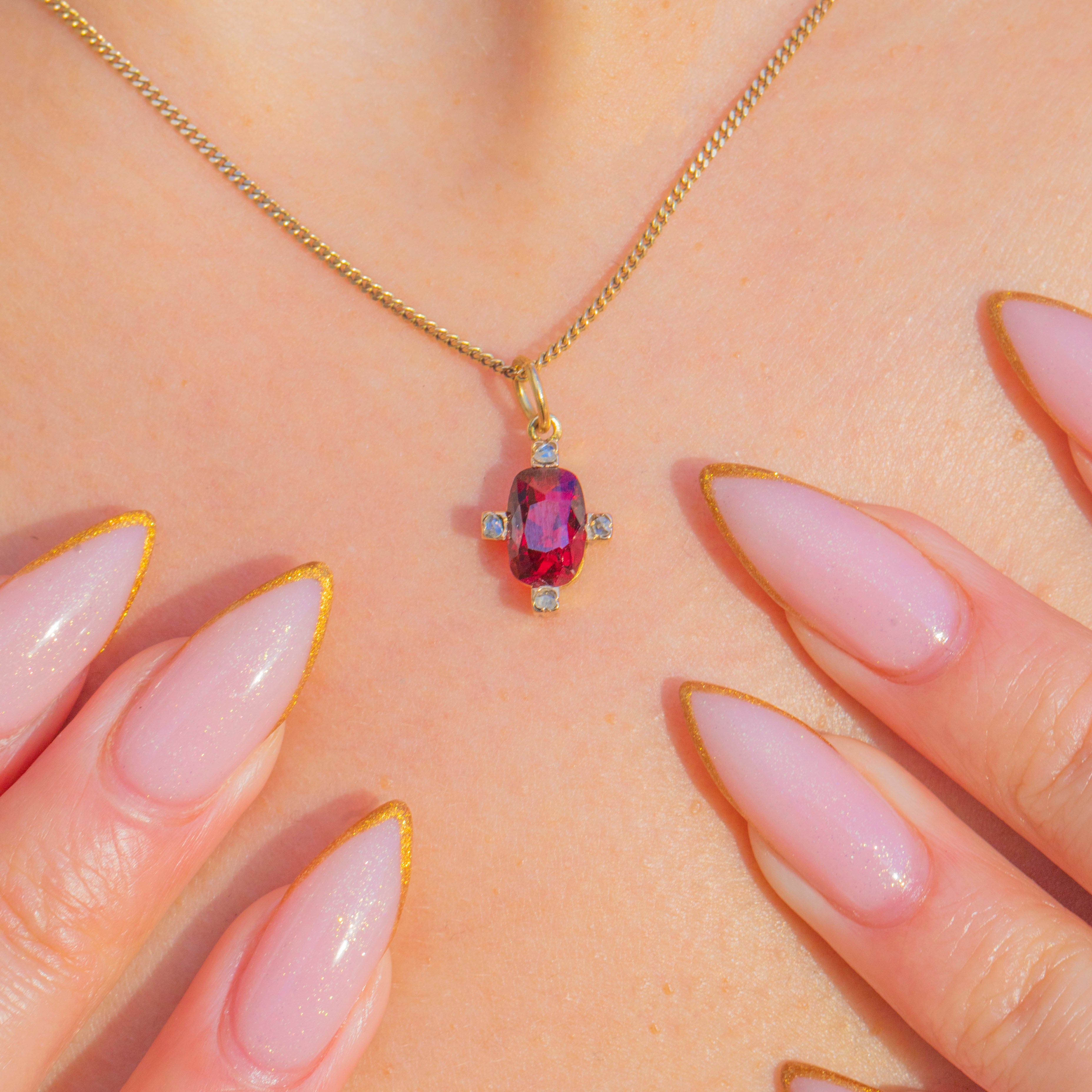 Antique 15ct Gold Garnet Diamond Cruciform Charm