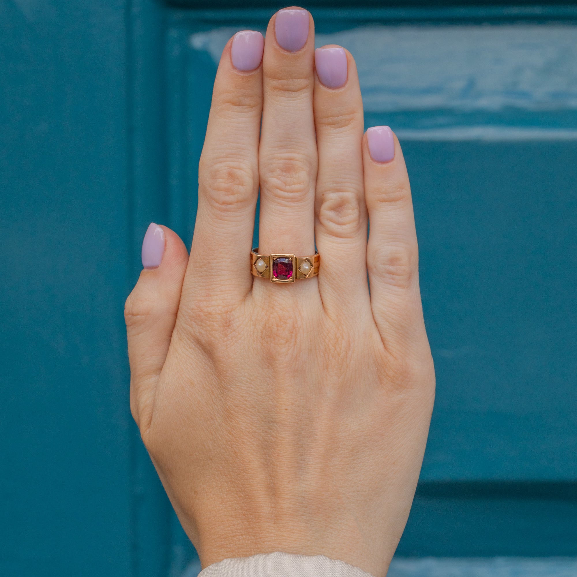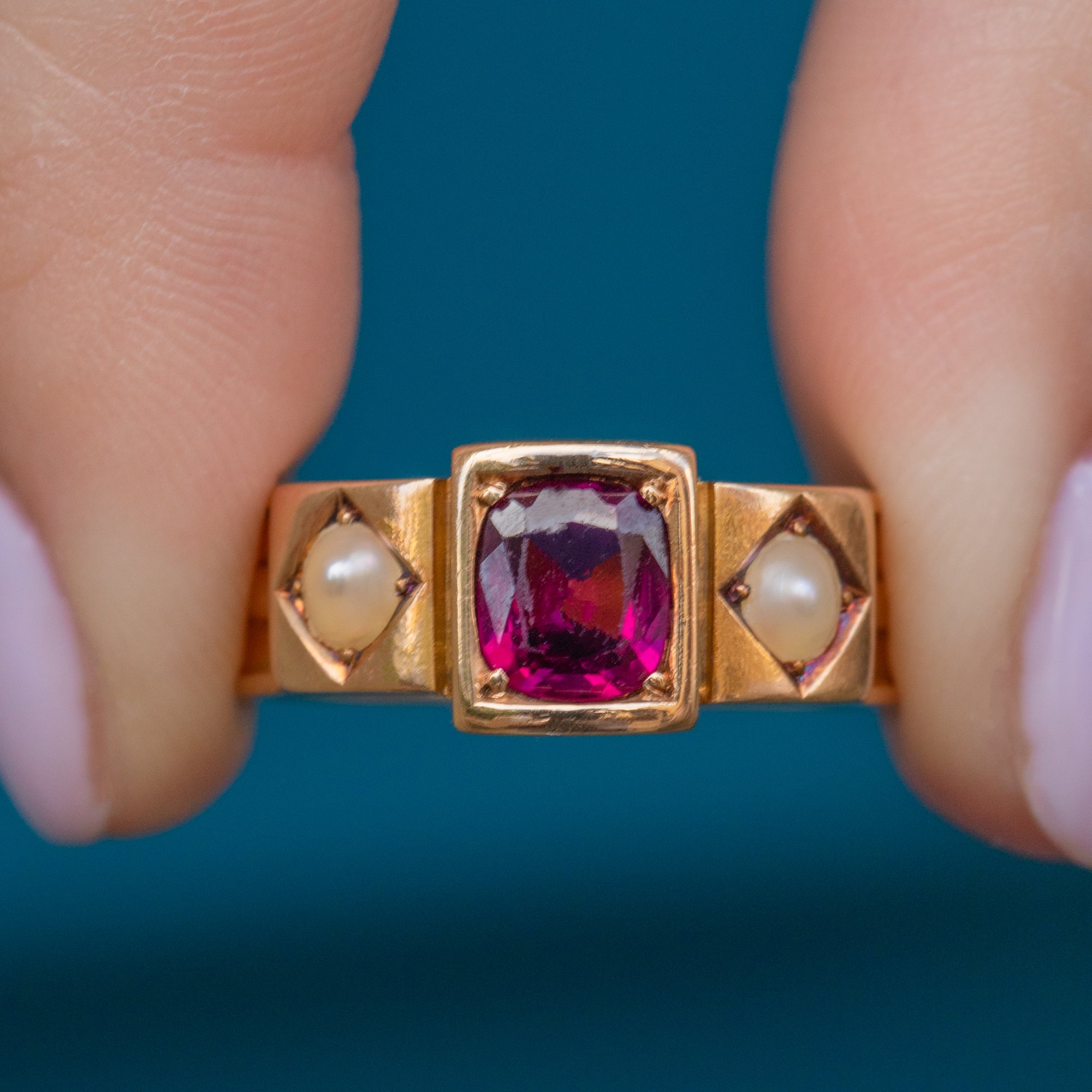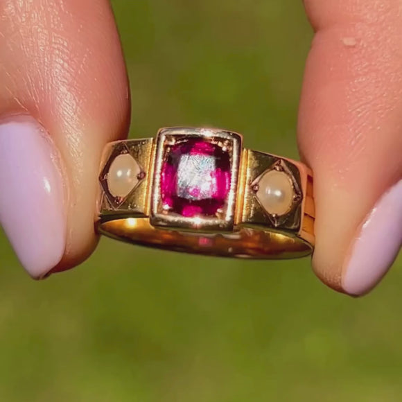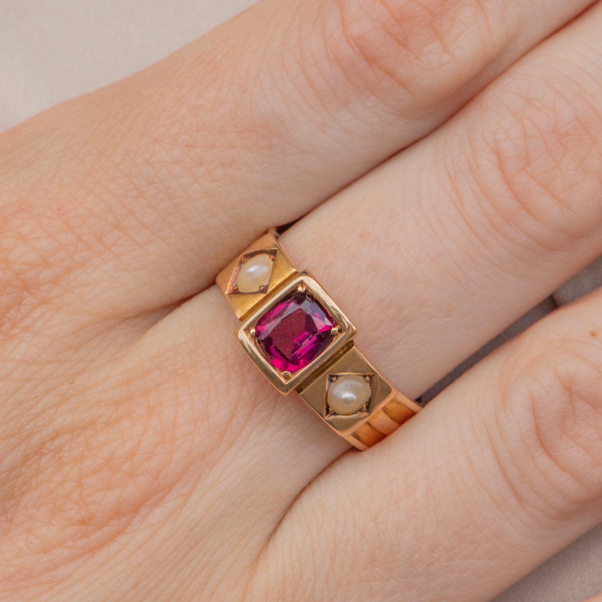 Antique 15ct Gold Garnet Pearl Ring c.1886