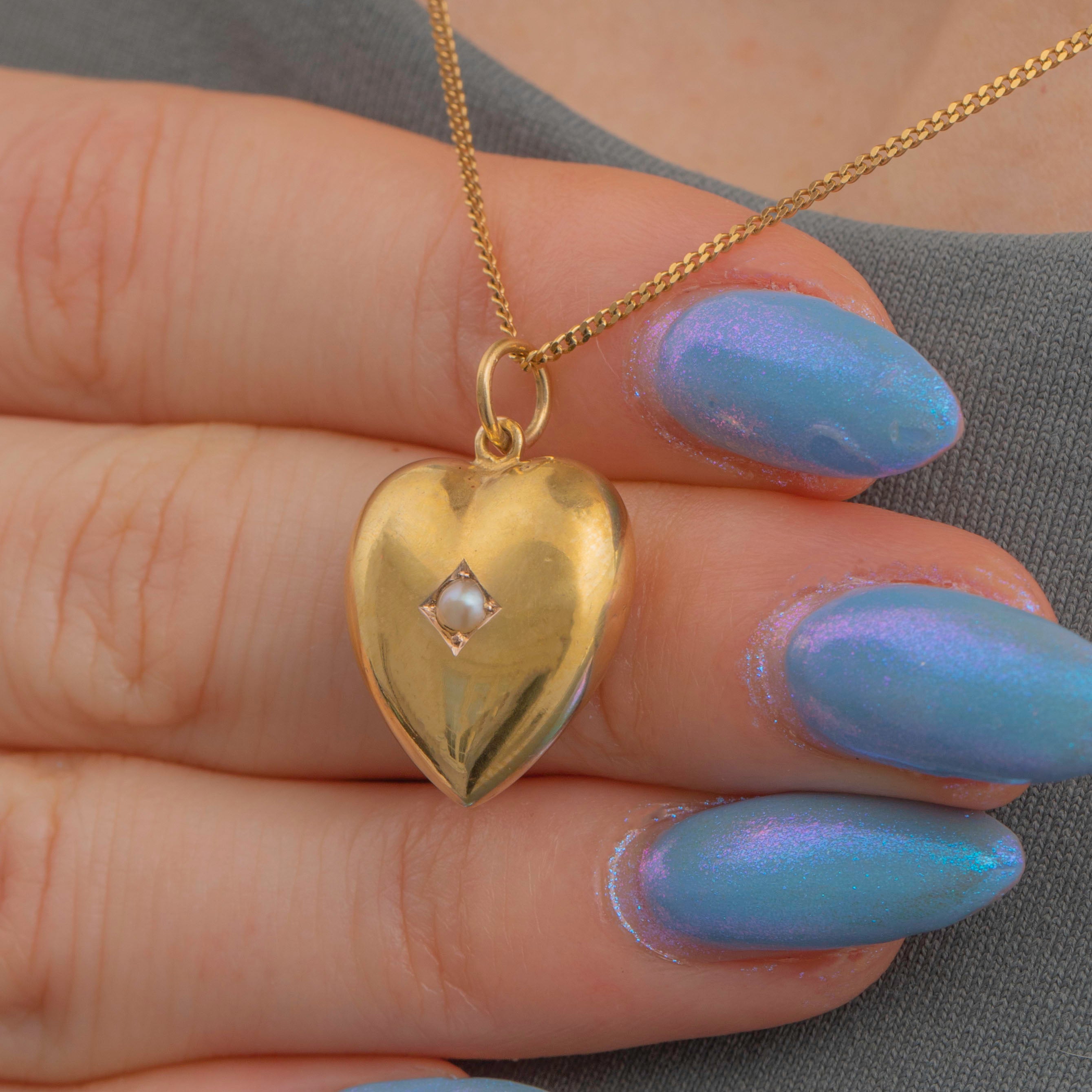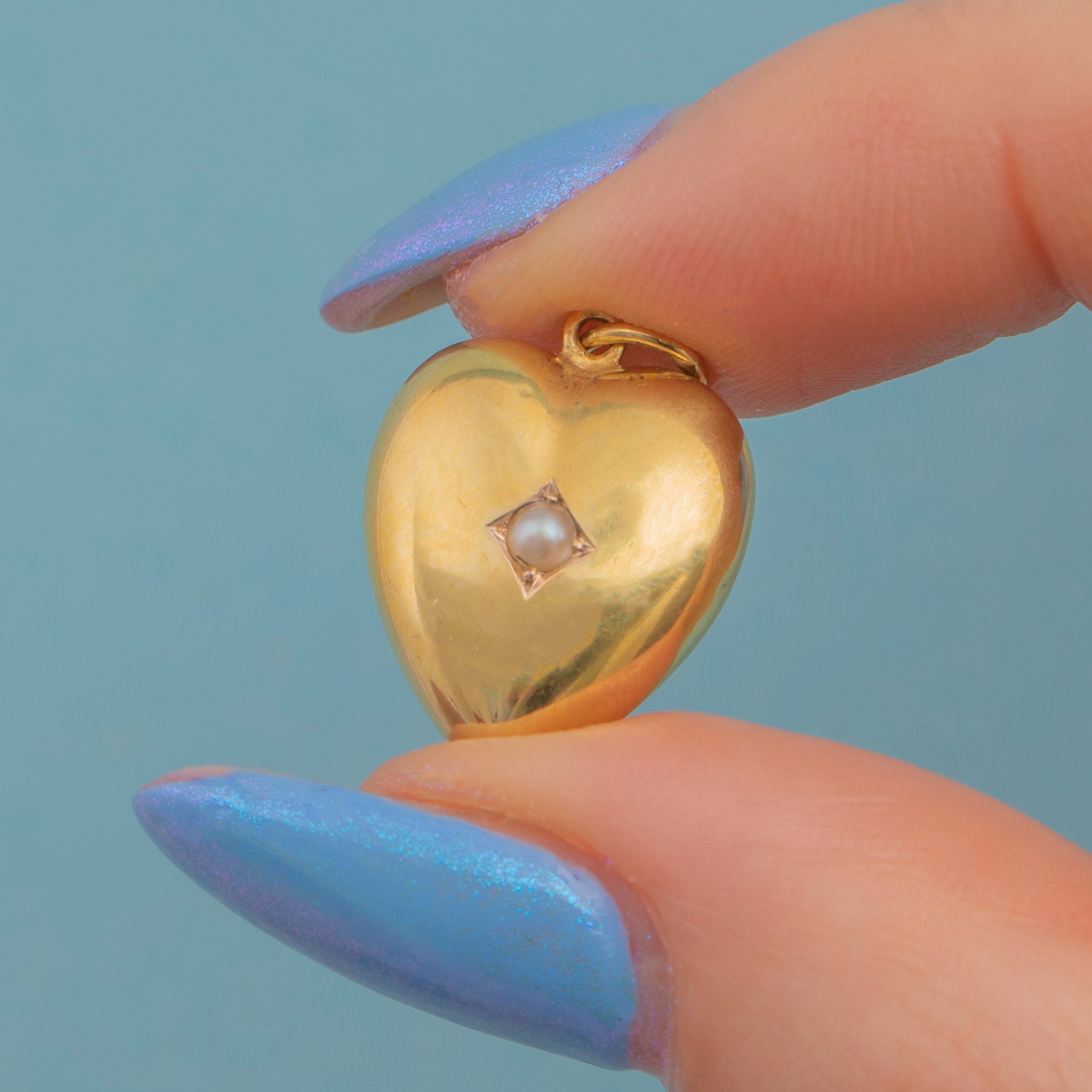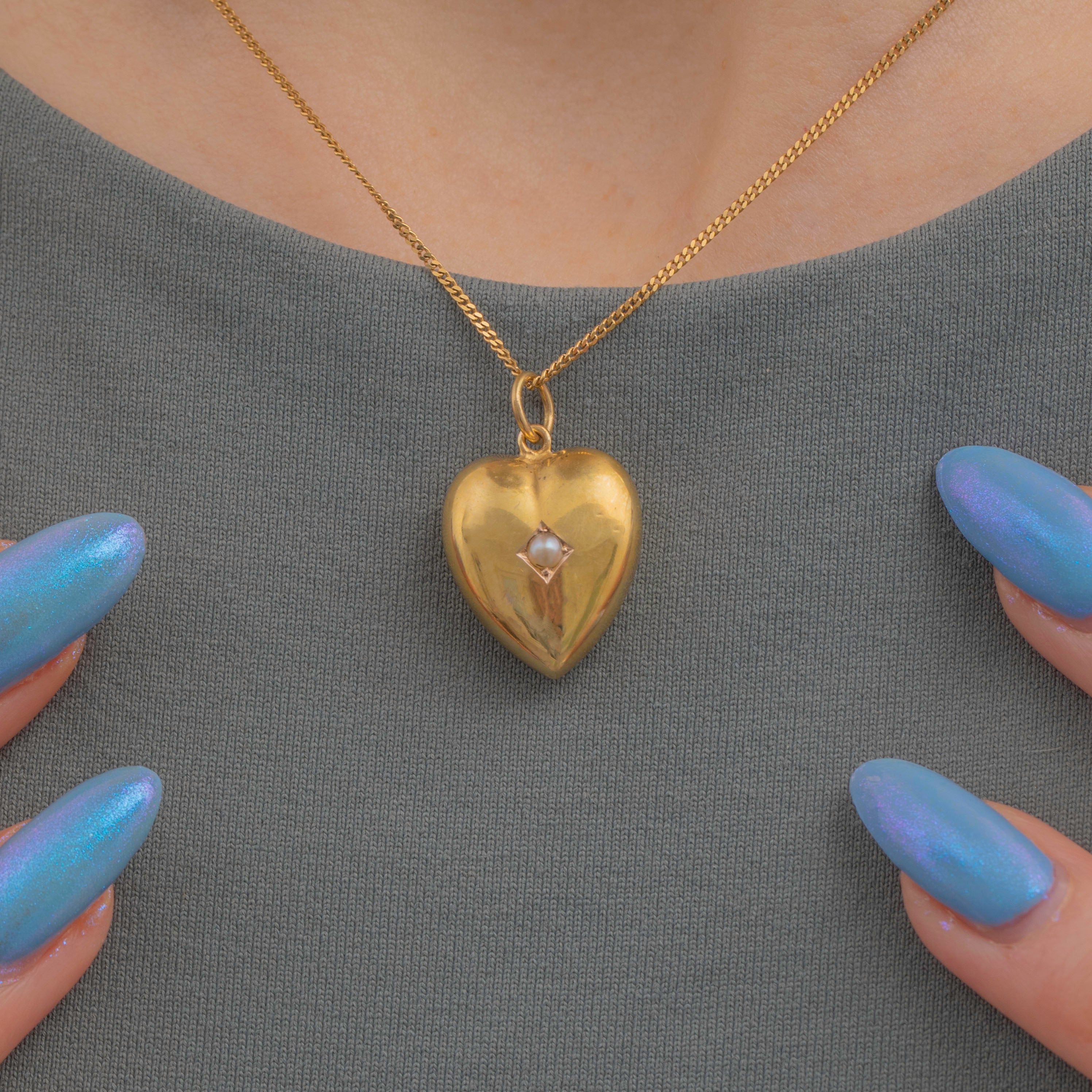 Add a touch of whimsical romance to your neck stack with this antique 15ct Gold Pearl puffy heart pendant.