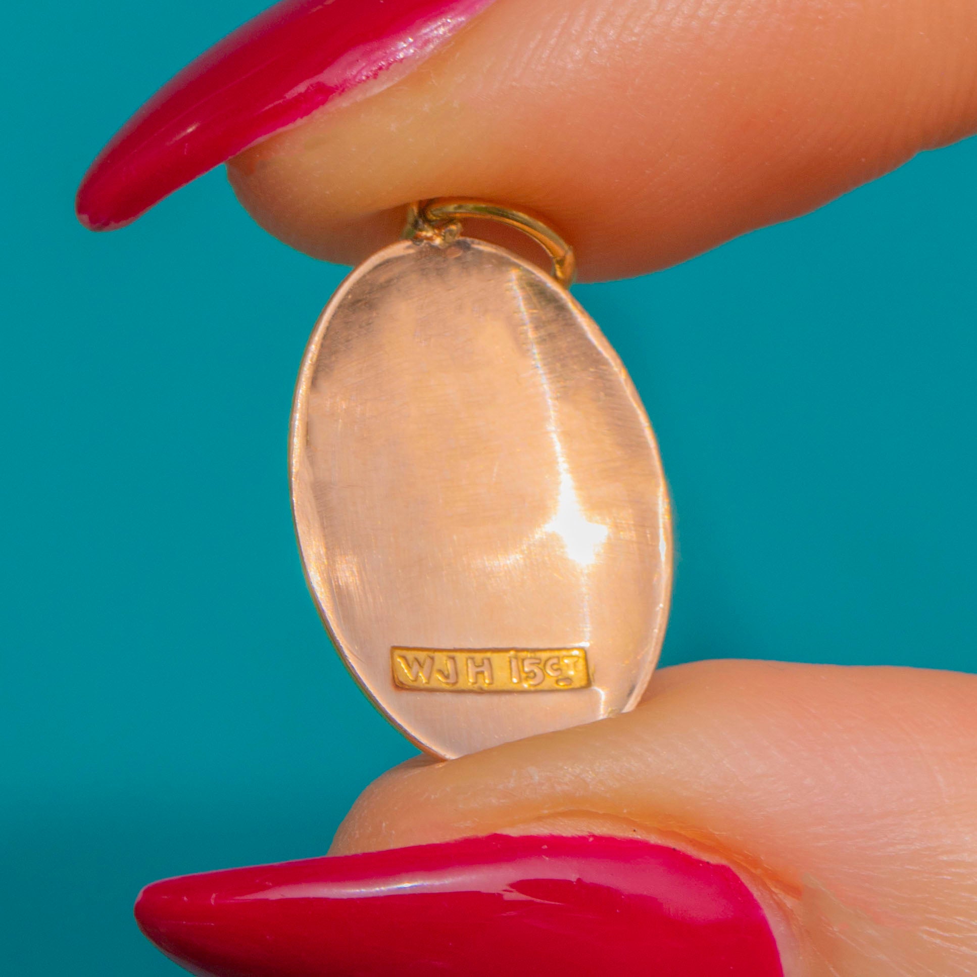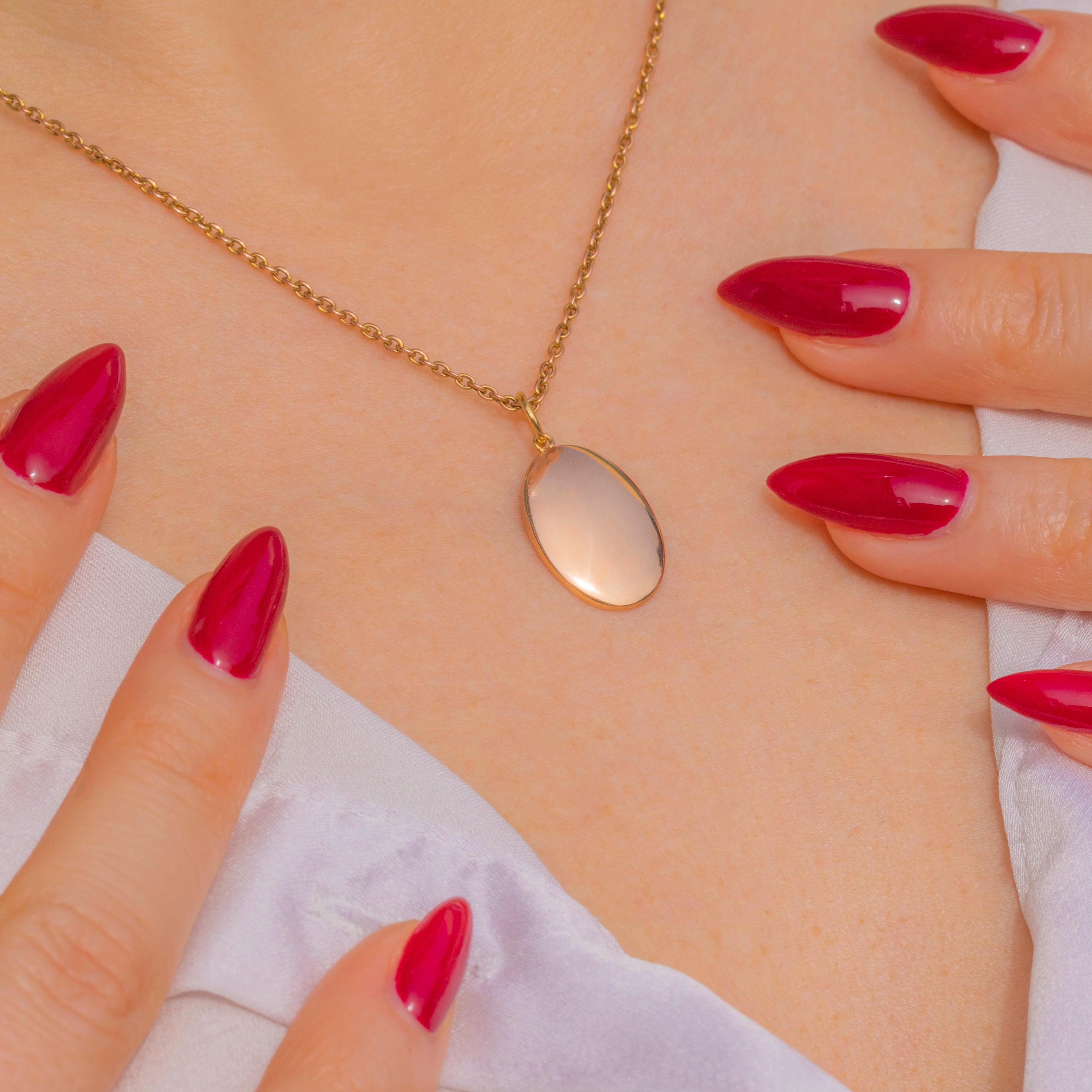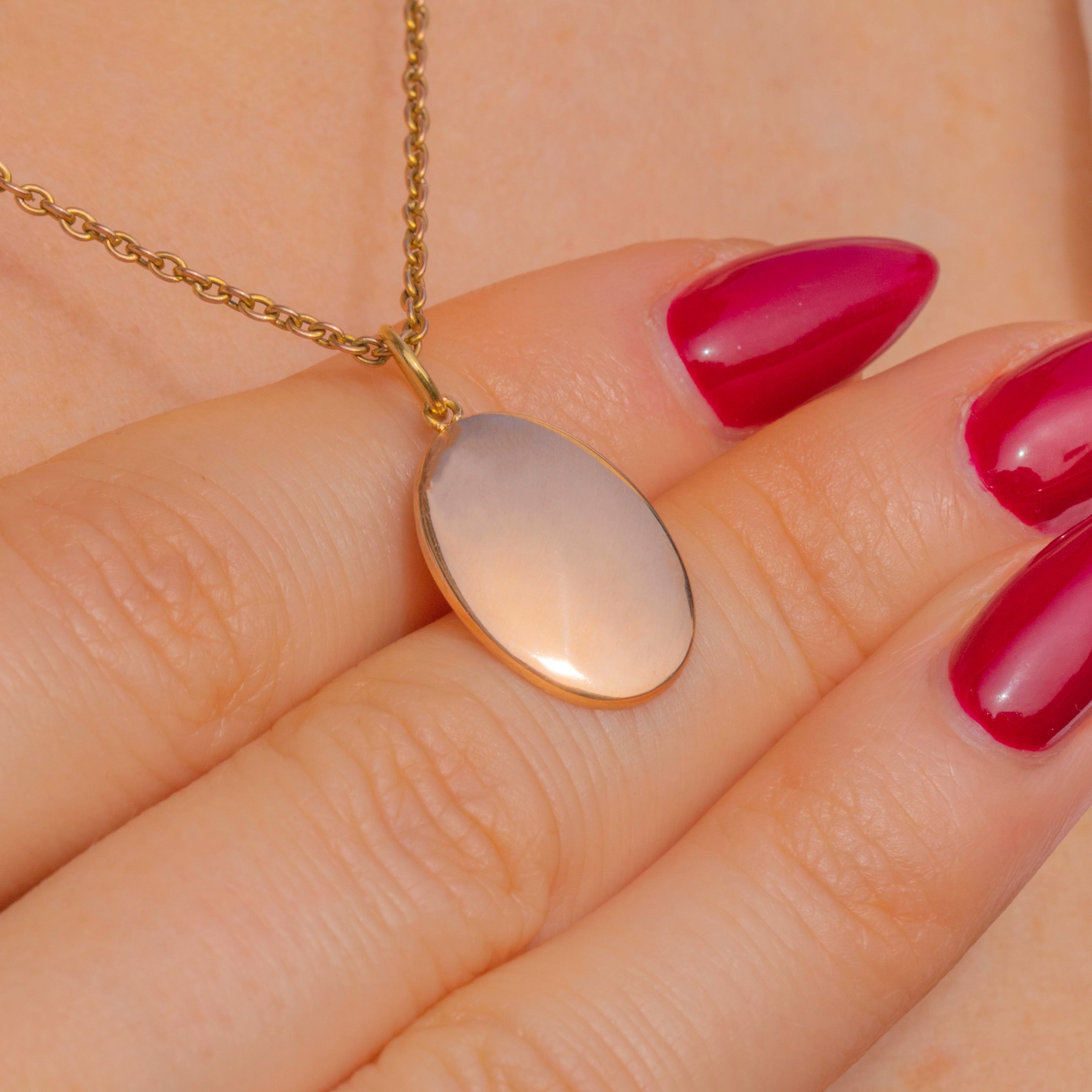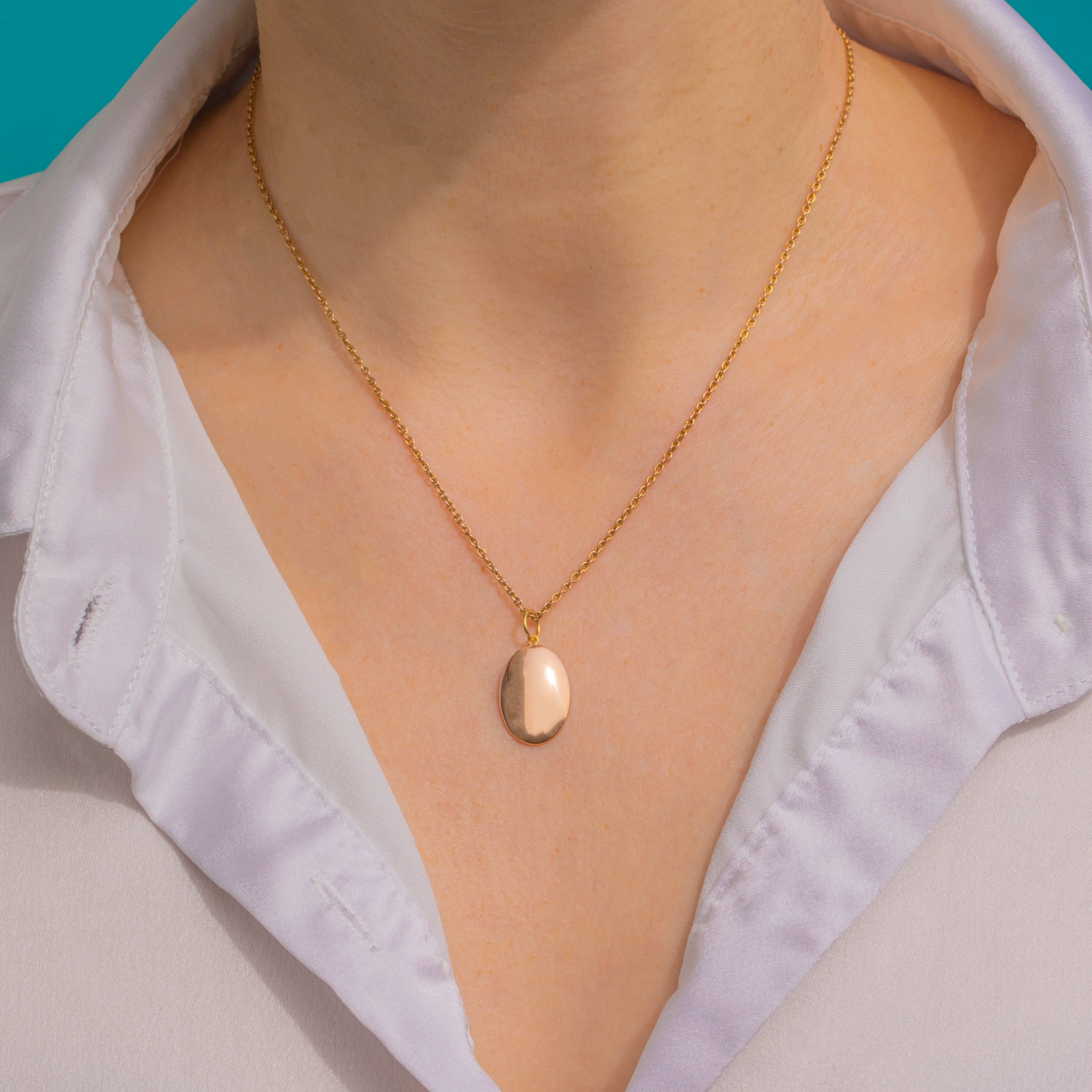 A dainty Victorian 15ct Gold domed disc charm with an elegant, gently convex oval silhouette. Its softly rounded profile and high-polished glow give a refined, minimalist feel that slips seamlessly into any jewellery curation.
