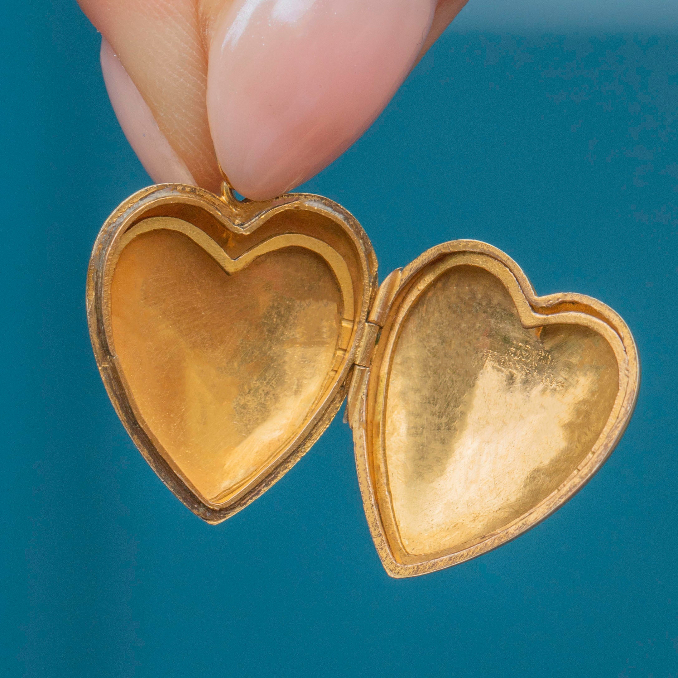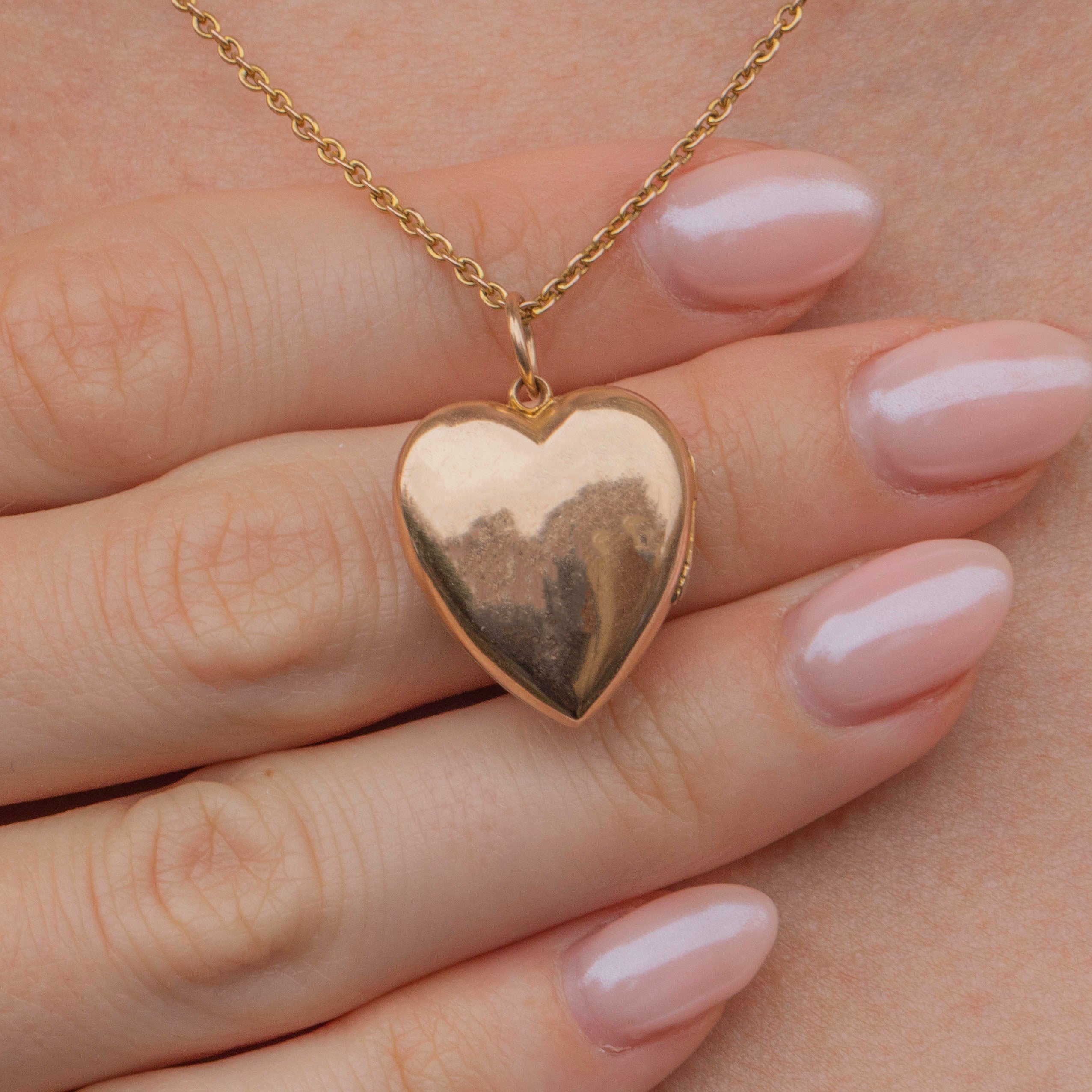 VERY GOOD. A beautiful 15ct Gold puffy heart locket in lovely condition. Although she flaunts a couple of dings to the exterior of the piece, her 15ct Gold has a mouthwatering sun-kissed hue with wonderful reflective qualities. To the inside there is some darkening to the edge of the hearts but she homes two frames allowing you to keep the contents safely inside, and her doors shut with a firm click. This antique heart locket provides a taste of the beauty of Victorian history!