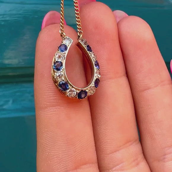 Antique 15ct Gold Sapphire Diamond Horseshoe Integral Necklace