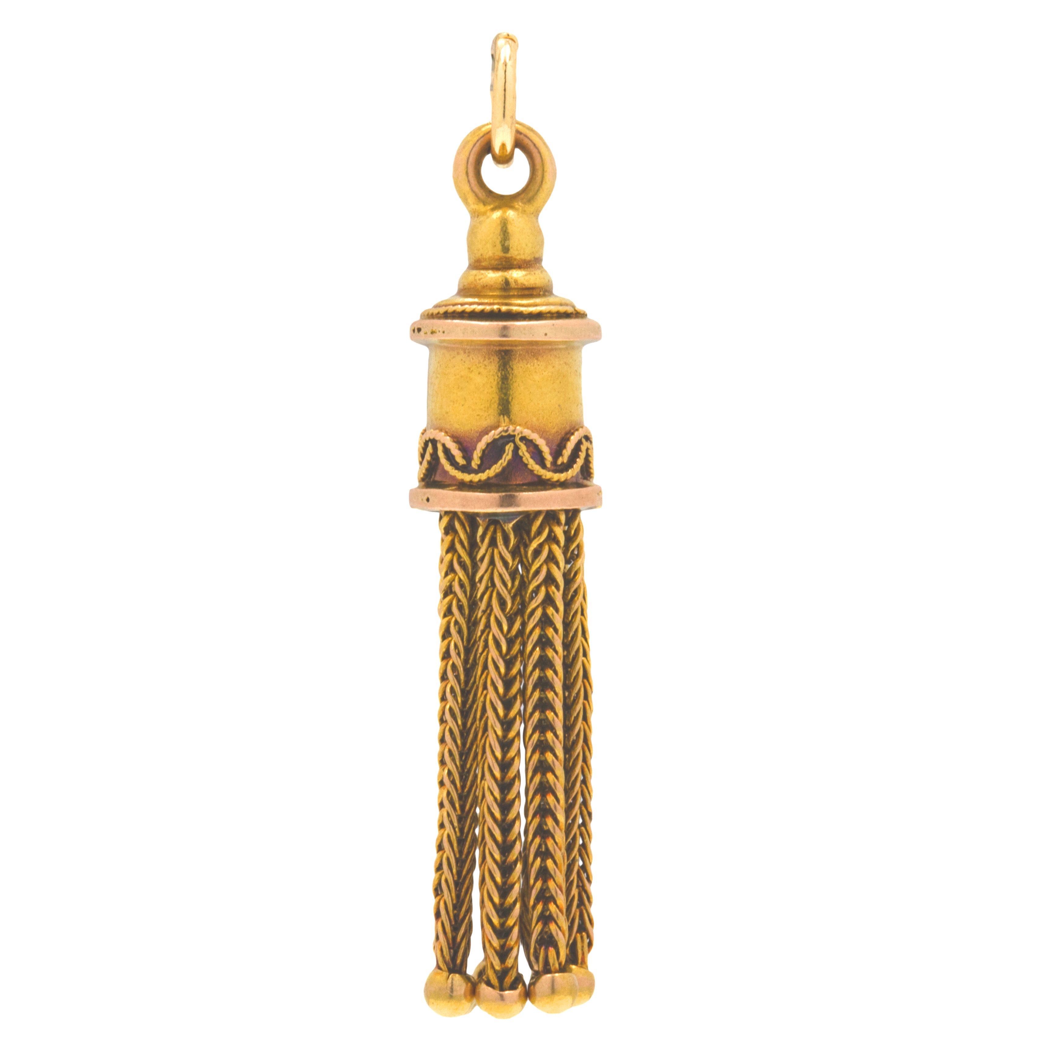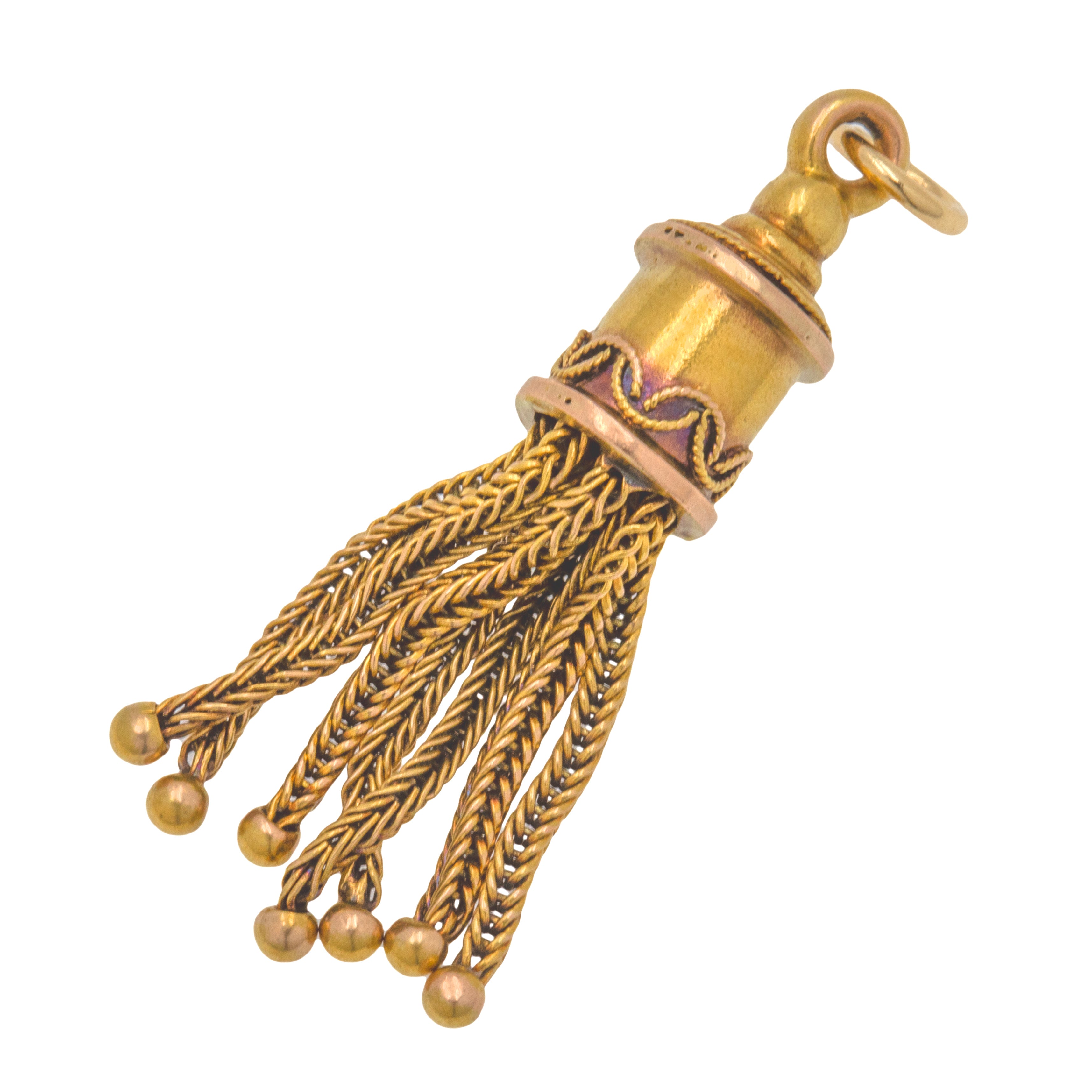 MATERIALS: Tests as 15ct Gold tassel with 18ct Gold jump-ring.