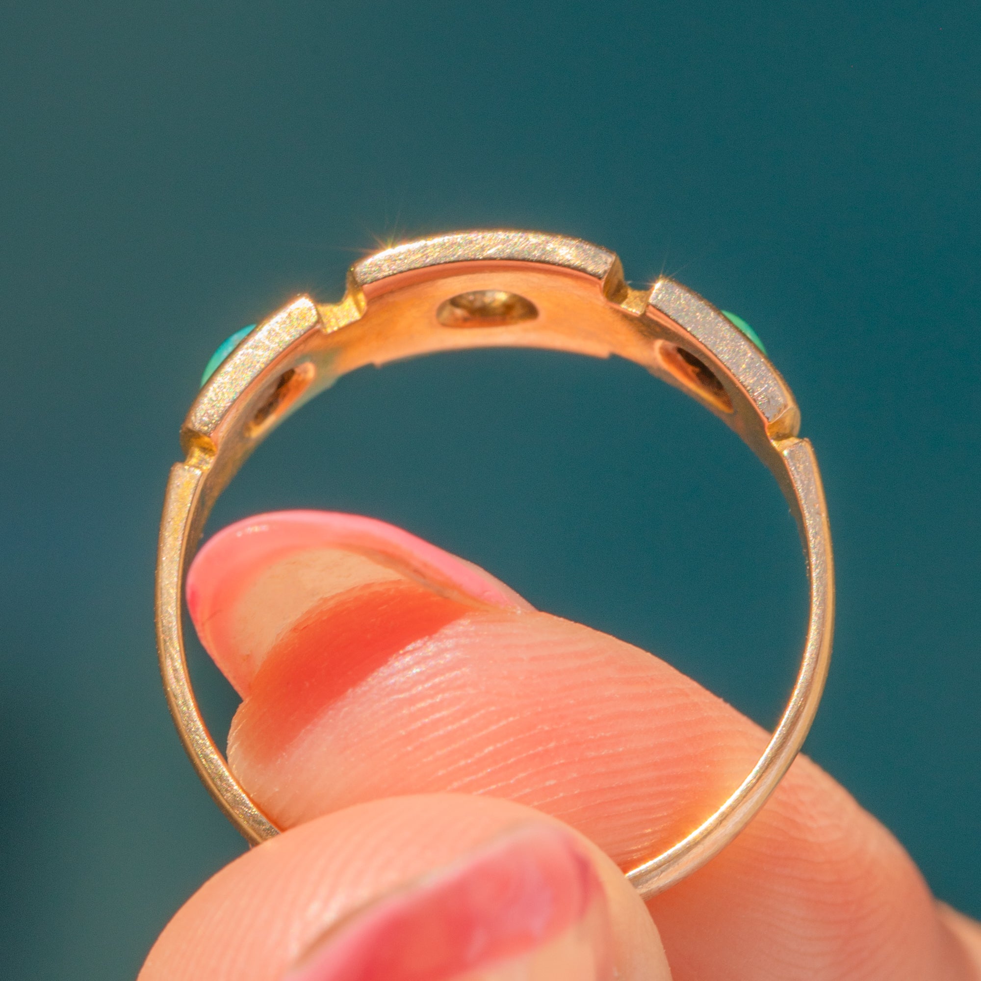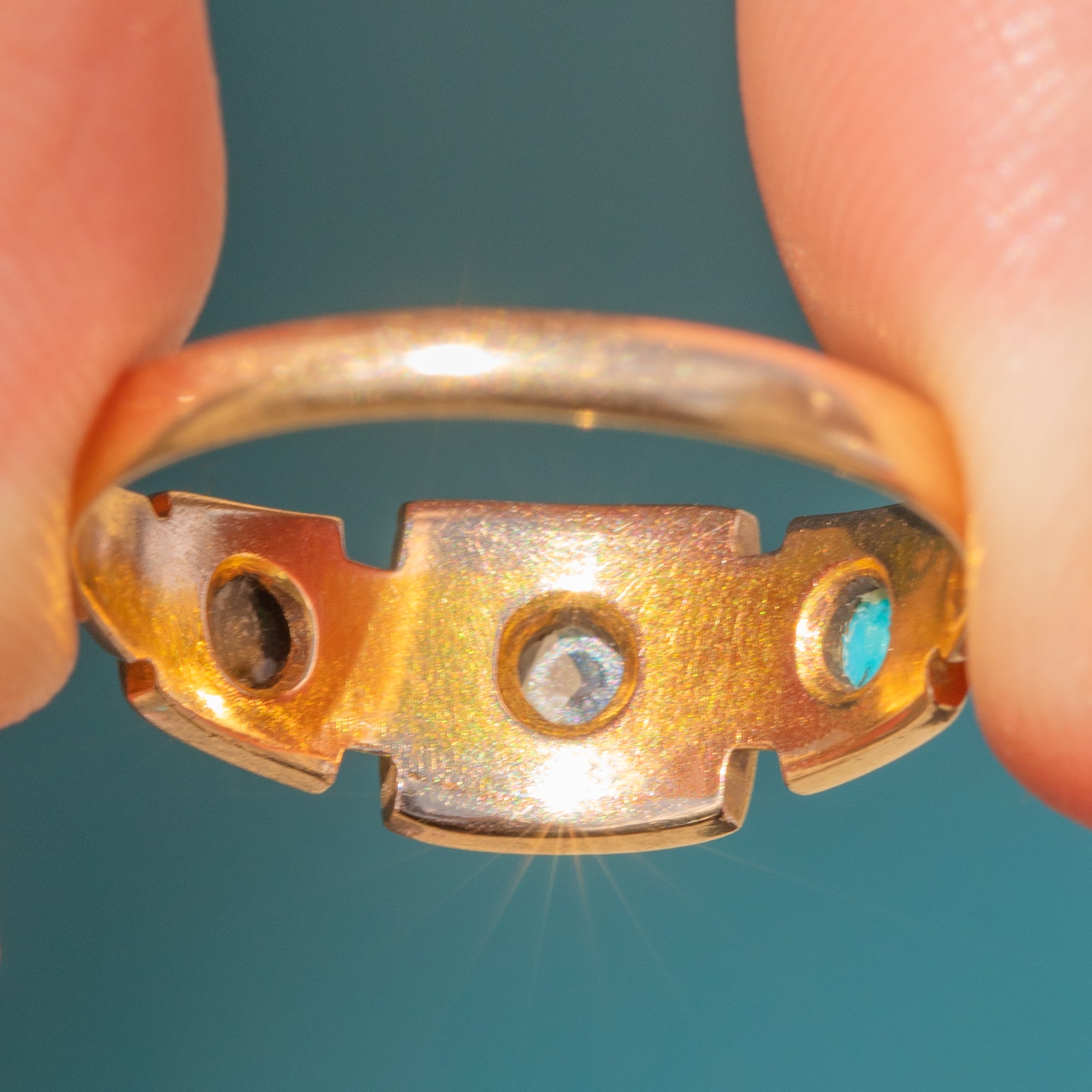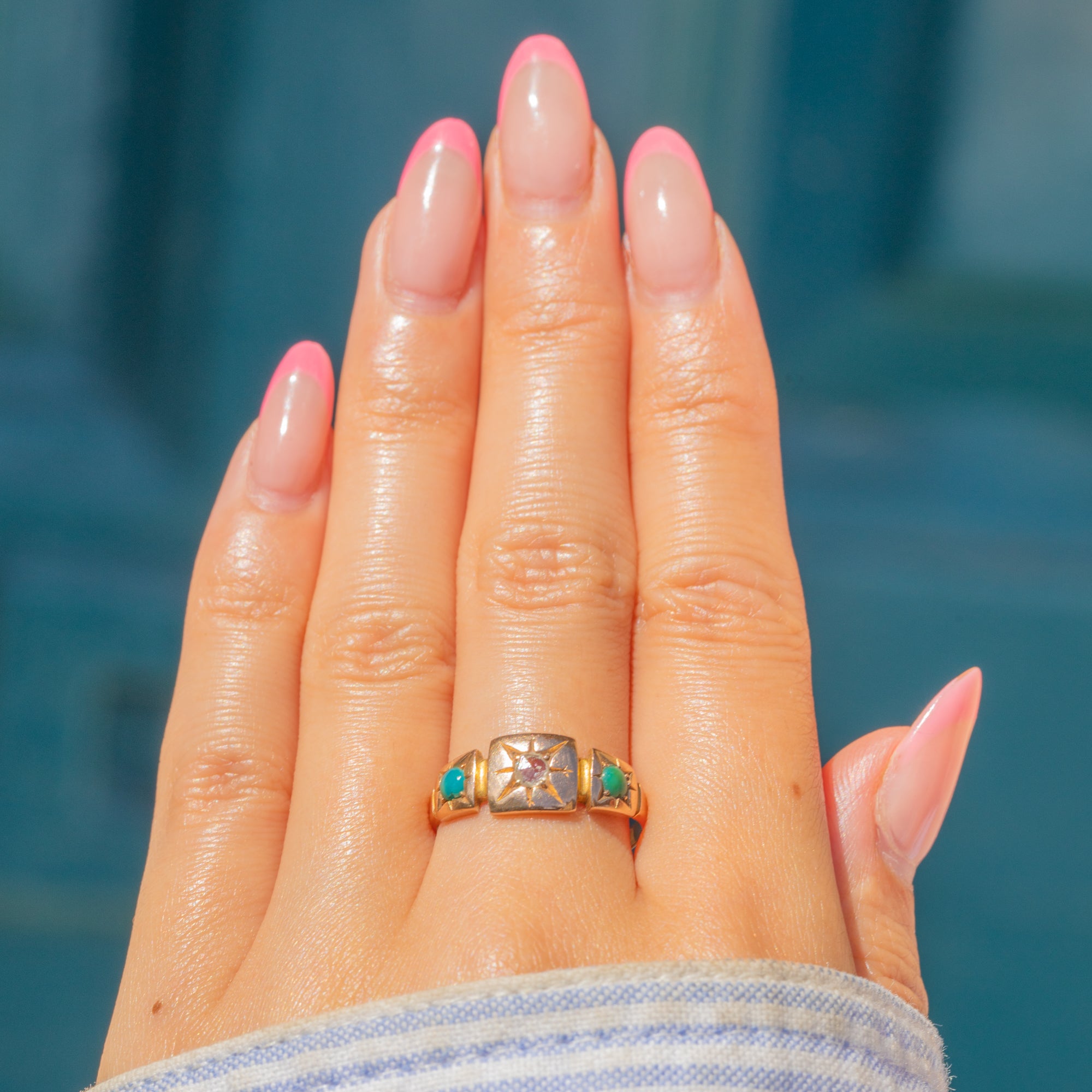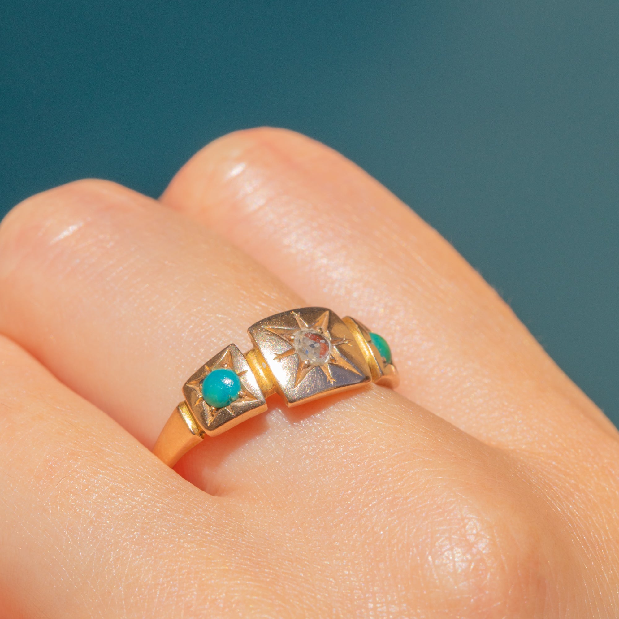Antique 15ct Gold Turquoise Diamond Star Set Gypsy Ring c.1900