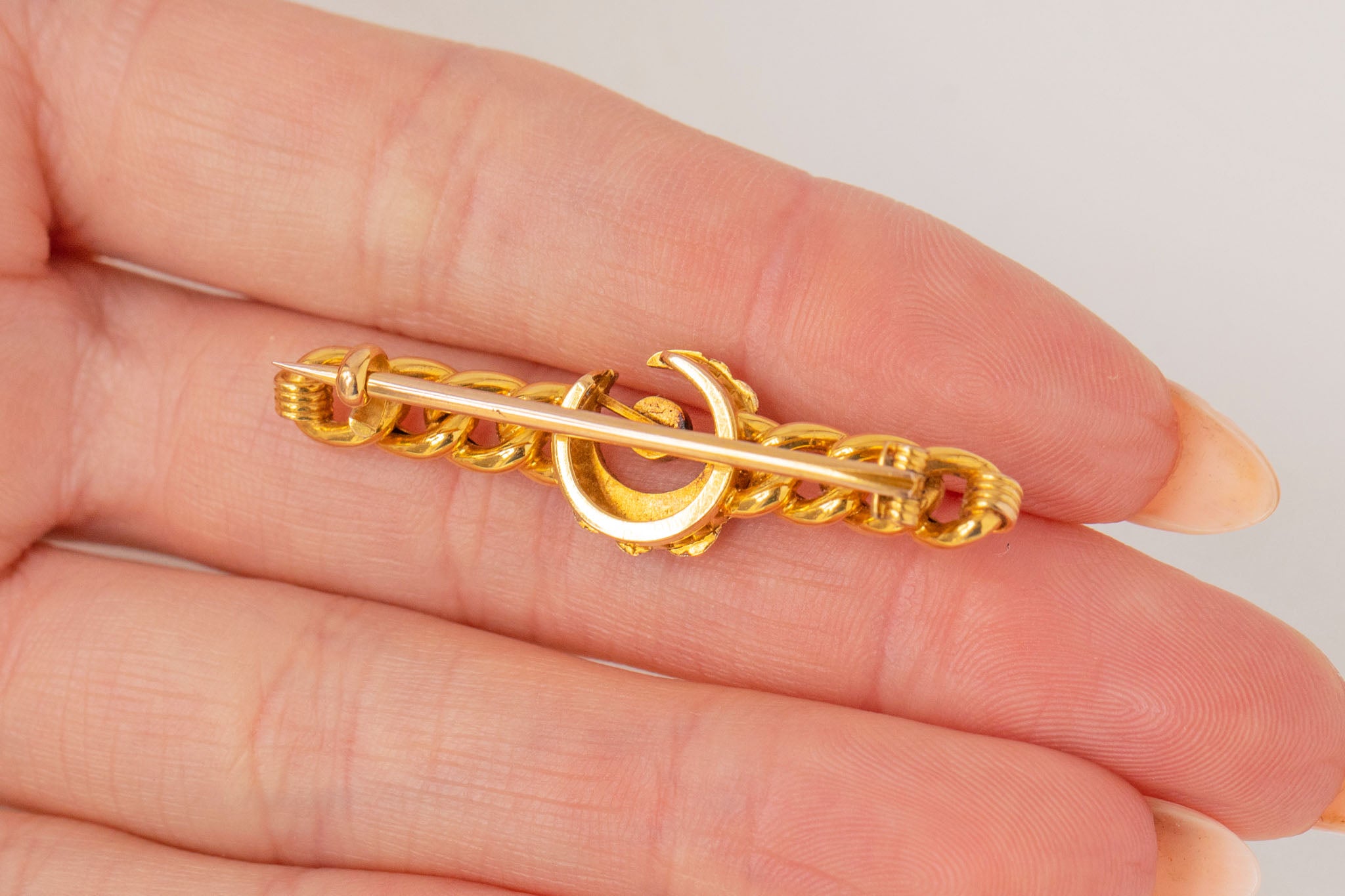 Antique 15ct Gold Turquoise Pearl Crescent Moon Bar Brooch