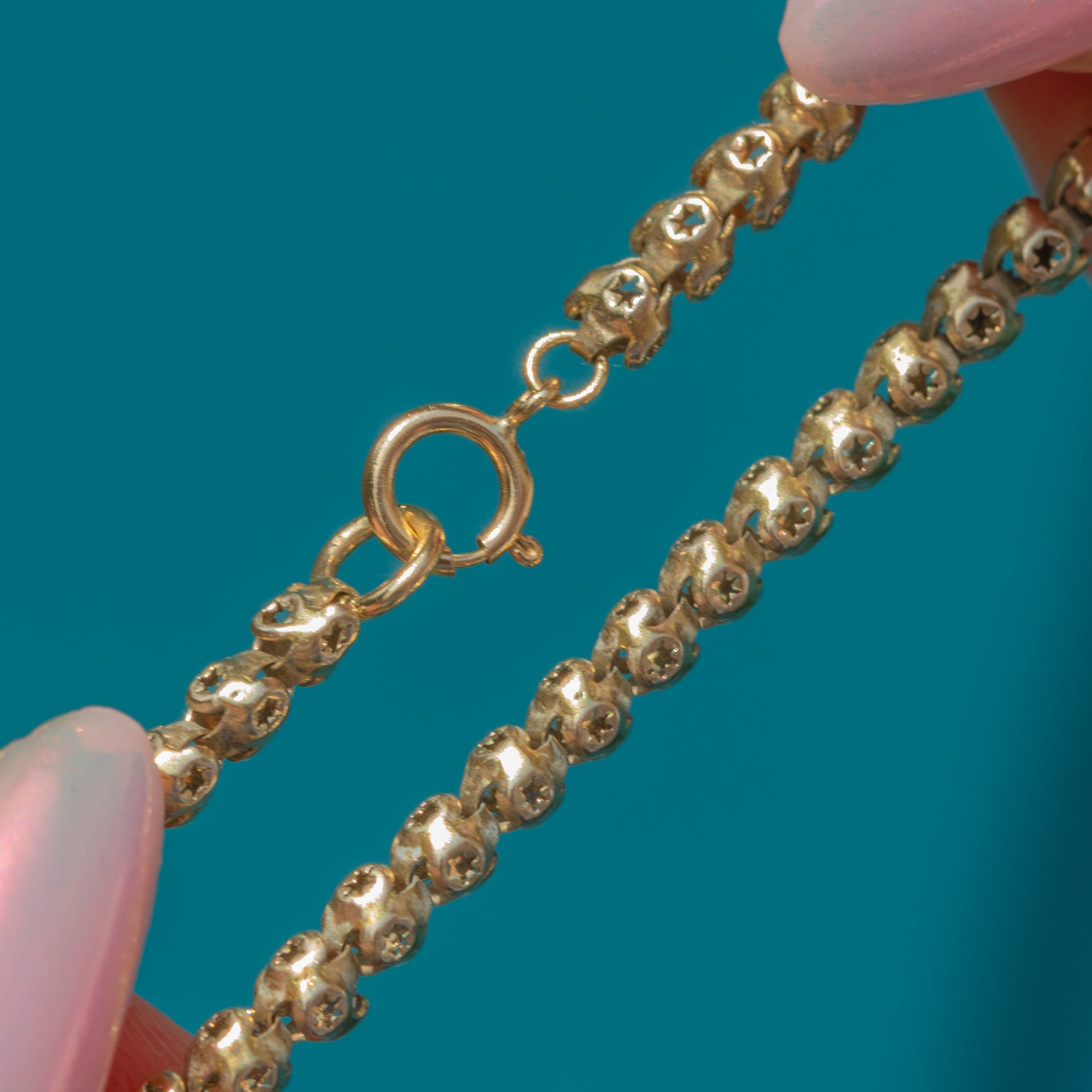 Antique 16" Gold Cased Pierced Star Link Chain