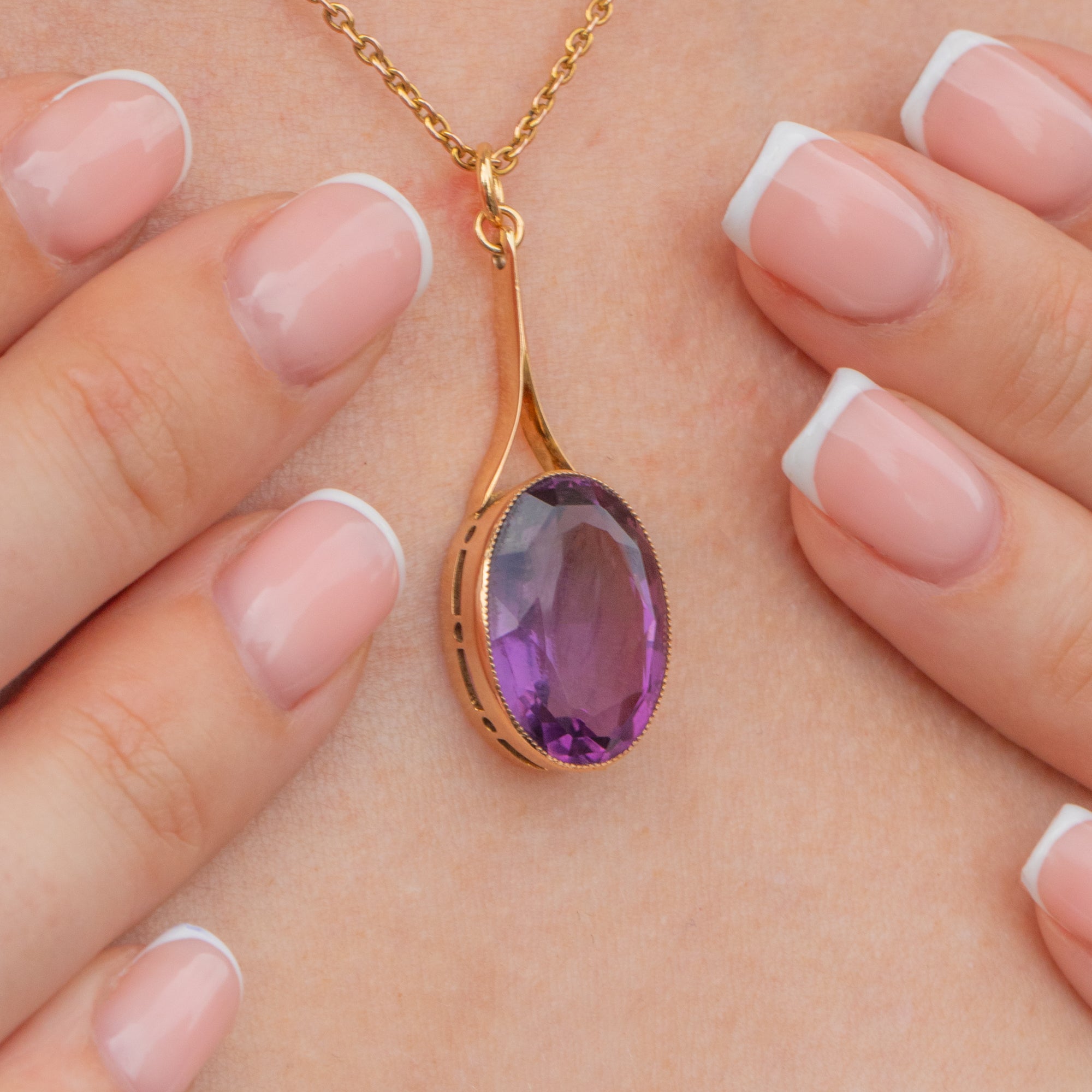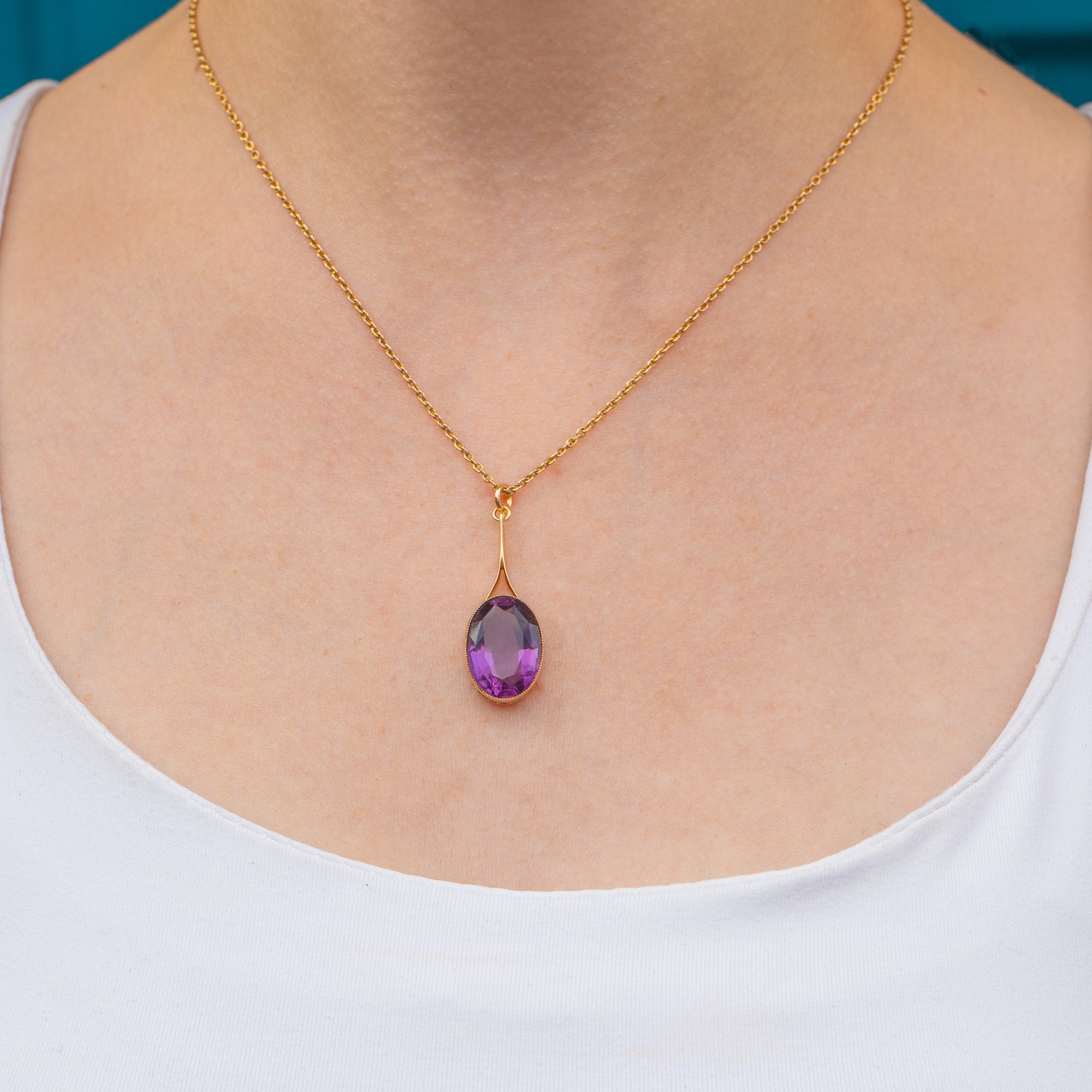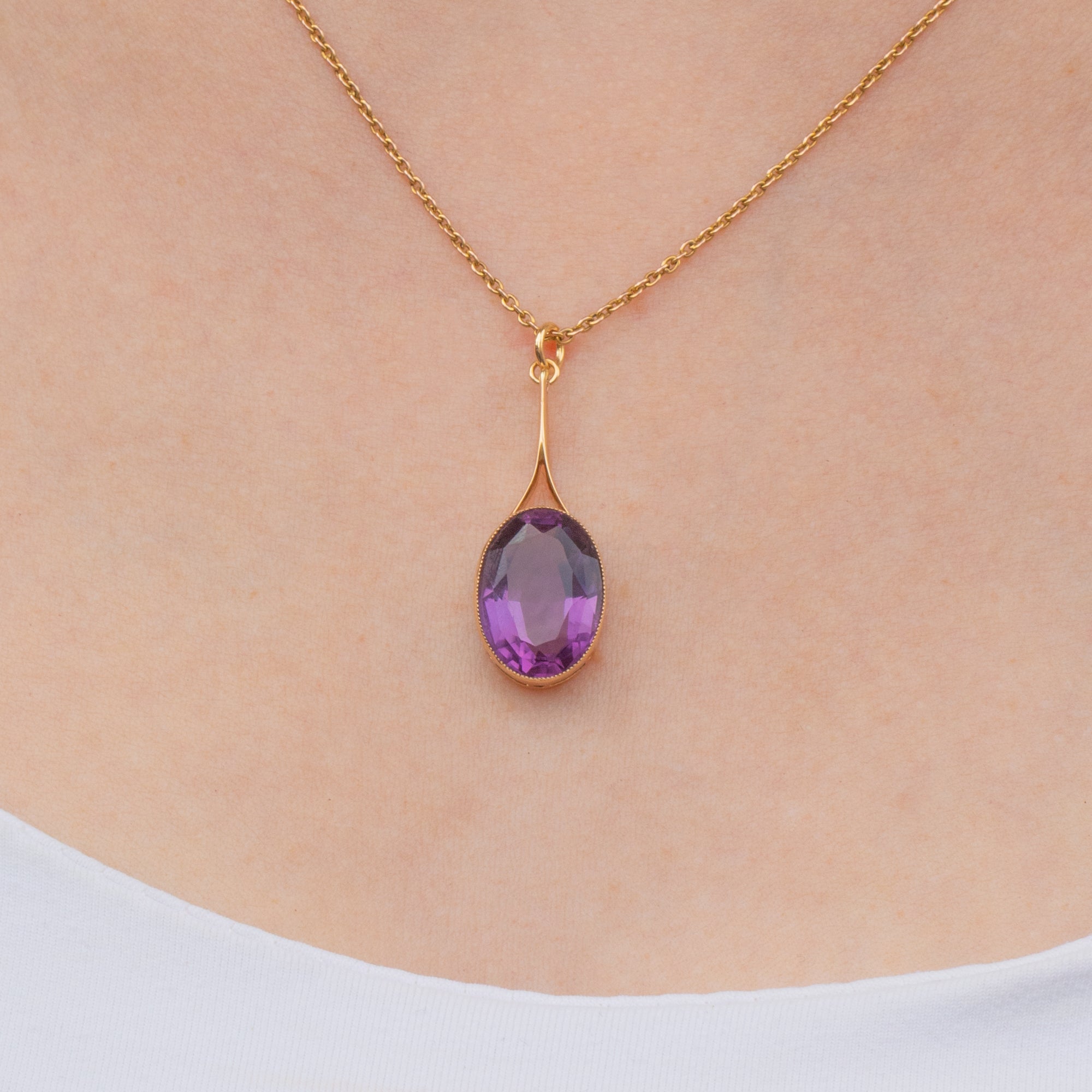 Antique 18ct Gold Amethyst Oval Drop Pendant, 6.35ct
