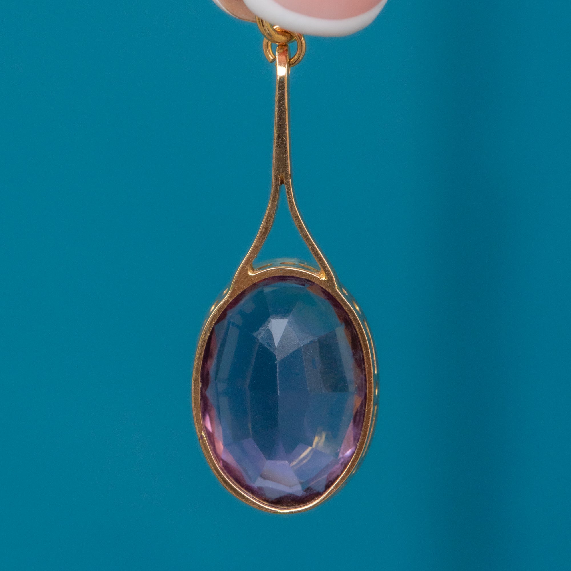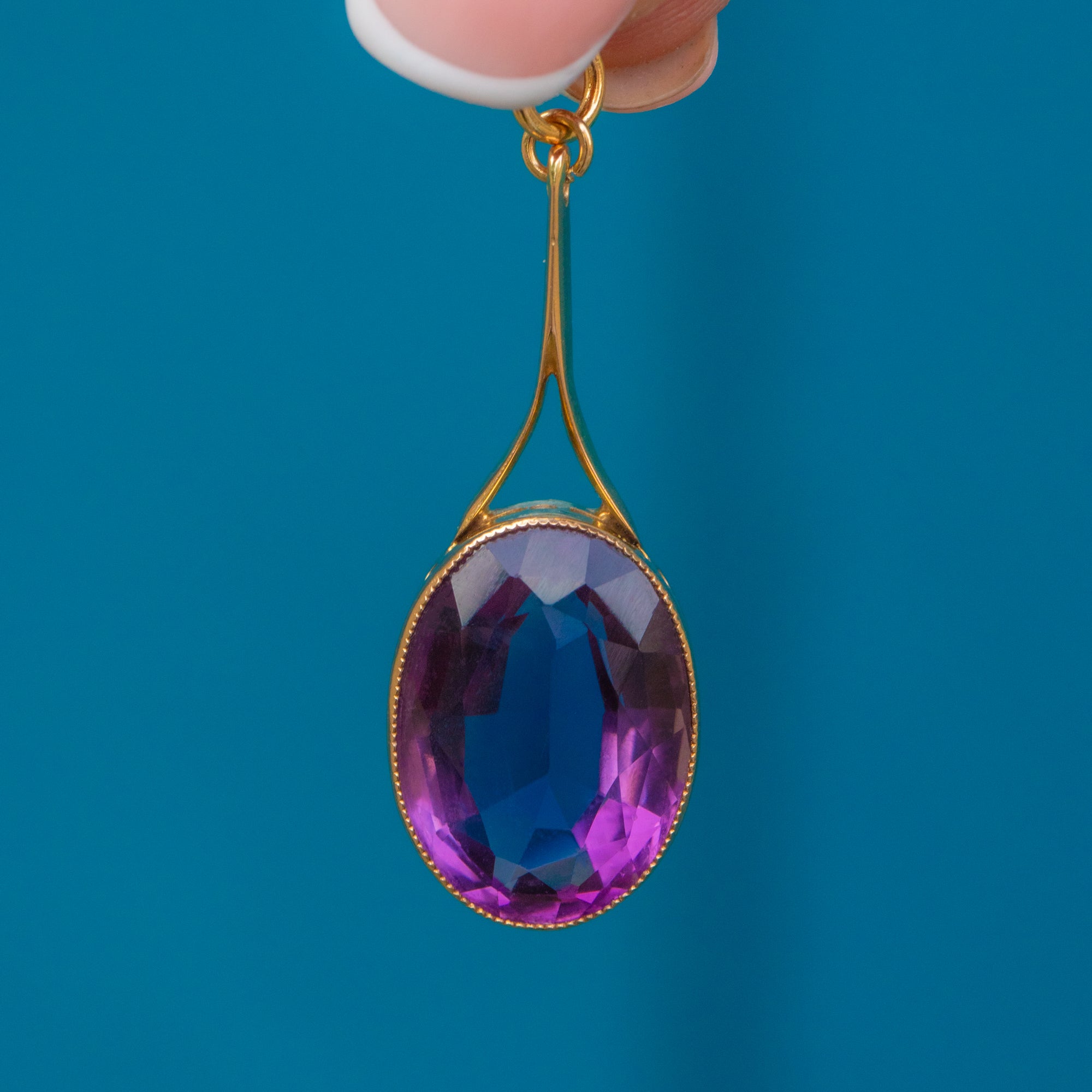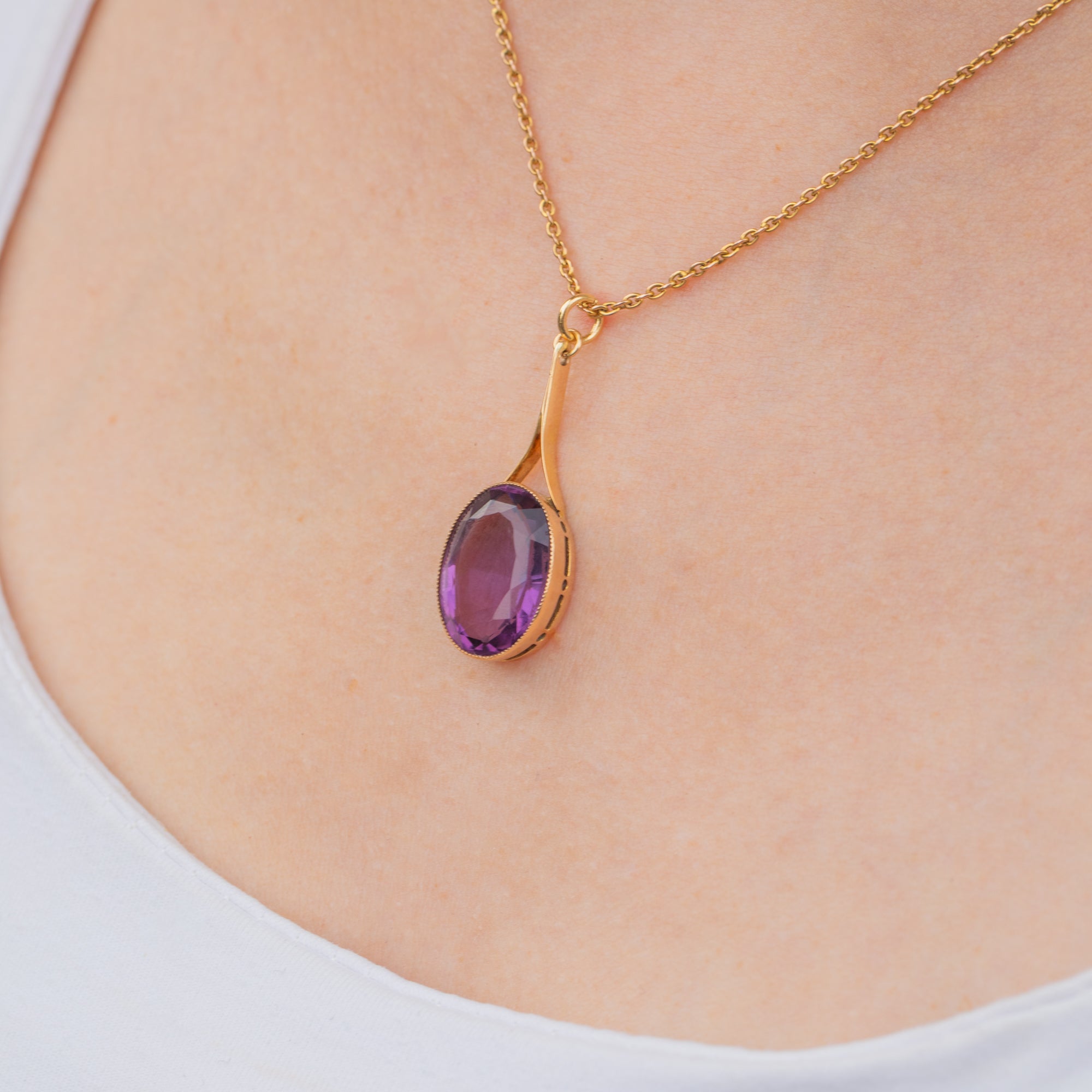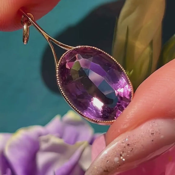 Antique 18ct Gold Amethyst Oval Drop Pendant, 6.35ct