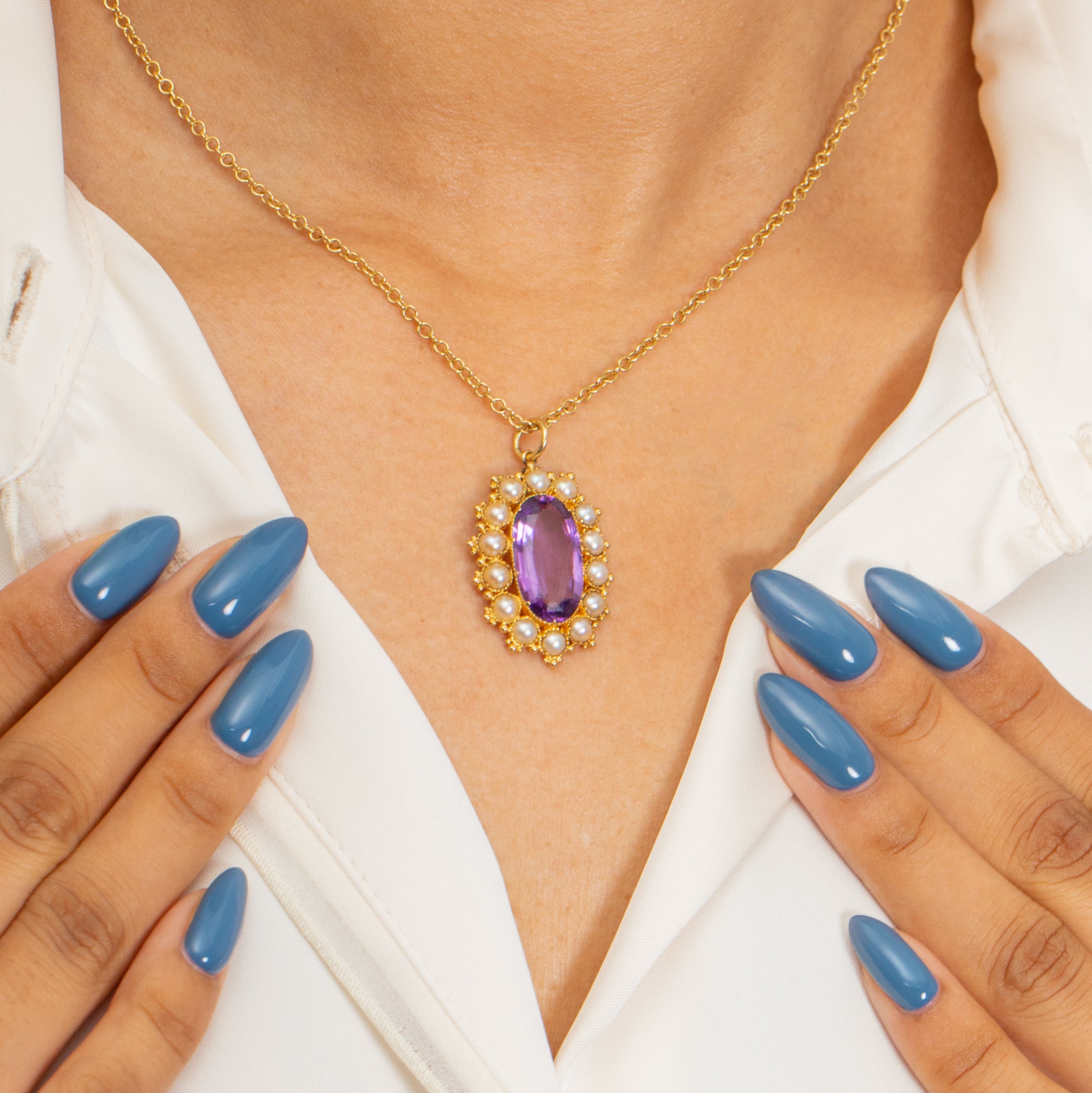 This beautiful antique 18ct Gold Amethyst Pearl pendant features one of our favourite Victorian jewellery pairings, making this Amethyst and Pearl pendant an easy 'yes'!